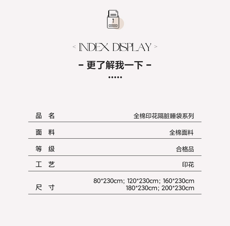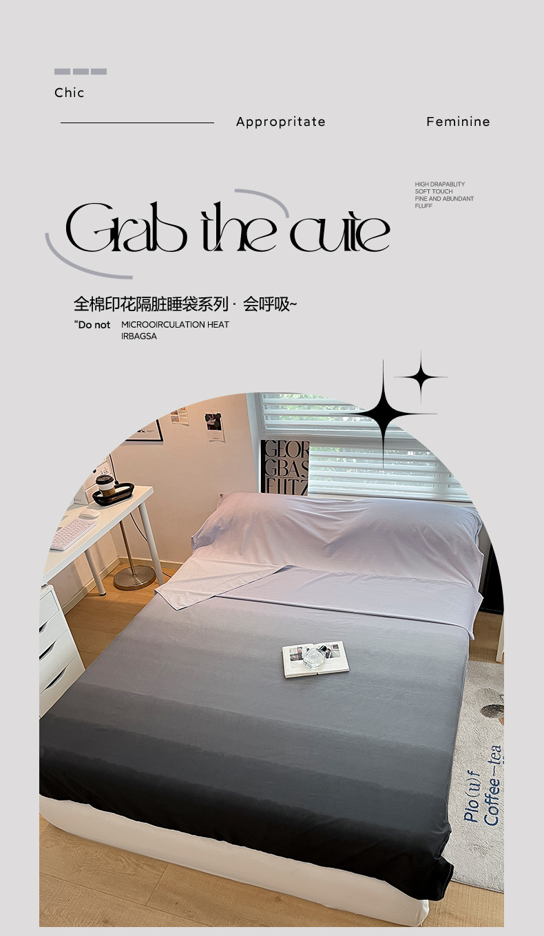 商品名称:雅居纺 2023新款全棉印花隔脏睡袋 冰岛