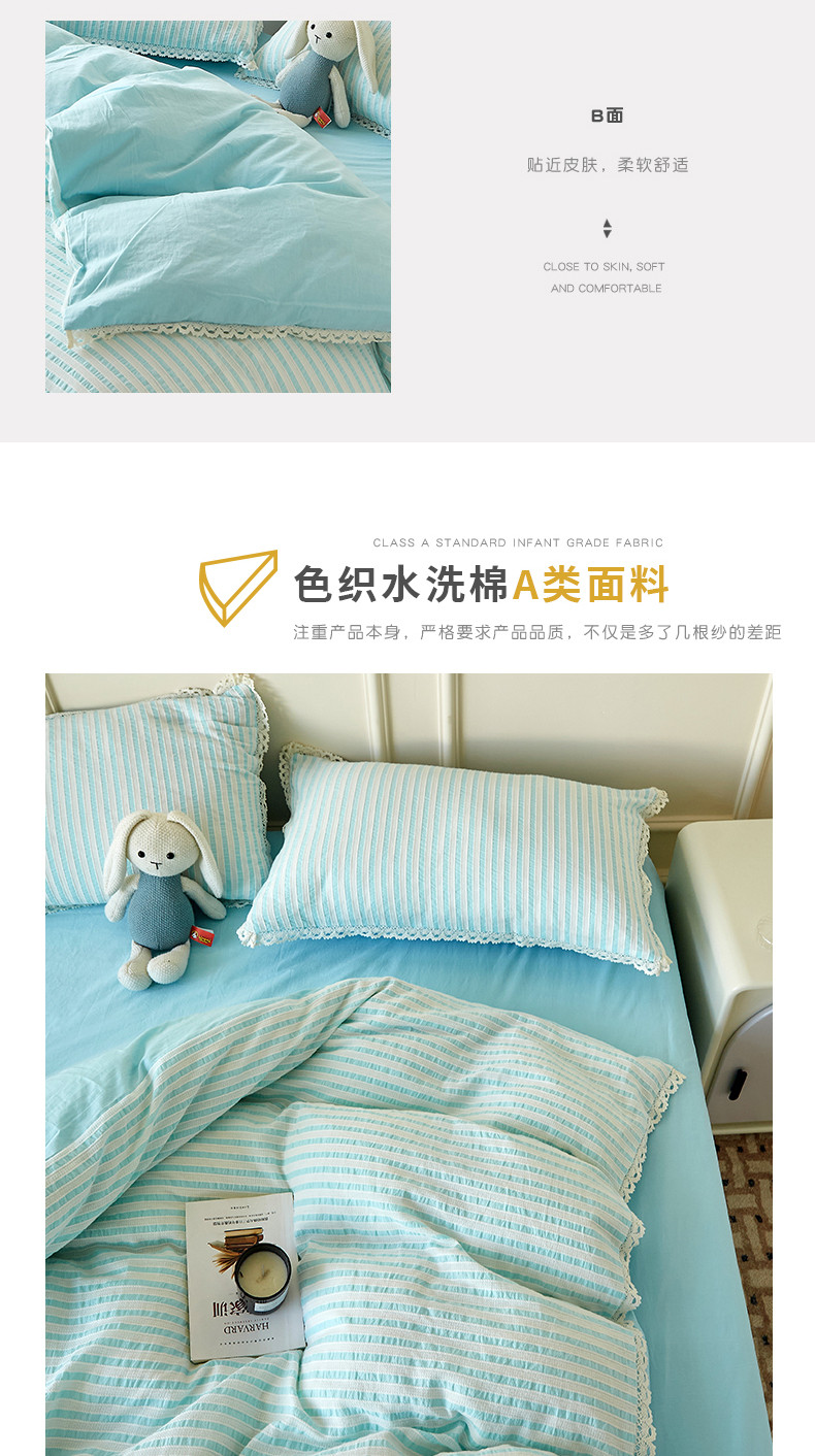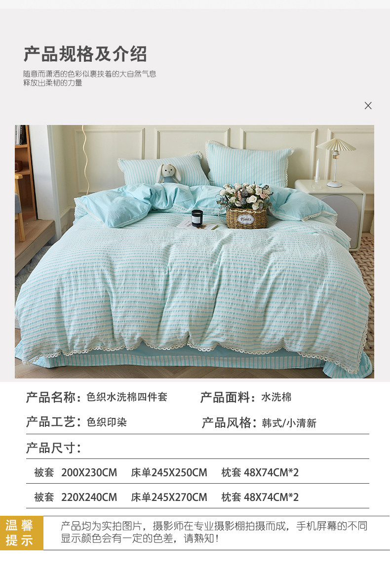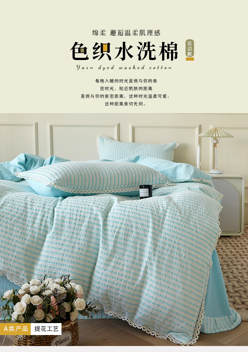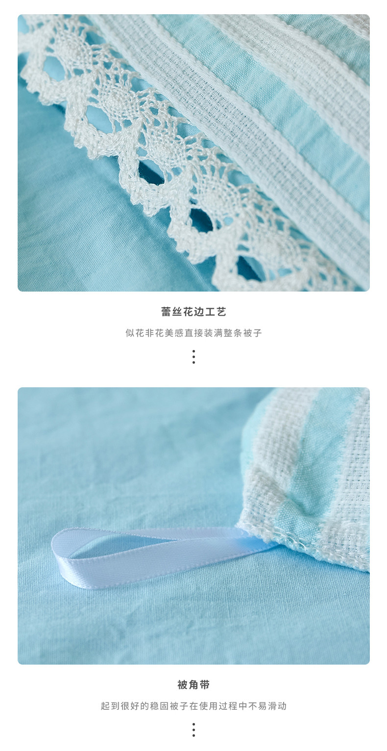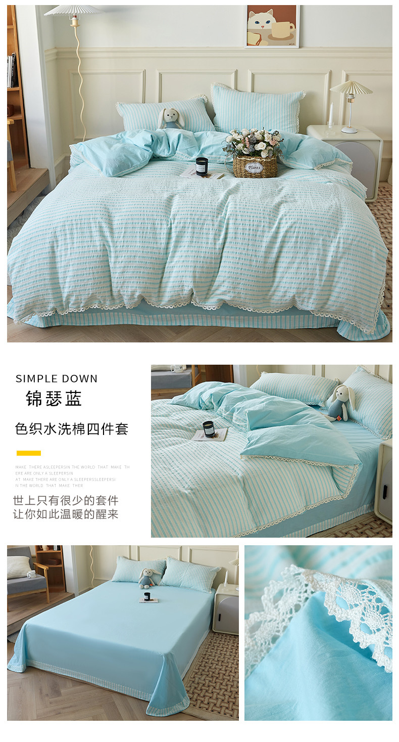 商品名称:安莱 2023新款韩式小清新色织水洗棉提花花边四件套 锦瑟 蓝