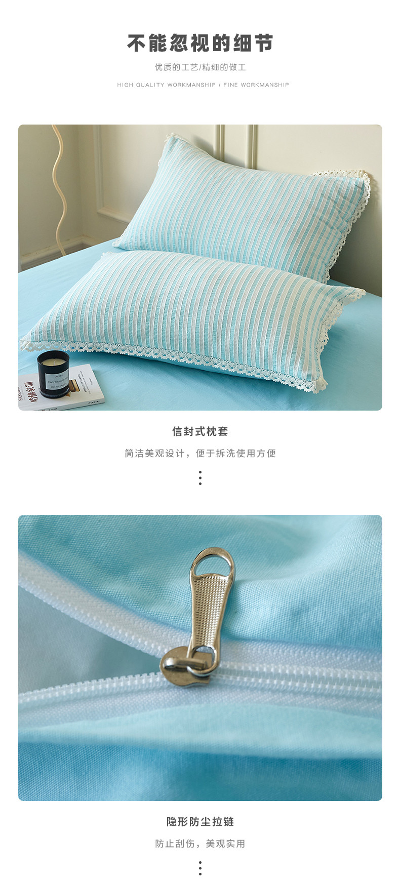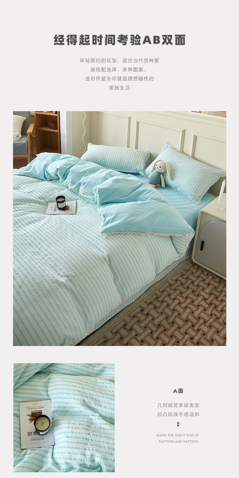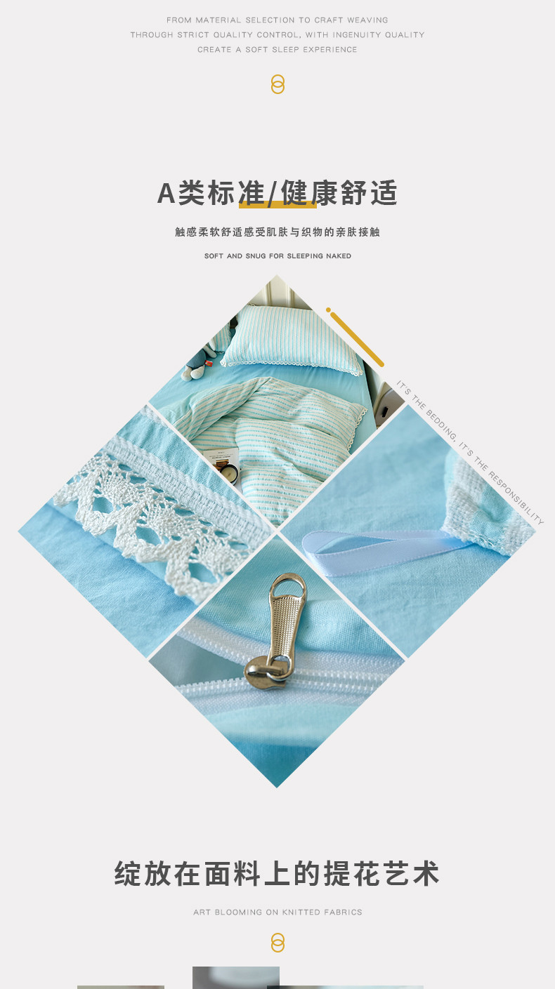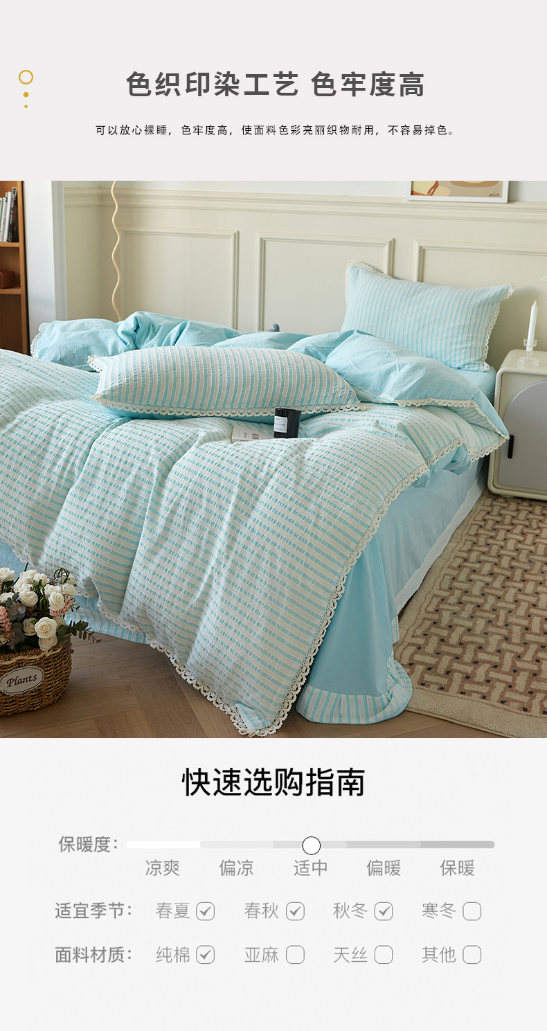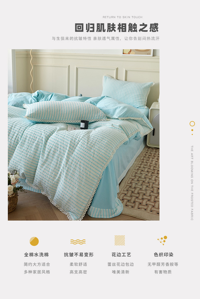 商品名称:安莱 2023新款韩式小清新色织水洗棉提花花边四件套 锦瑟 蓝