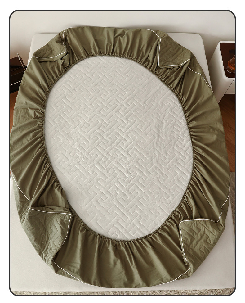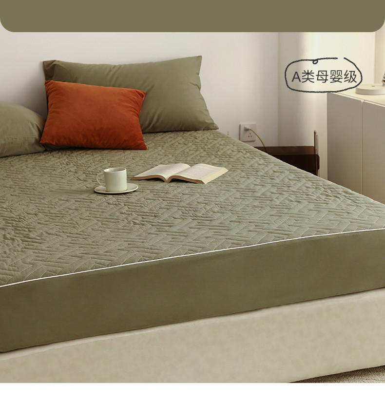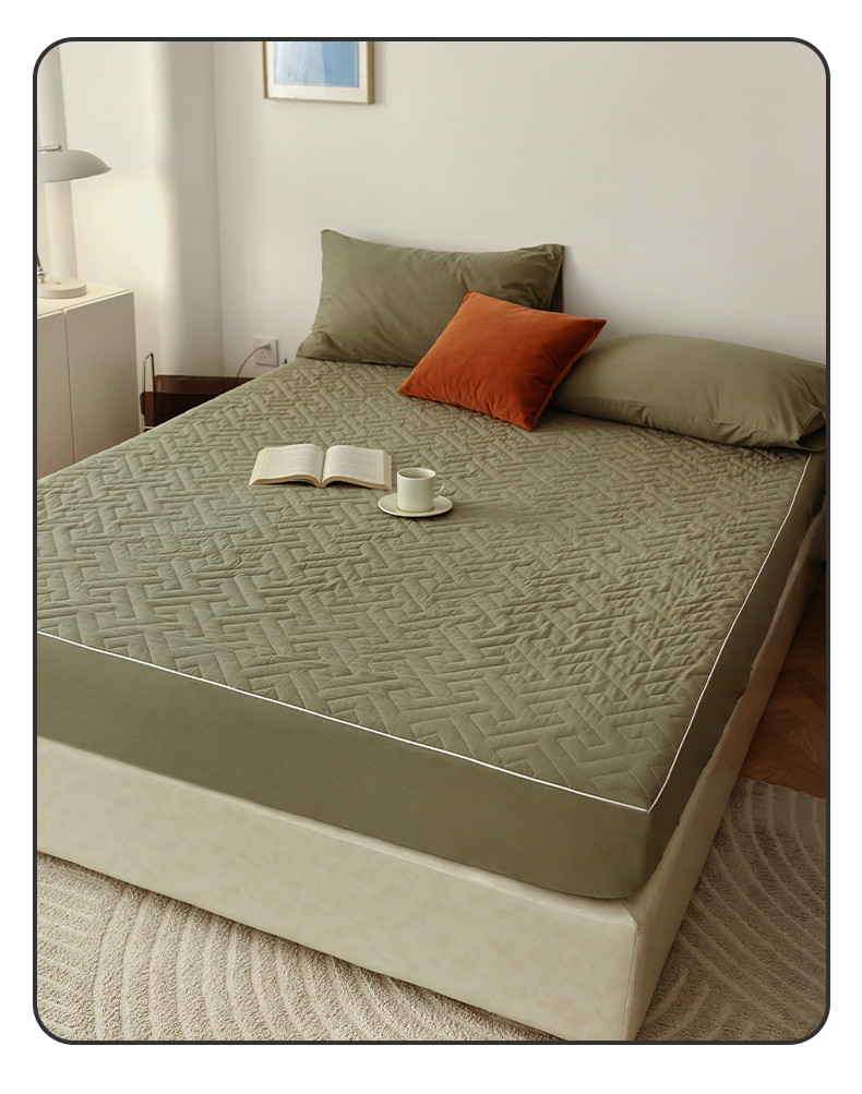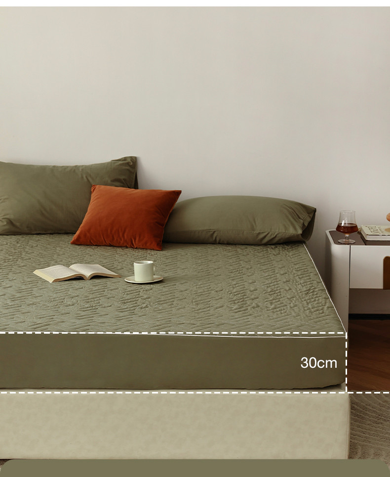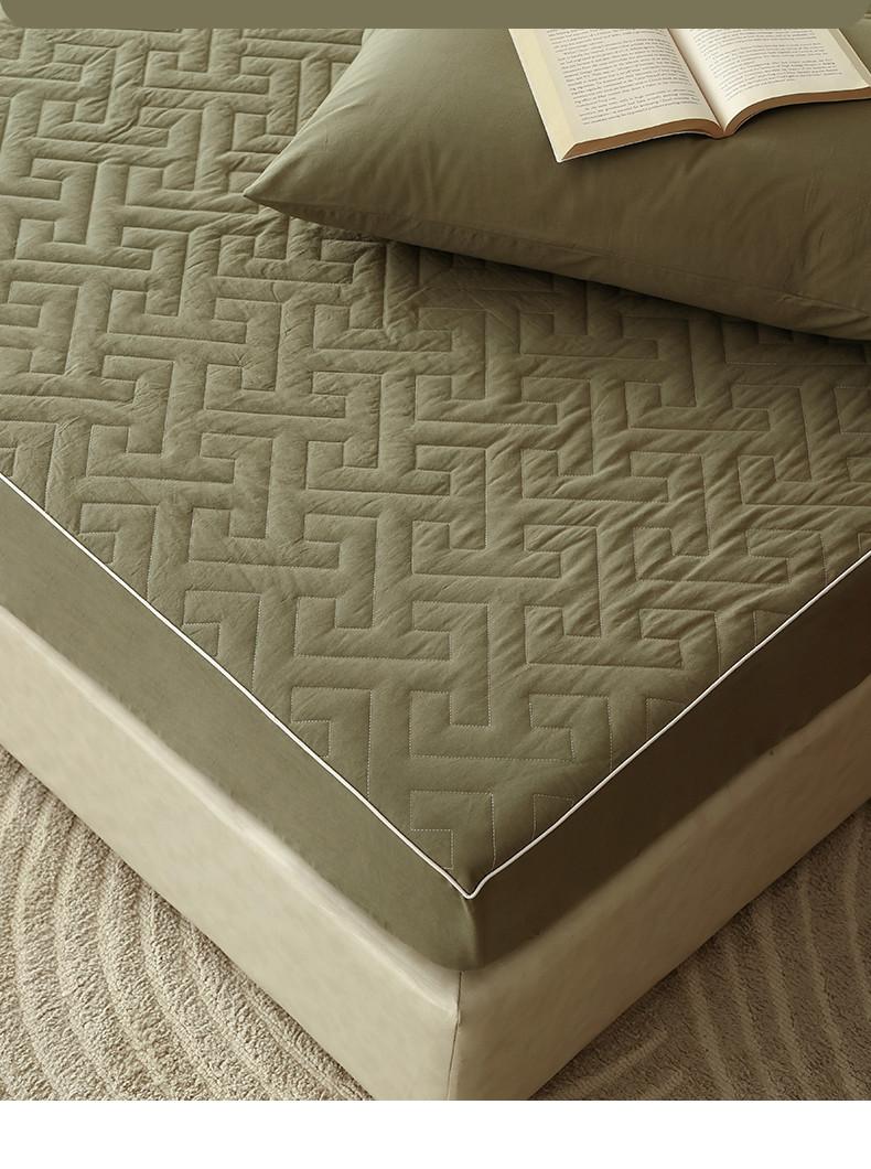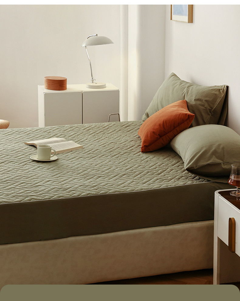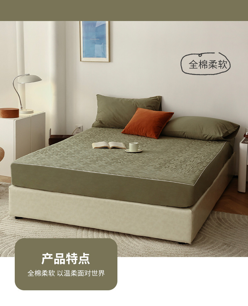 万盛家纺 2023新款全棉40支水洗棉防水夹棉床笠 抹茶绿