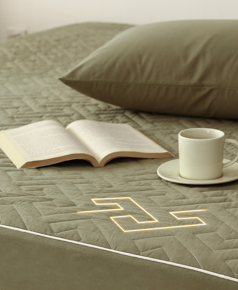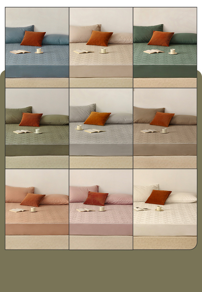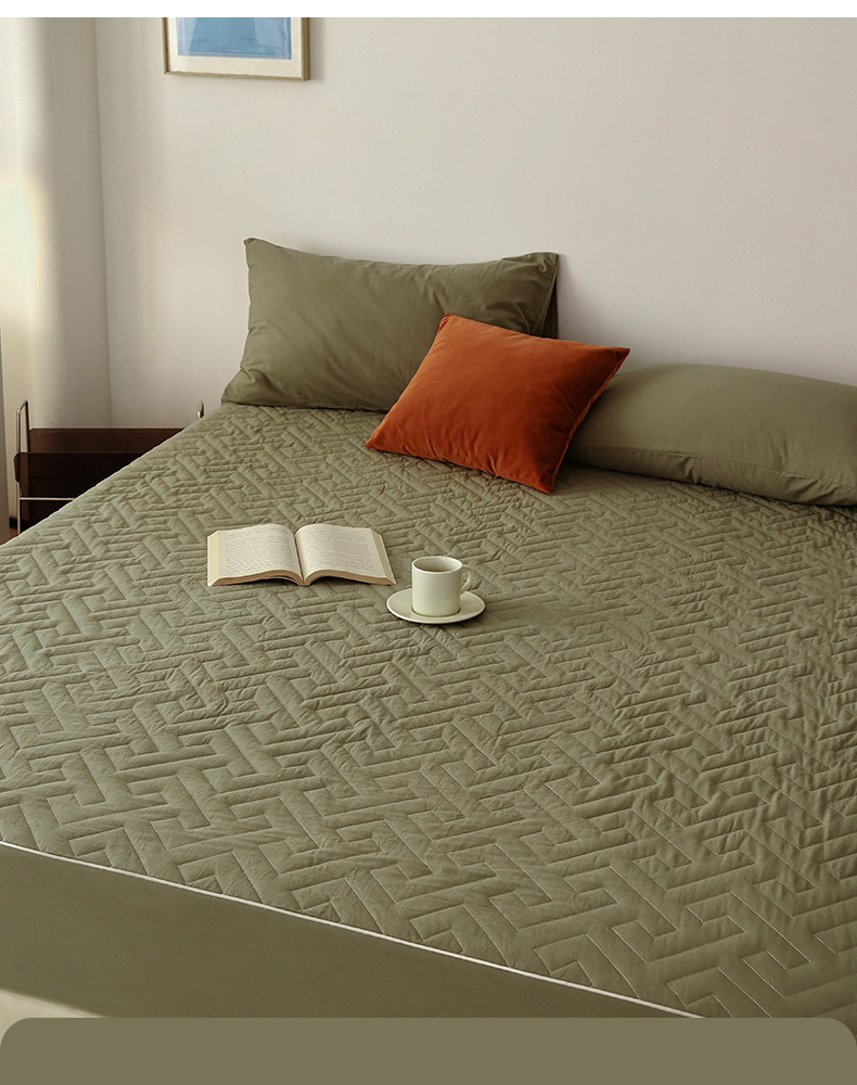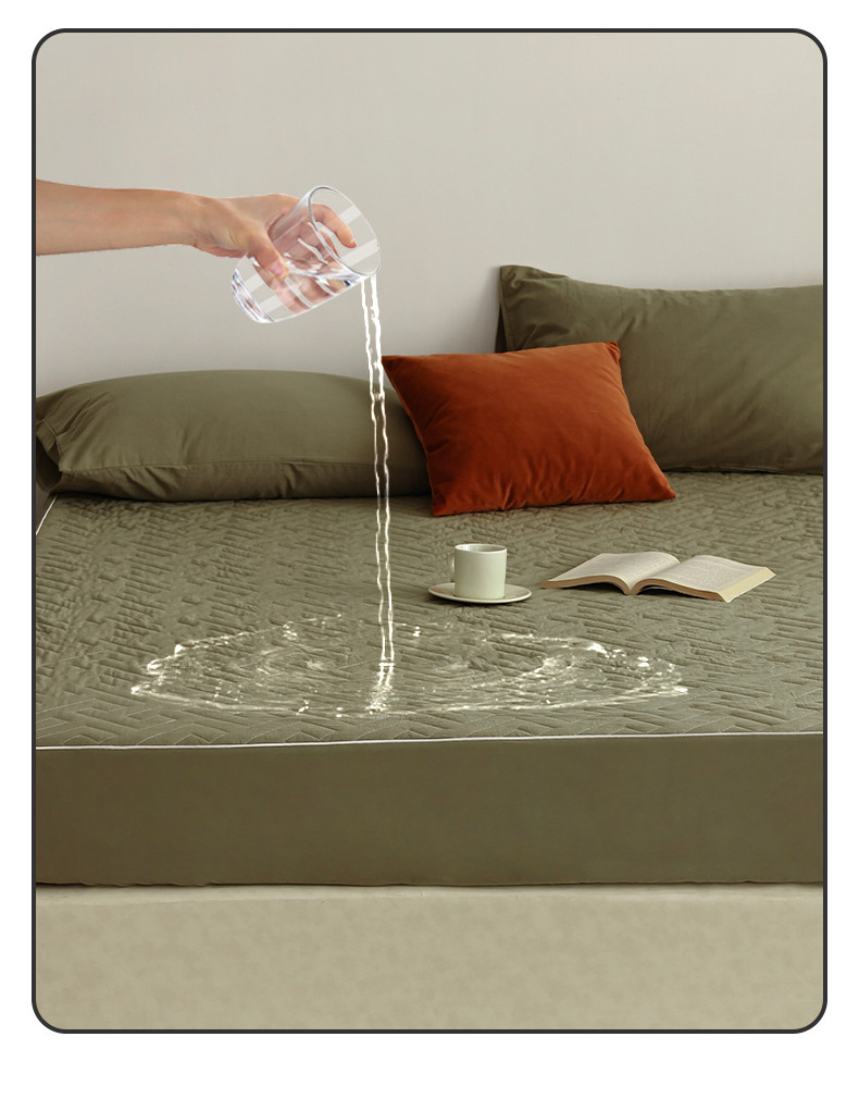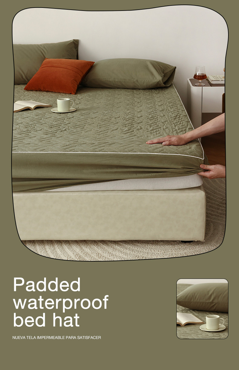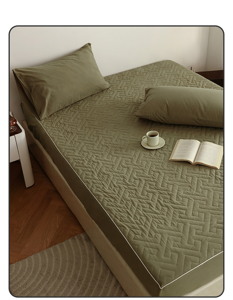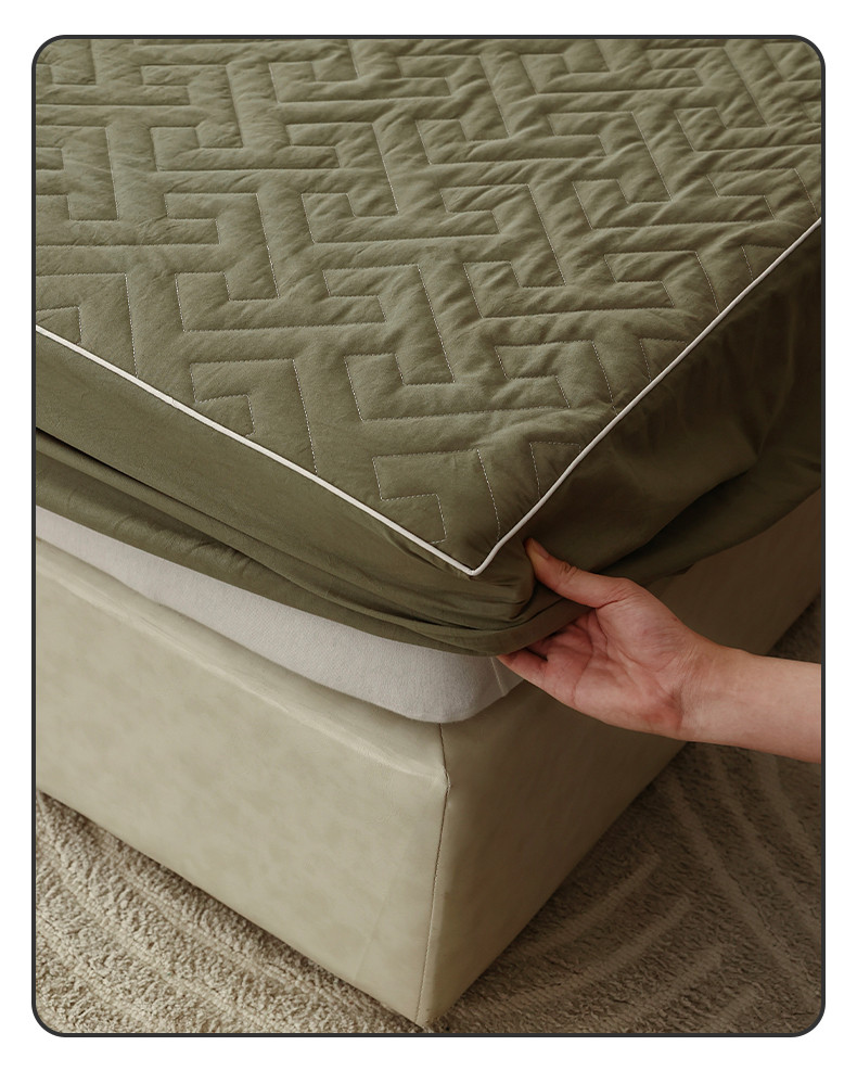 万盛家纺 2023新款全棉40支水洗棉防水夹棉床笠 抹茶绿