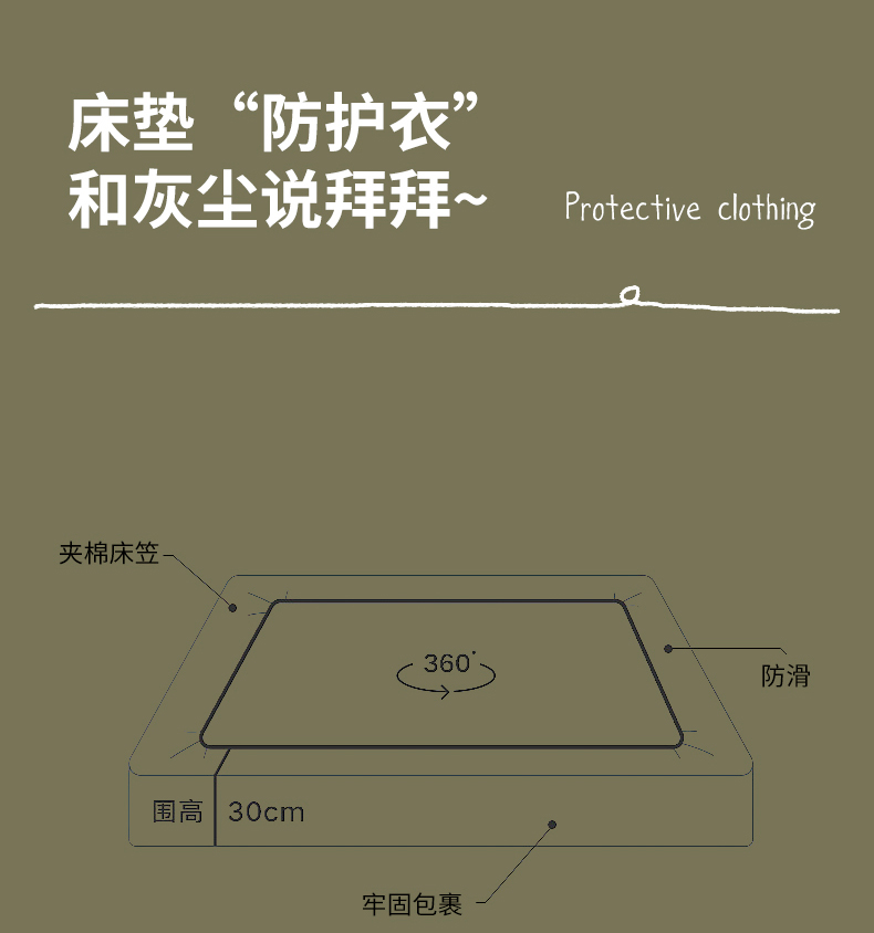 商品名称:万盛家纺 2023新款全棉40支水洗棉防水夹棉床笠 抹茶绿