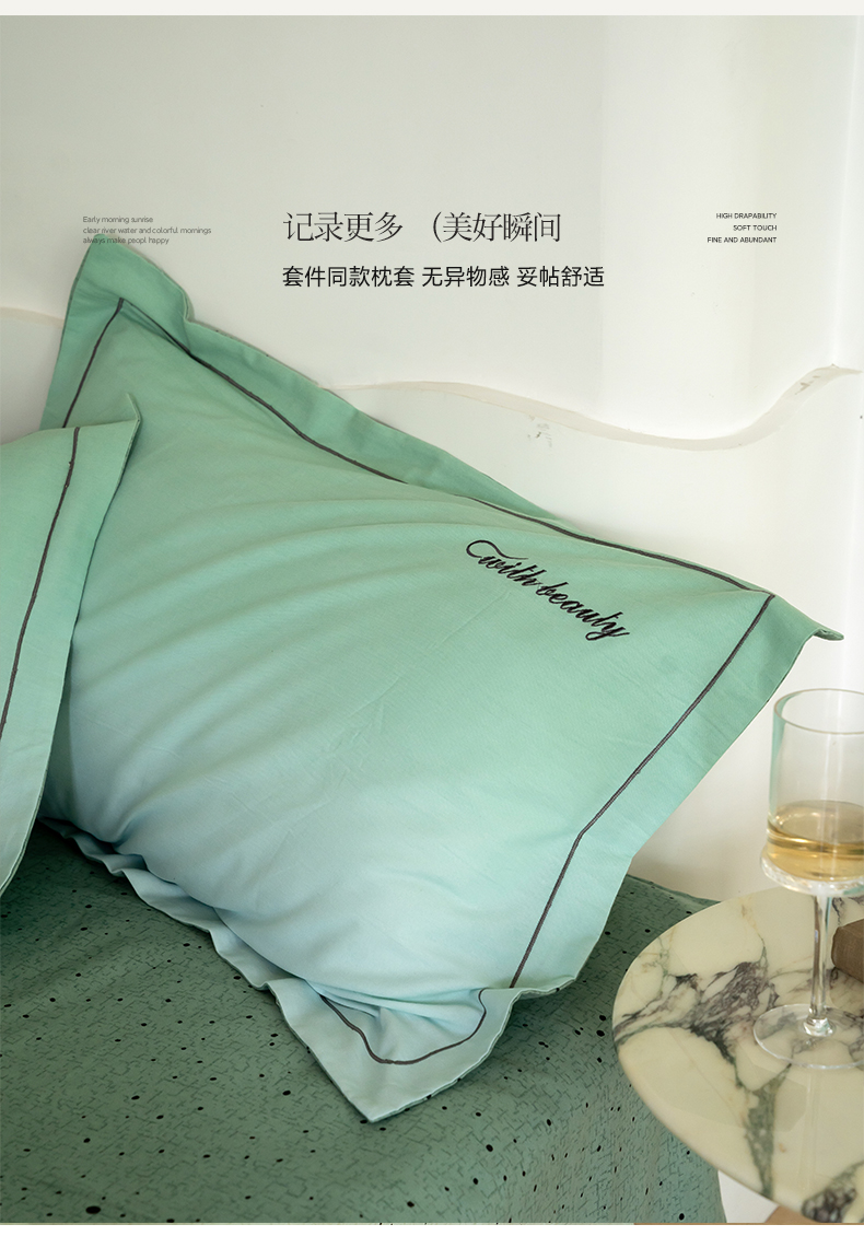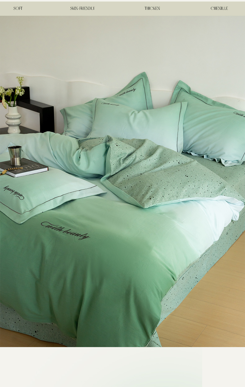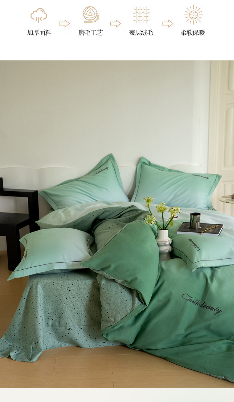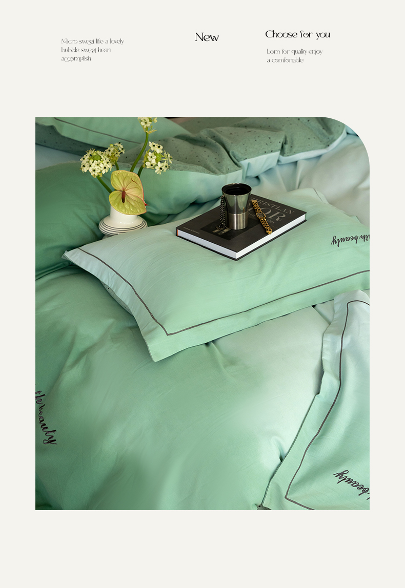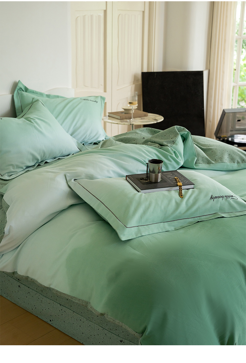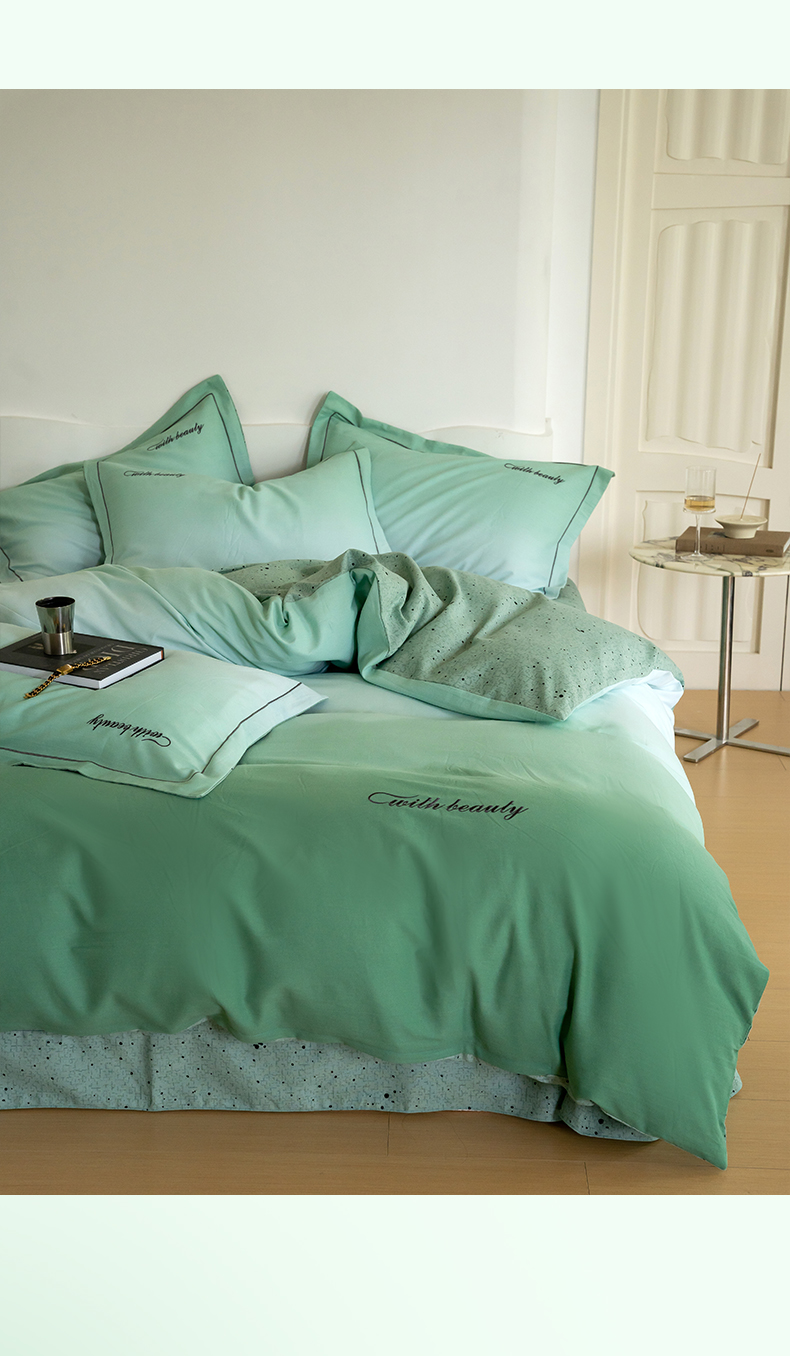 商品名称:帅露家纺 2023新款渐变磨毛绣花四件套--过江寒系列 过江寒-绿