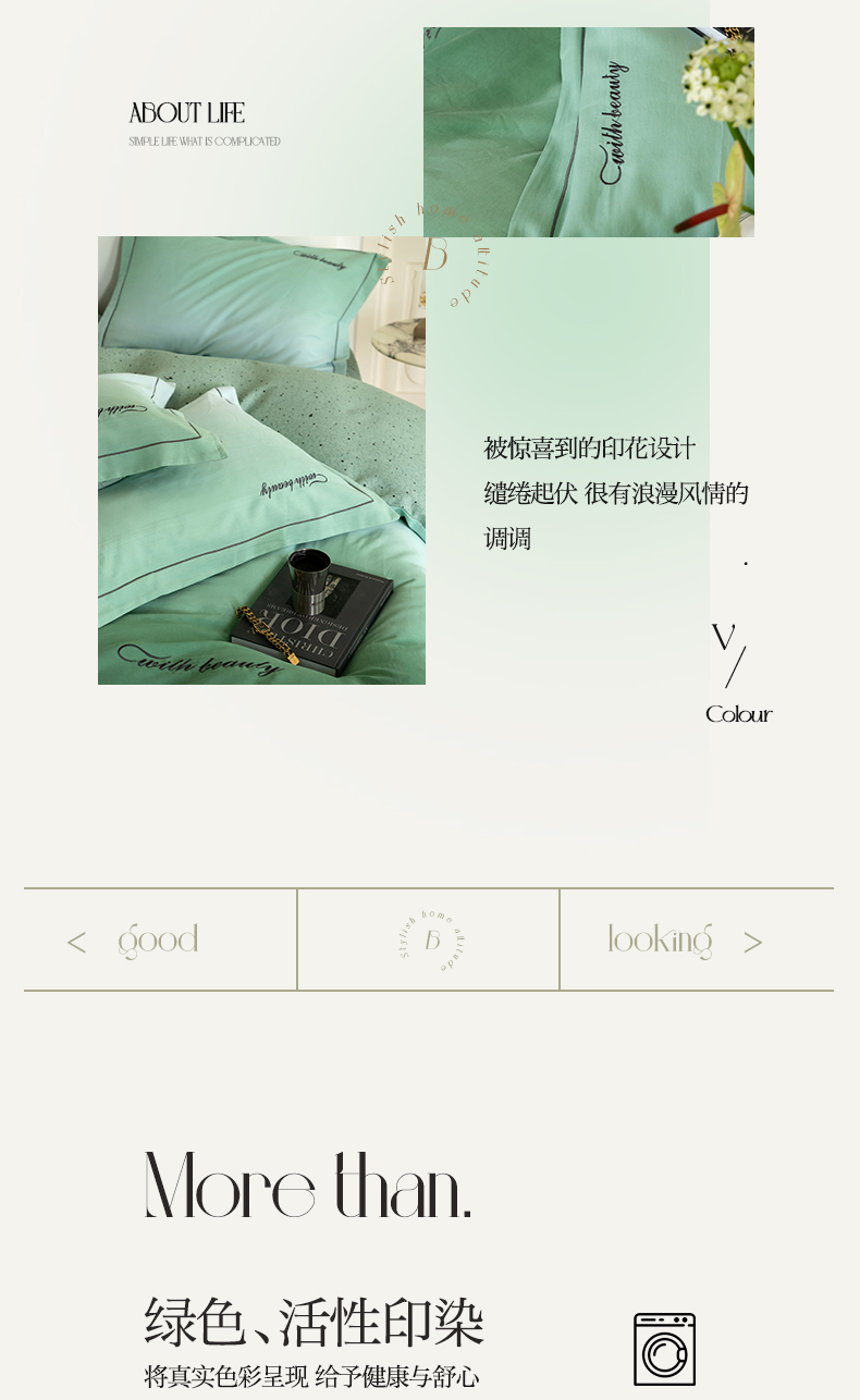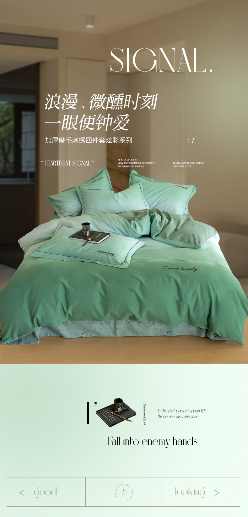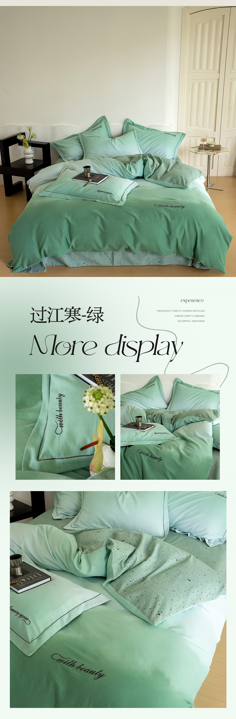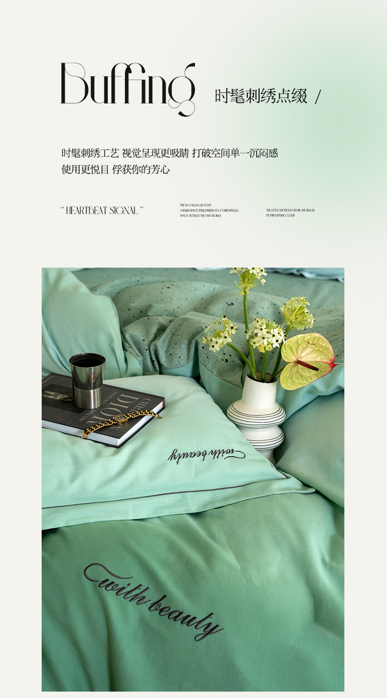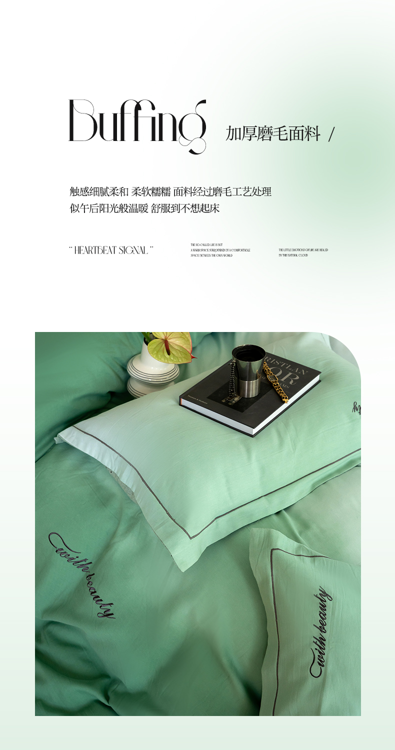 商品名称:帅露家纺 2023新款渐变磨毛绣花四件套--过江寒系列 过江寒-绿