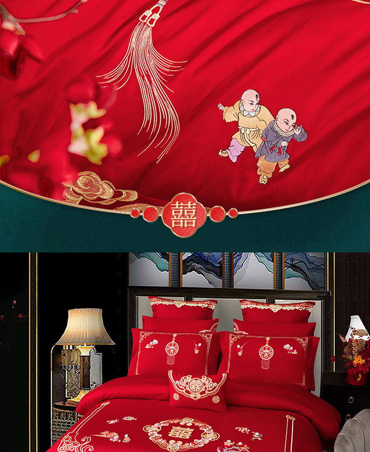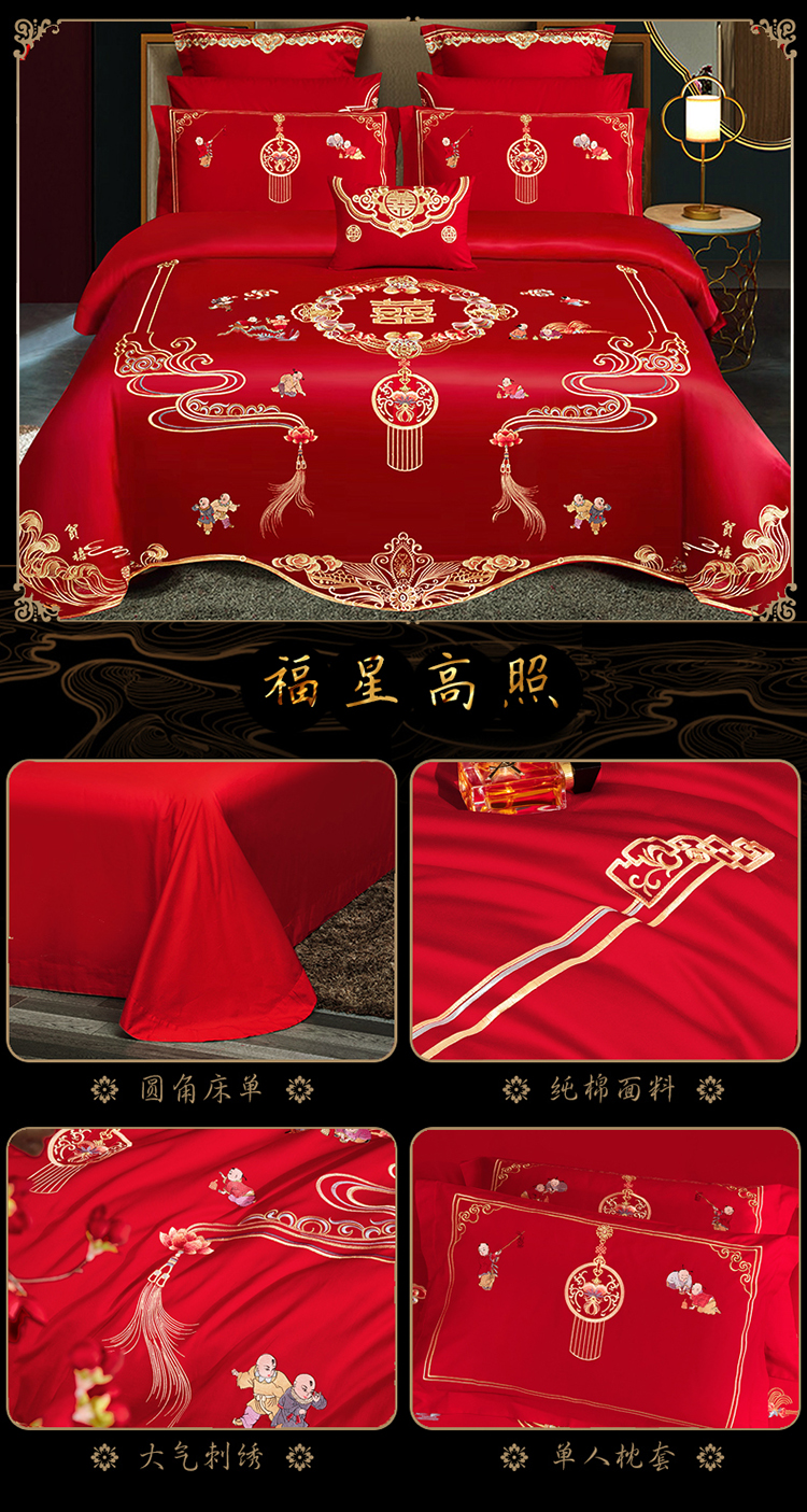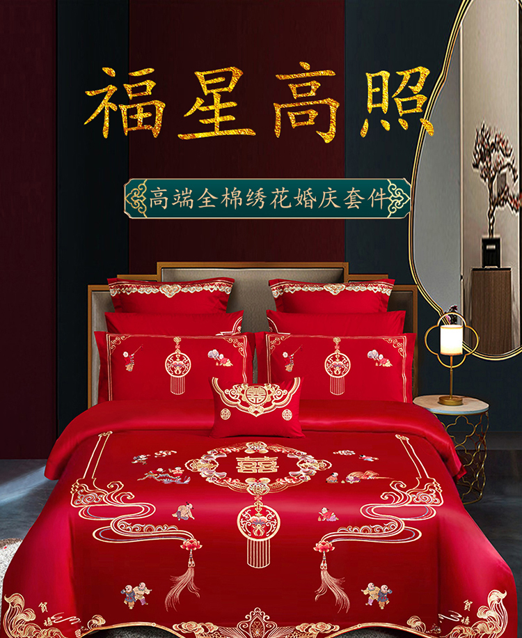 当前位置: 91家纺网 > 商品网购 > 床品套件 > 多件套 > 多件套 > 蒂爵 全棉纯棉原版重绣超大花绣花婚庆四件套多件套 福星高照
