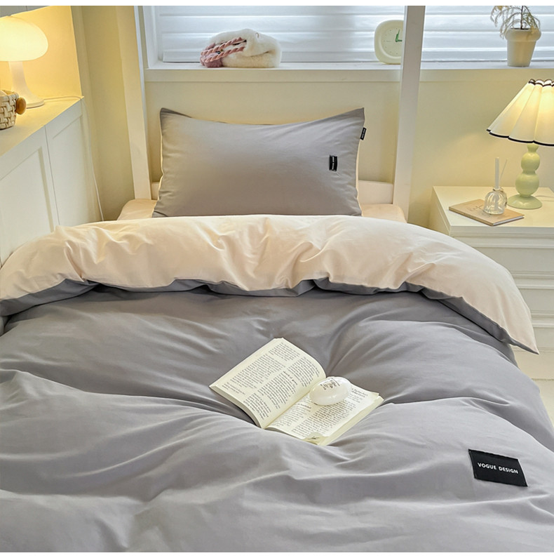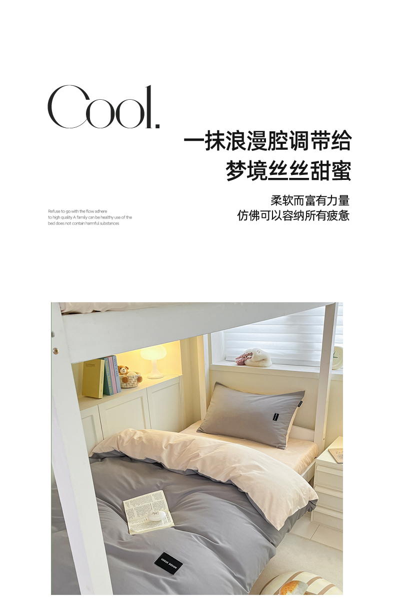 佰亿莱 2024新款全棉无印风学生宿舍套件 摩卡灰+奶咖