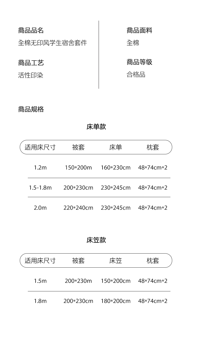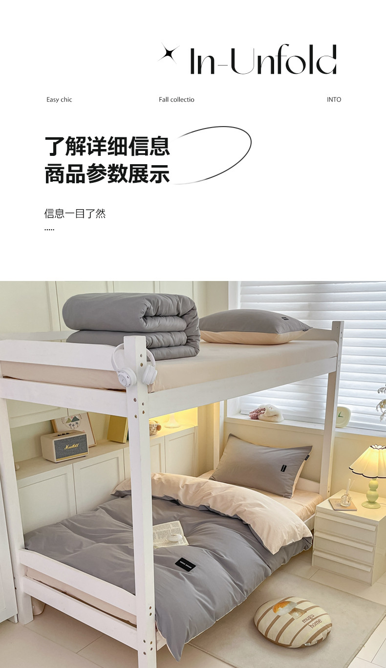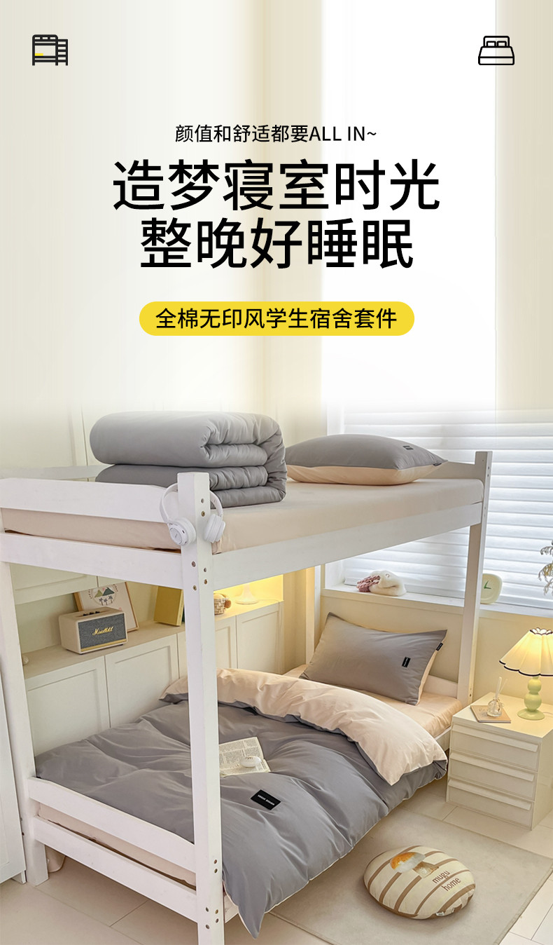商品名称:佰亿莱 2024新款全棉无印风学生宿舍套件 摩卡灰+奶咖