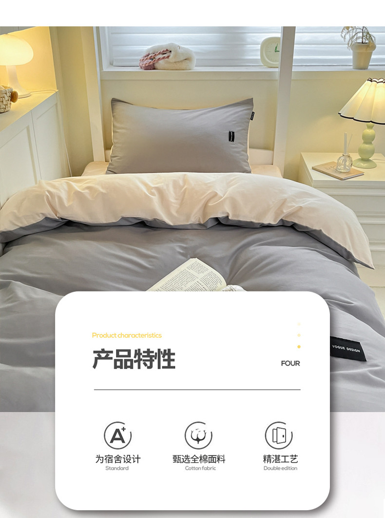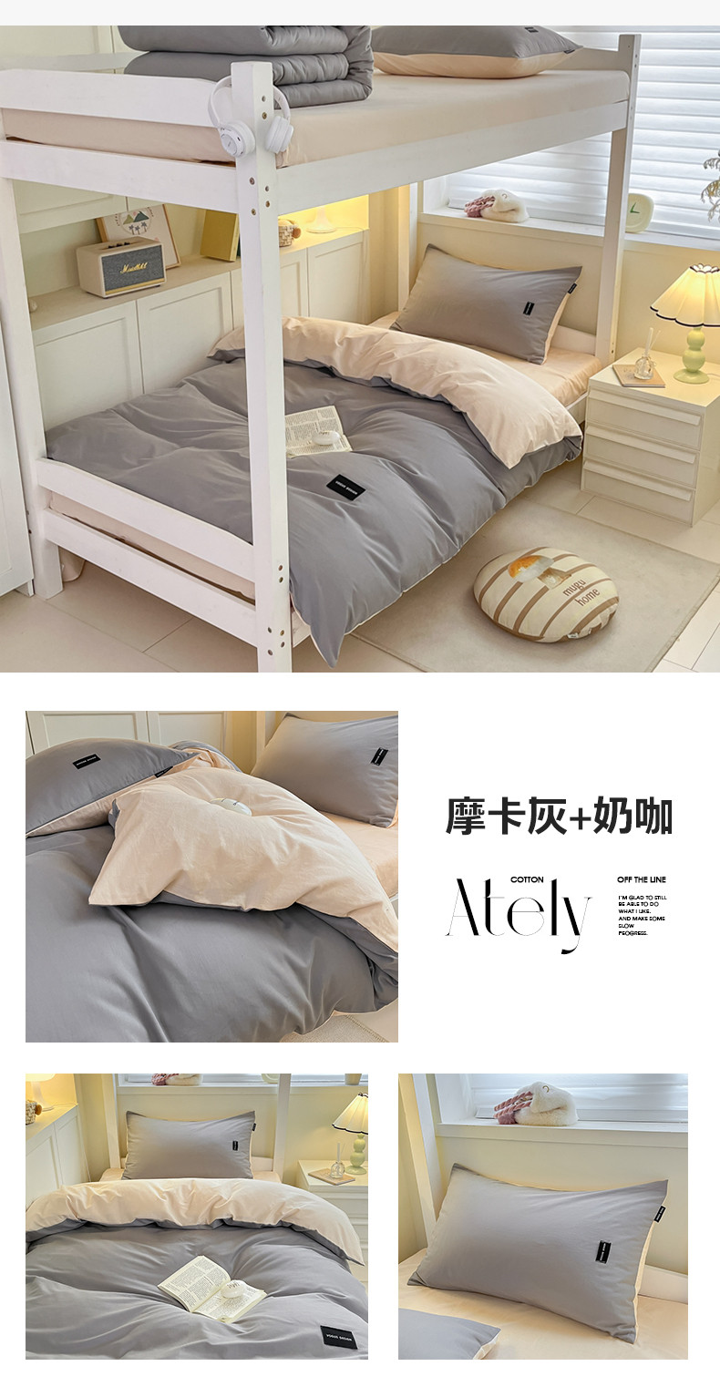 (总)佰亿莱 2024新款全棉无印风水洗棉学生宿舍三件套四件套 图片二,豆粉+仙女粉,格调蓝+摩卡灰,格调紫+仙女粉,卡其+咖啡,摩卡灰,摩卡灰+卡其,摩卡灰+奶咖,奶白+卡其,青草绿+奶黄,天空蓝+卡其,香草绿+格调紫,芝士蓝+奶黄