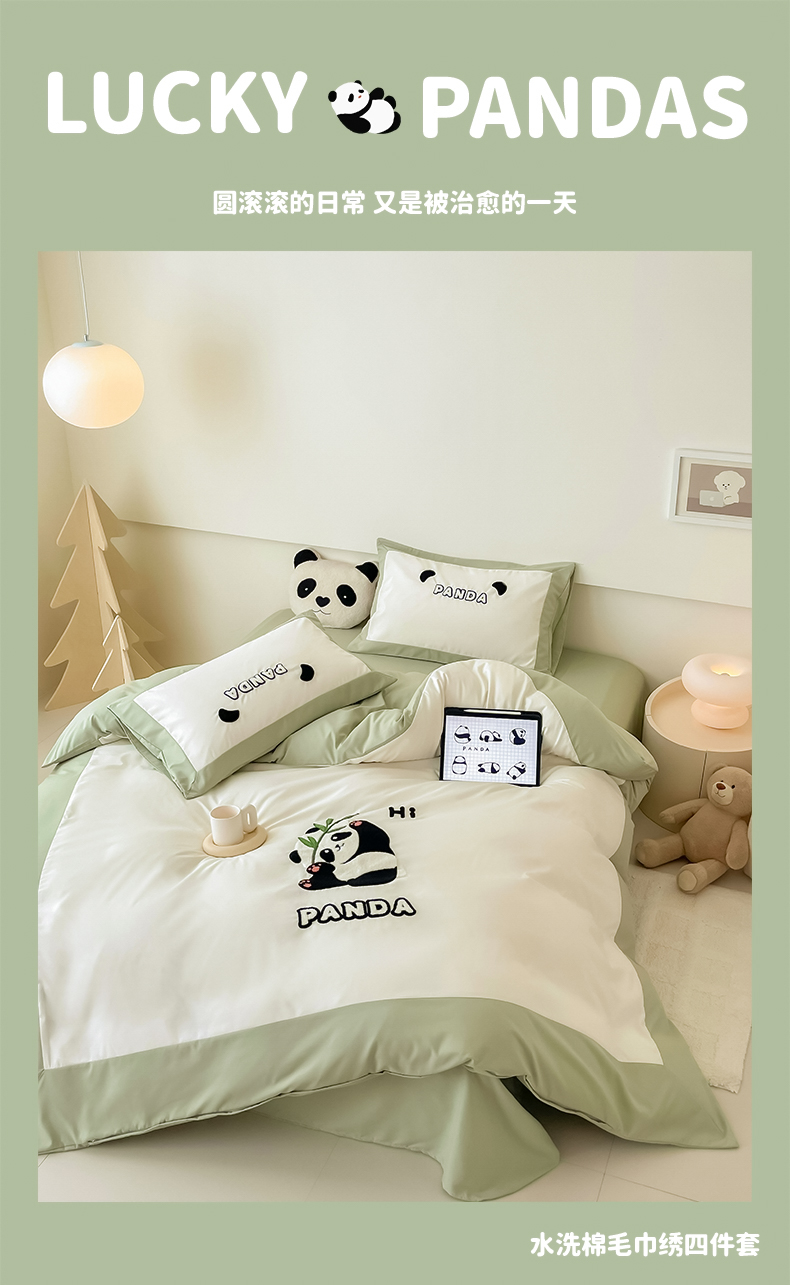 当前位置: 91家纺网 > 商品网购 > 床品套件 > 四件套 > 水洗棉四件套 > 我心家纺 2023新款水洗棉毛巾绣四件套-熊猫系列 嗨熊猫-白