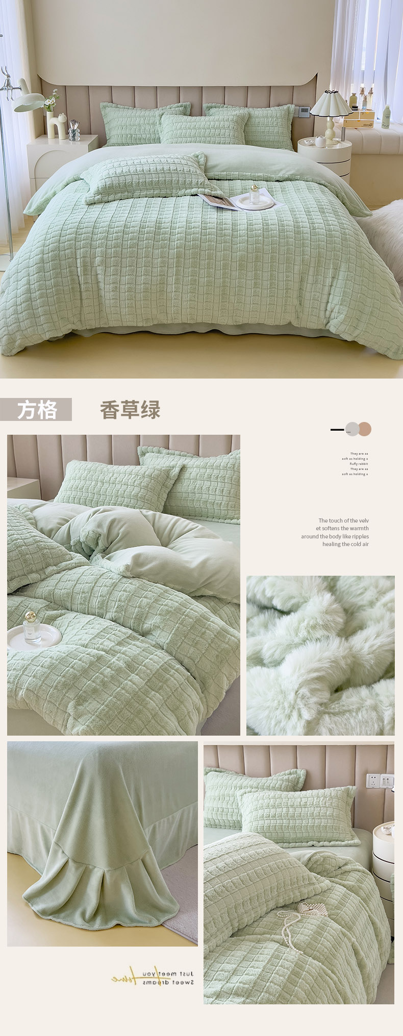 商品名称:人人爱 2025新款兔兔绒保暖四件套 方格-香草绿