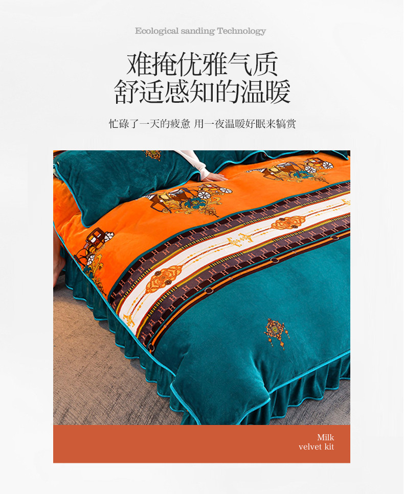绒宴 2025新款8.5斤牛奶绒金貂法莱绒床裙款保暖四件套 绮梦园,绮梦园