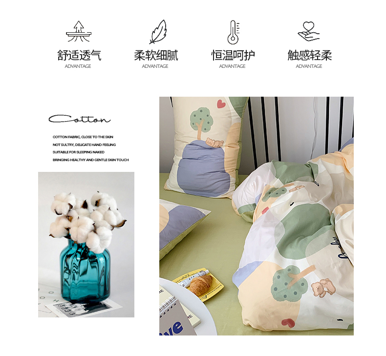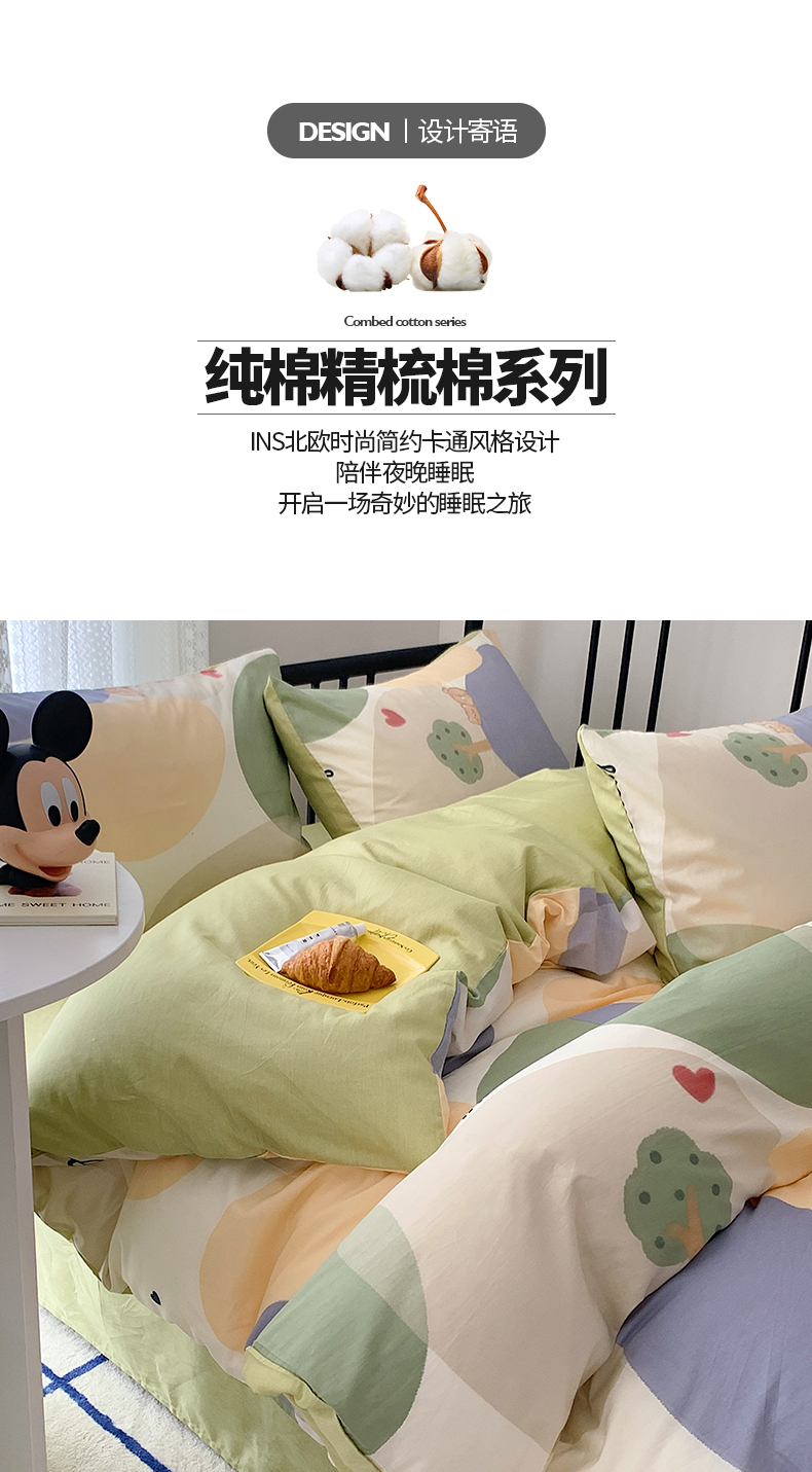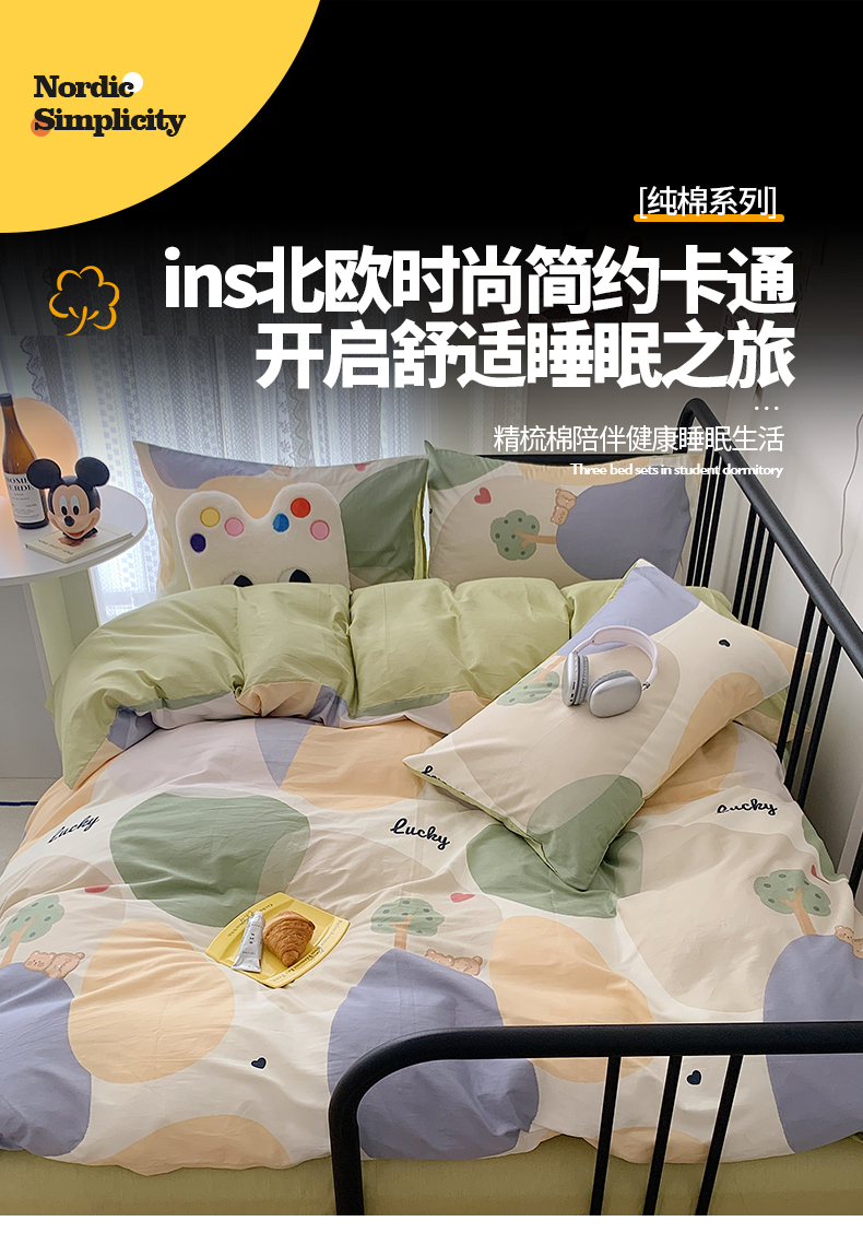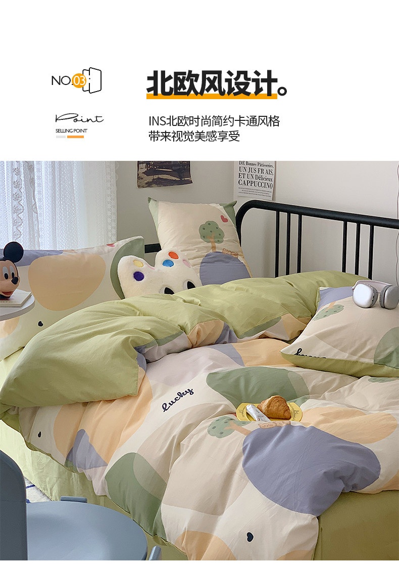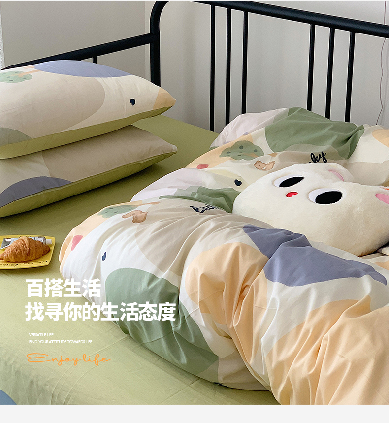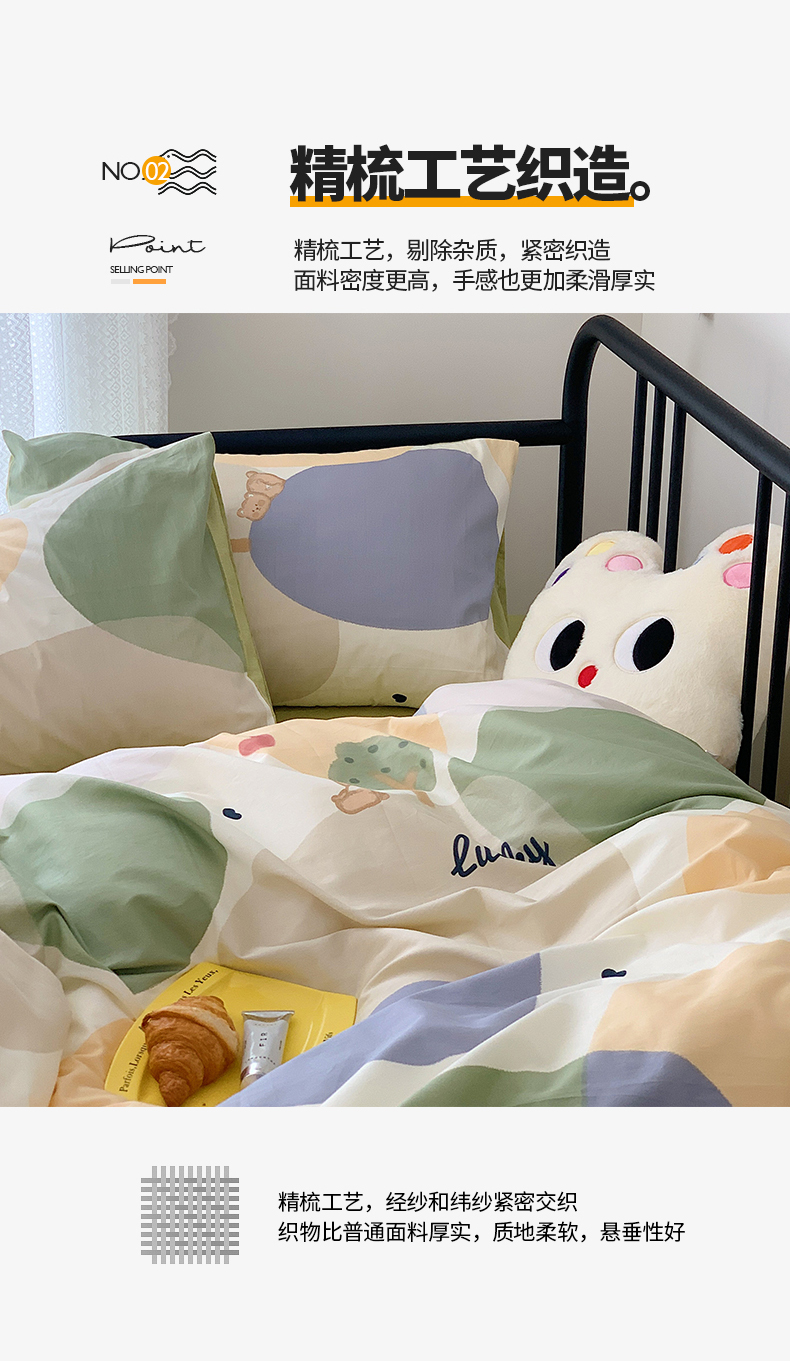桃子家居 2023新款ins北欧时尚简约卡通纯棉四件套系列 棉-田园熊