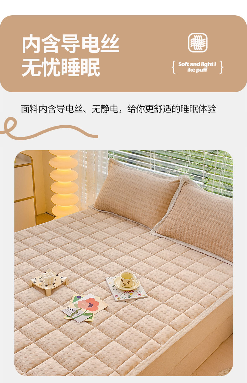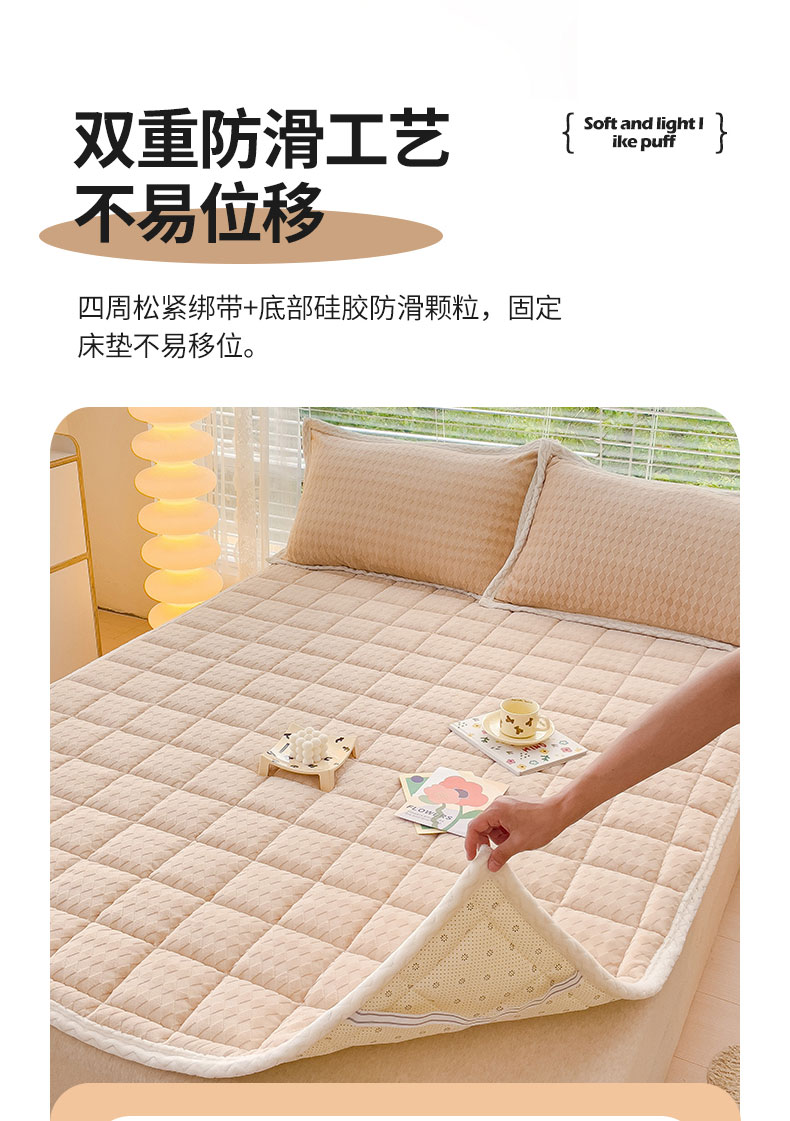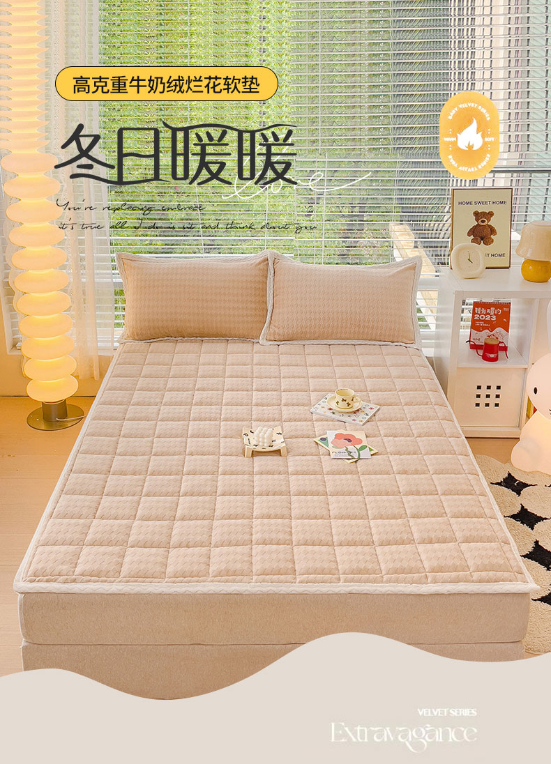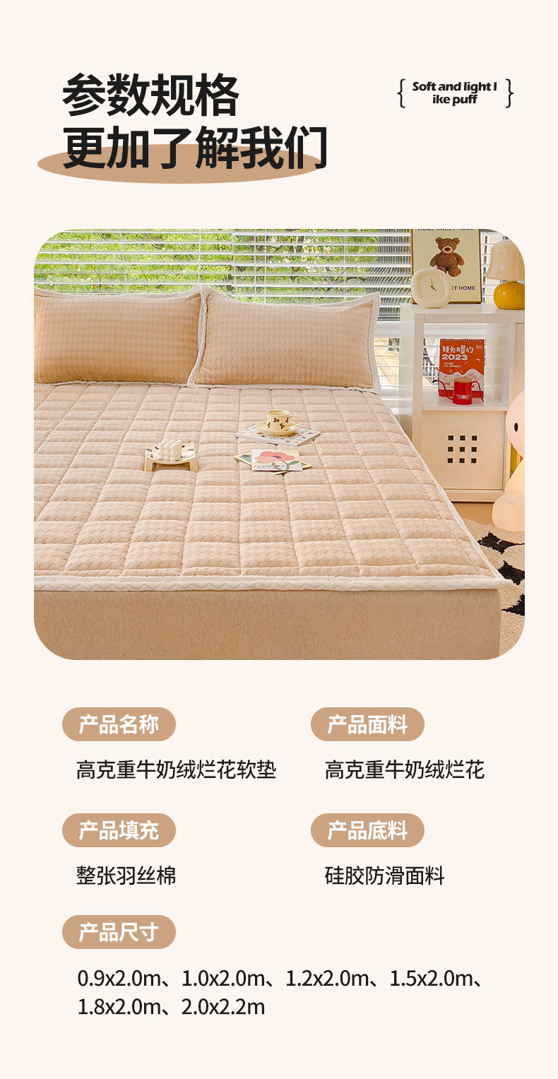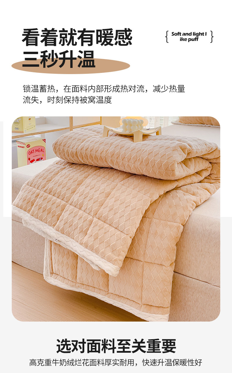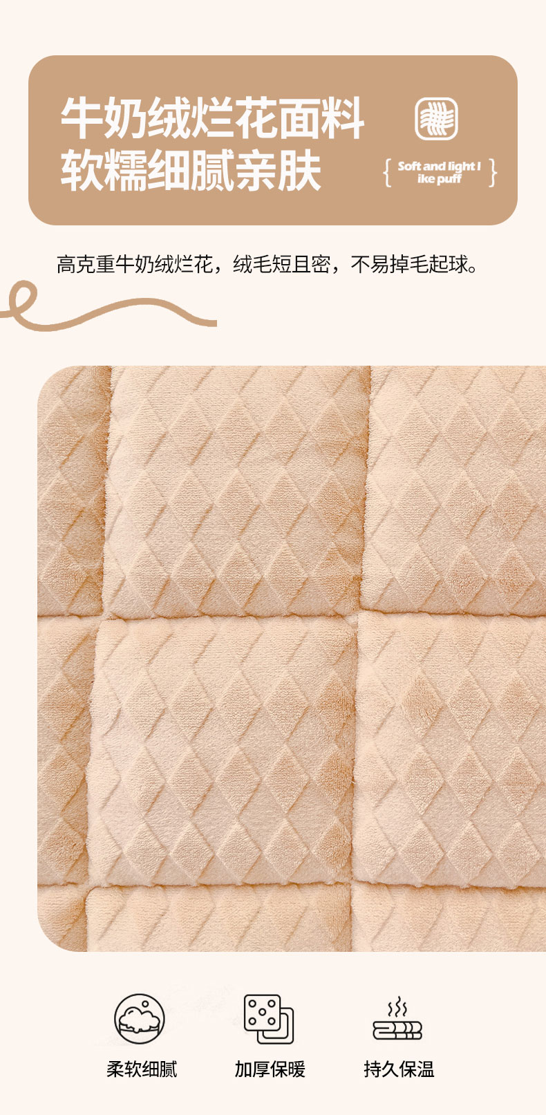 商品名称:米帛 2023新款牛奶绒烂花软垫 菱形浅卡其