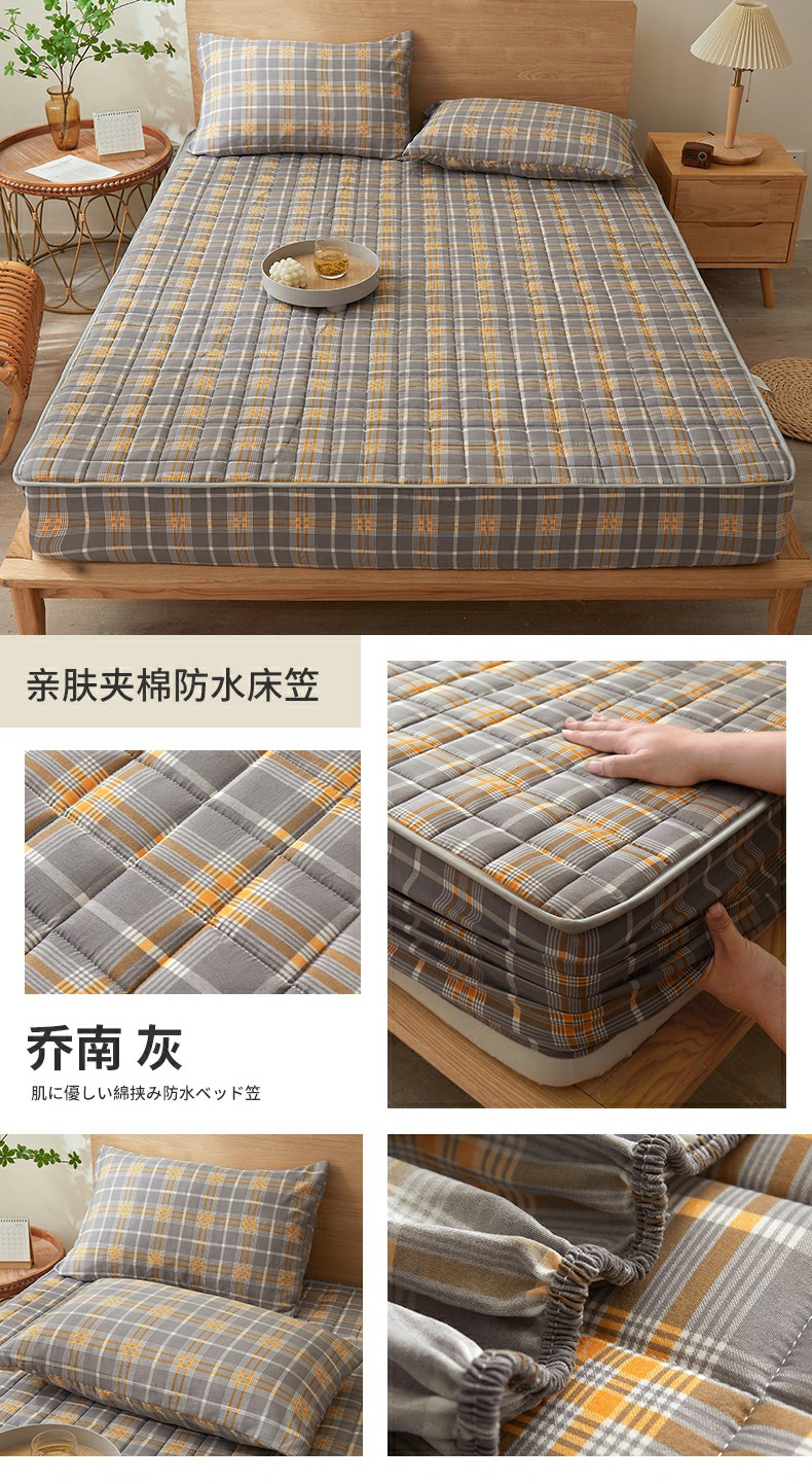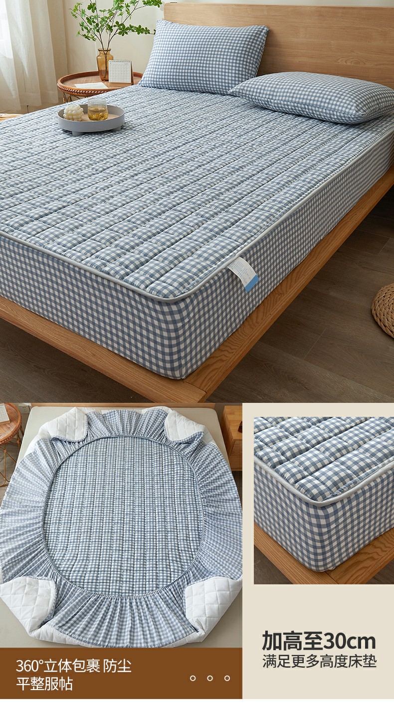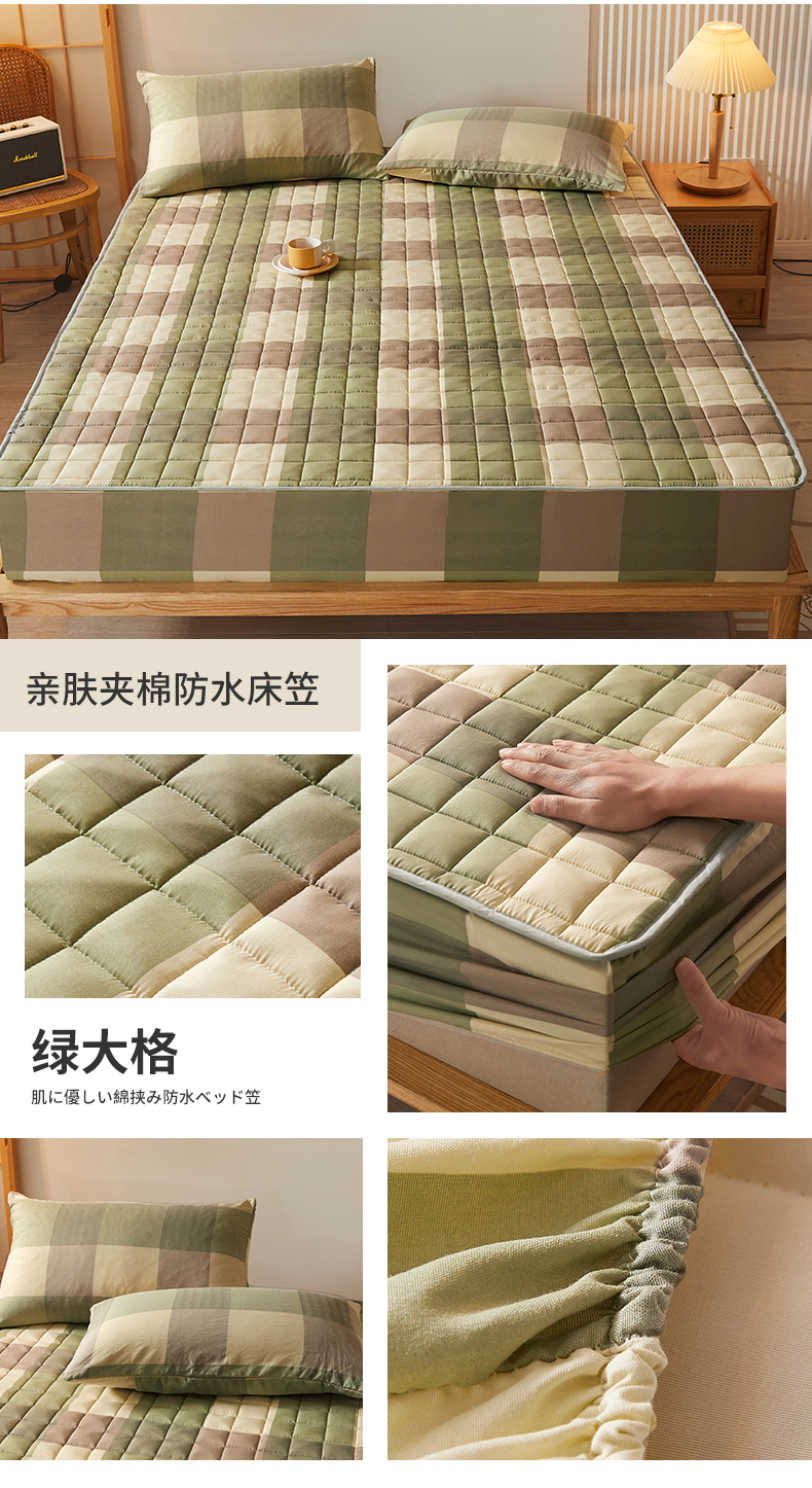 (总)胜权家纺 2024新款亲肤夹棉格子防水床笠