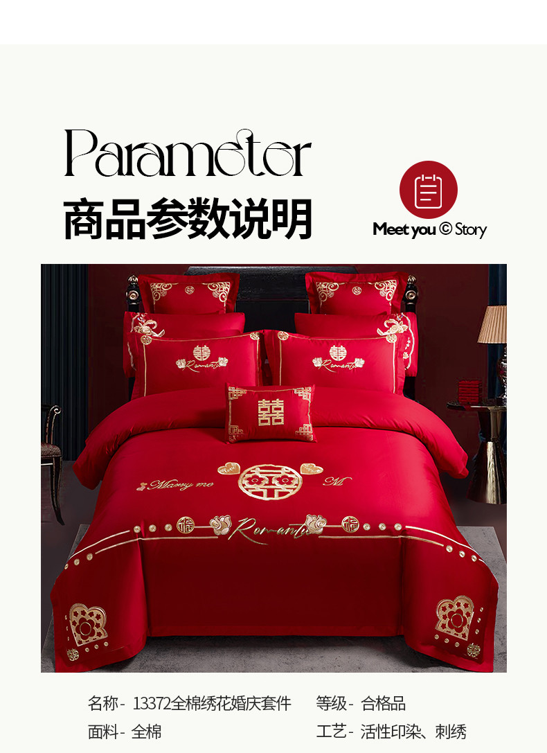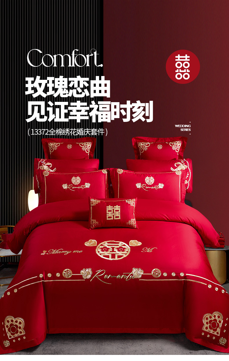 当前位置: 91家纺网 > 商品网购 > 床品套件 > 多件套 > 多件套 > 千禧 2023新款13372全棉跑量绣花婚庆套件多件套 玫瑰恋曲