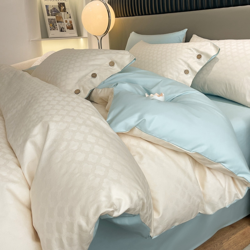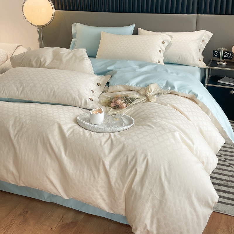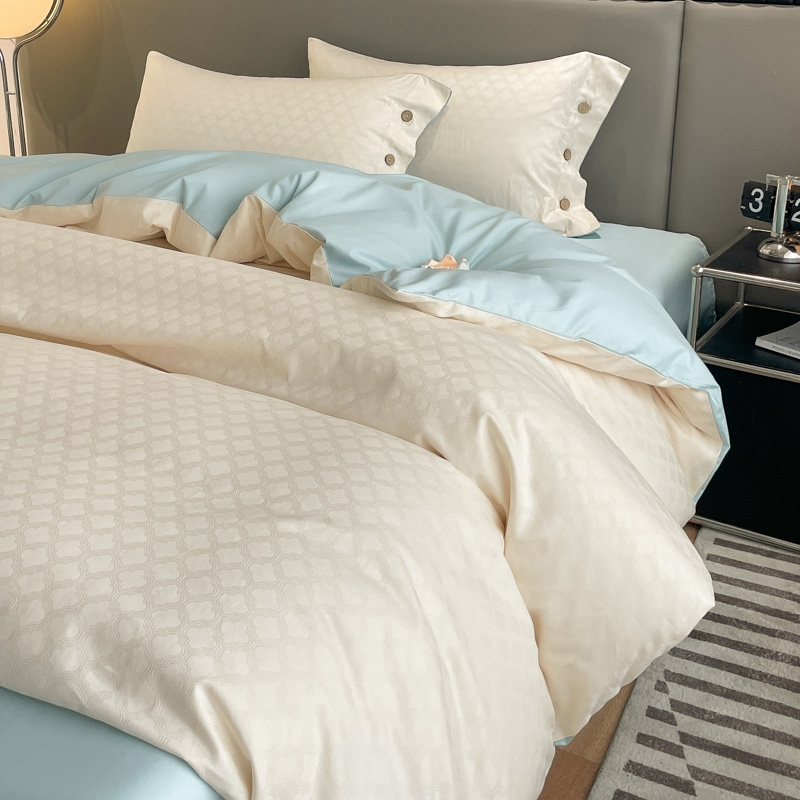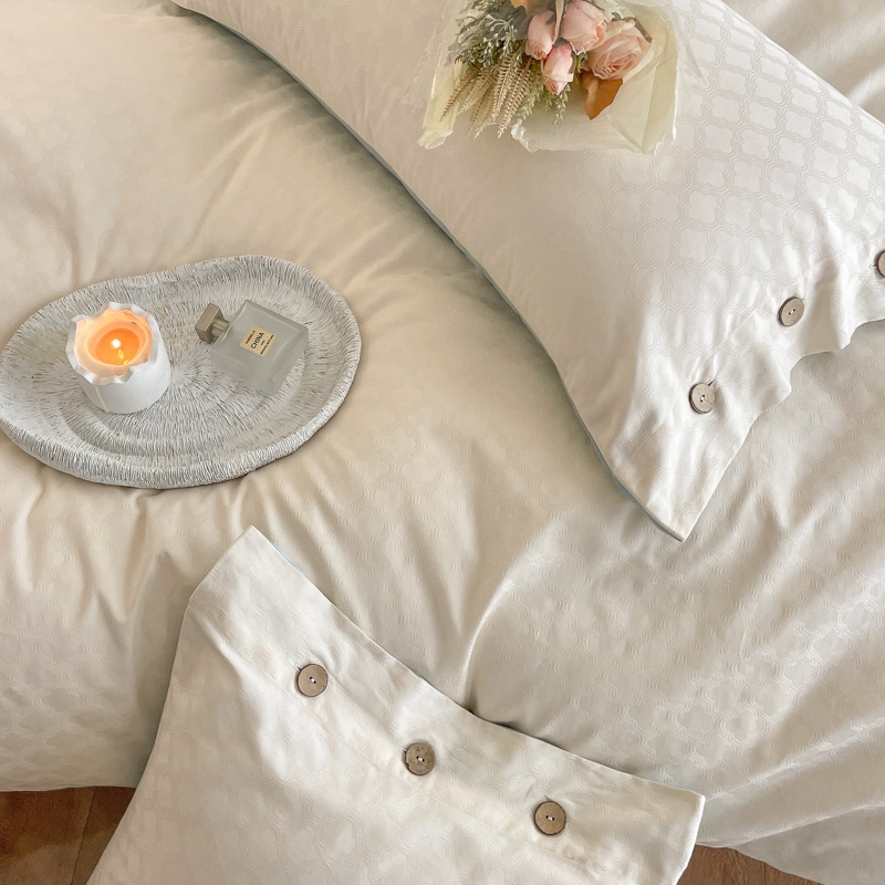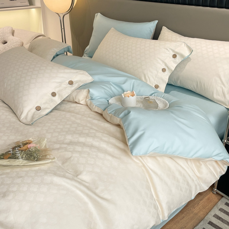 当前位置: 91家纺网 > 商品网购 > 床品套件 > 四件套 > 全棉普通四件套 > 慕色家纺 2023新款40全棉提花四叶草系列四件套 四叶草-奶昔白+天空蓝