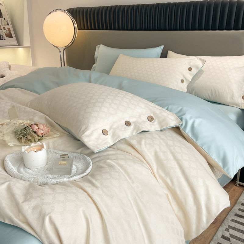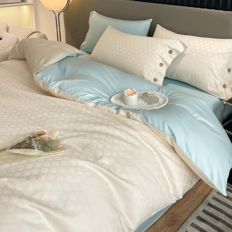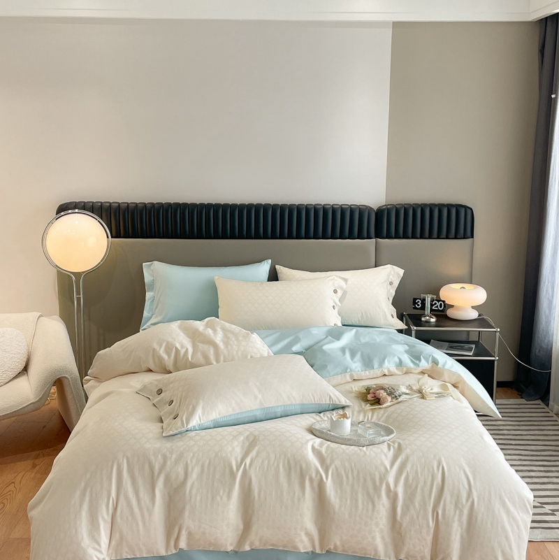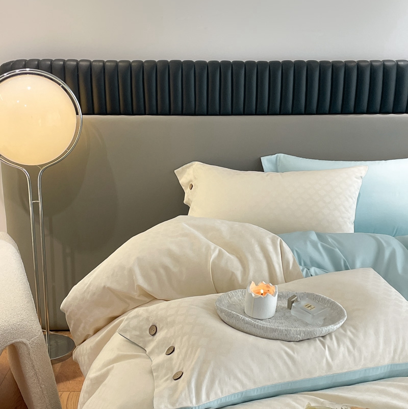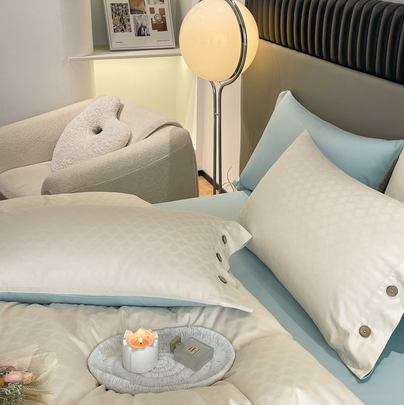 当前位置: 91家纺网 > 商品网购 > 床品套件 > 四件套 > 全棉普通四件套 > 慕色家纺 2023新款40全棉提花四叶草系列四件套 四叶草-奶昔白+天空蓝