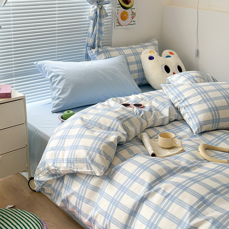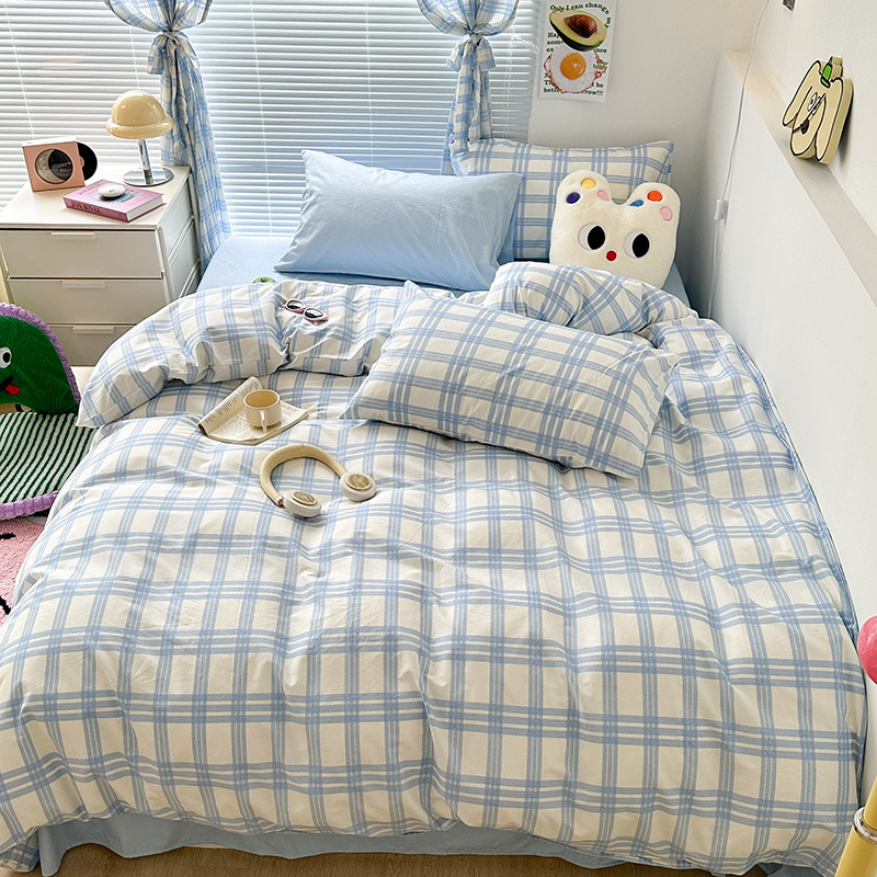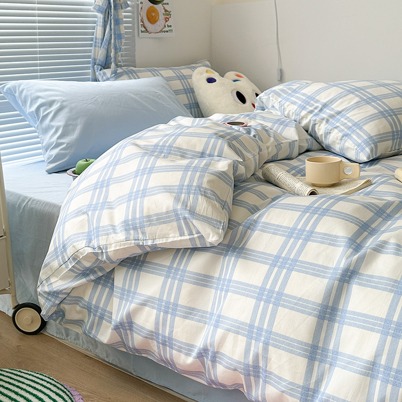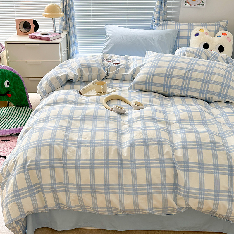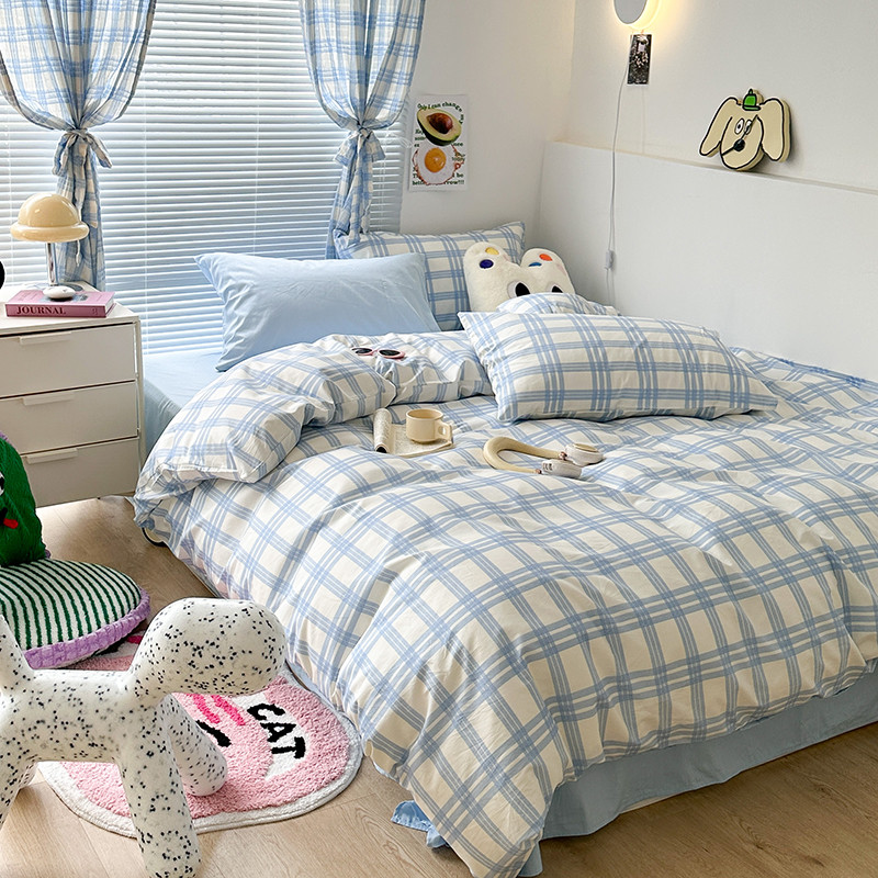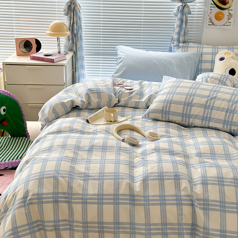 昔可 2023新款全棉ins格子混搭系列四件套海盐兰格