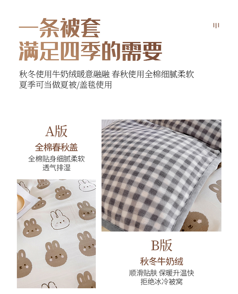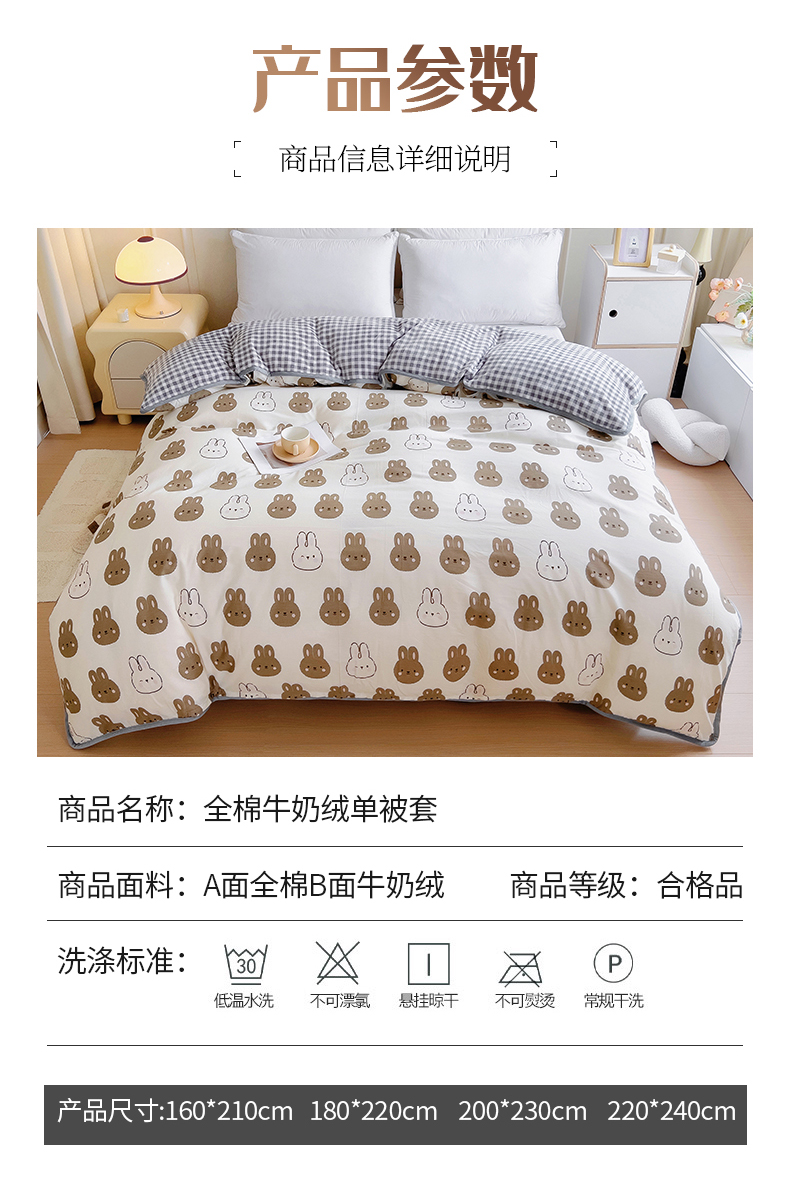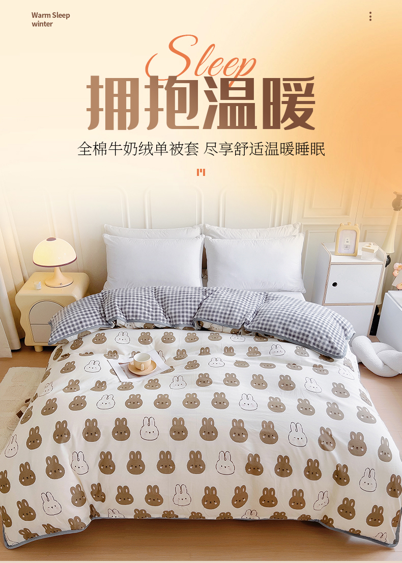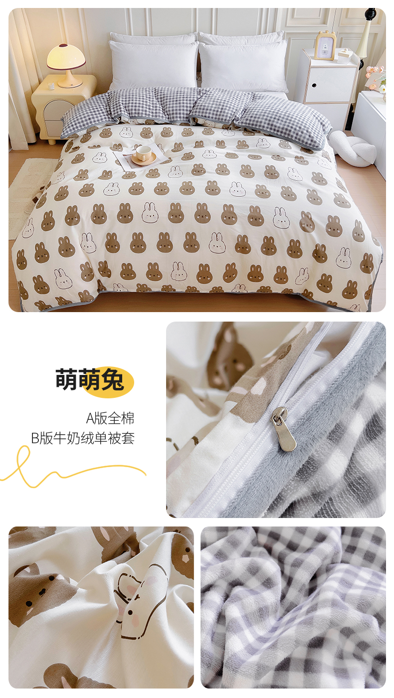 商品名称:琪琪阁 2023新款全棉加牛奶绒单被套 萌萌兔