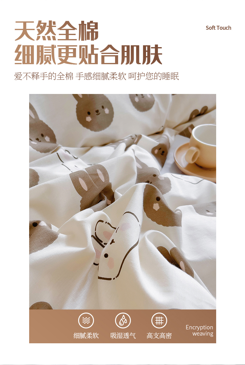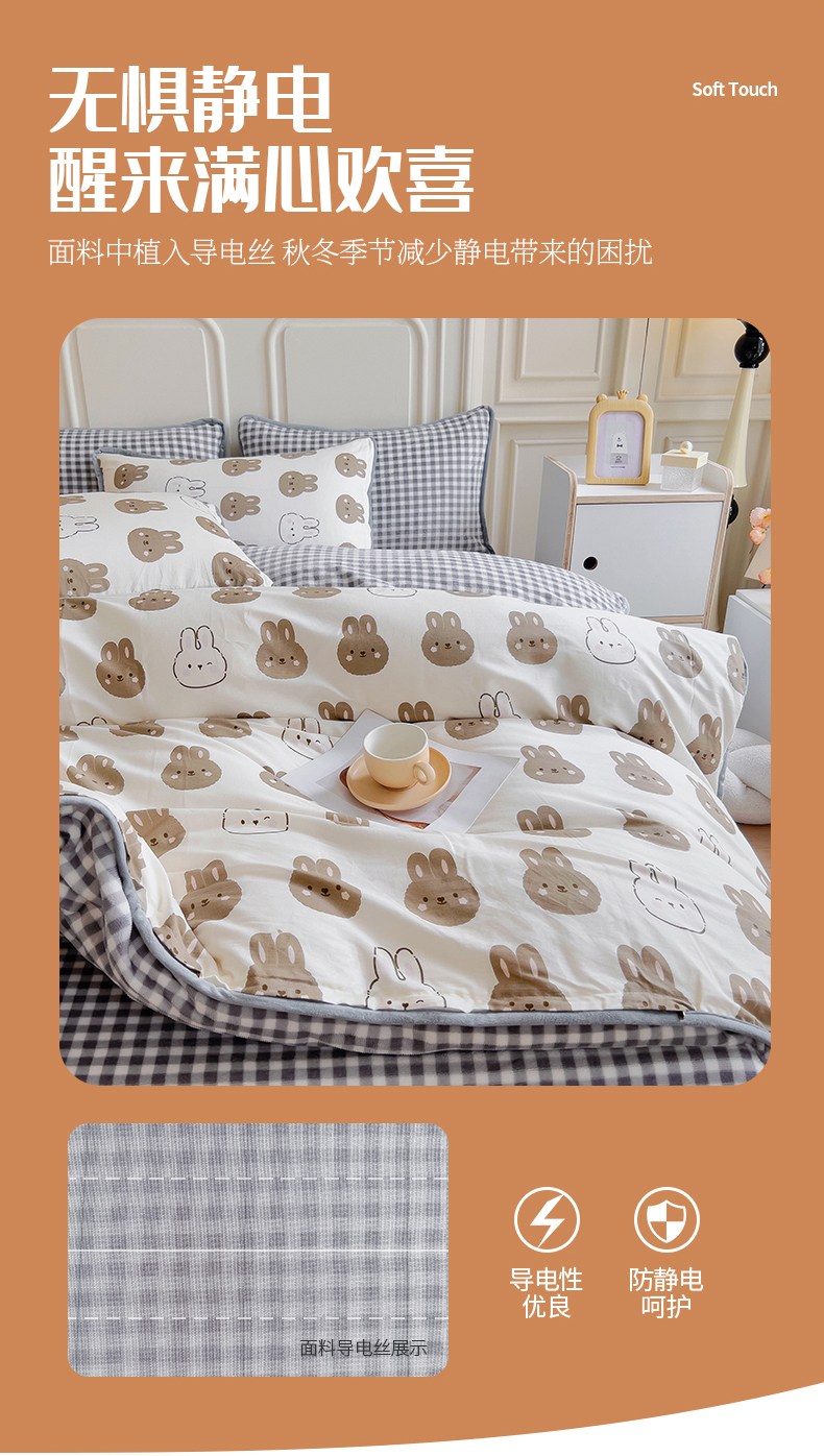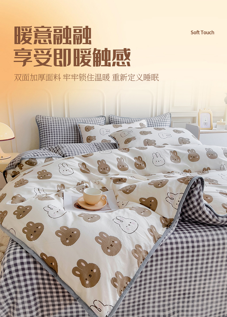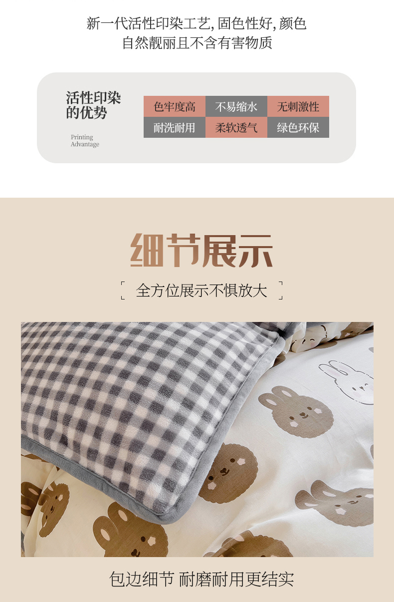 商品名称:琪琪阁 2023新款全棉加牛奶绒单被套 萌萌兔