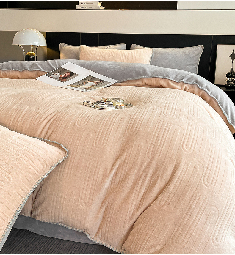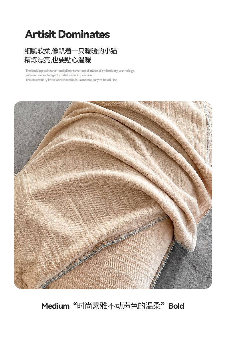 澳梵 2023新款雕花牛奶绒贝壳边工艺四件套 律动-卡其