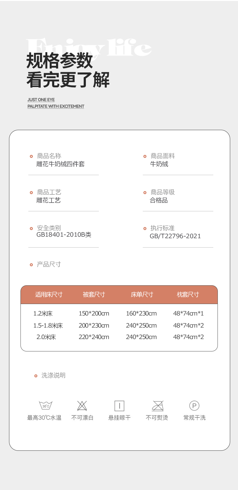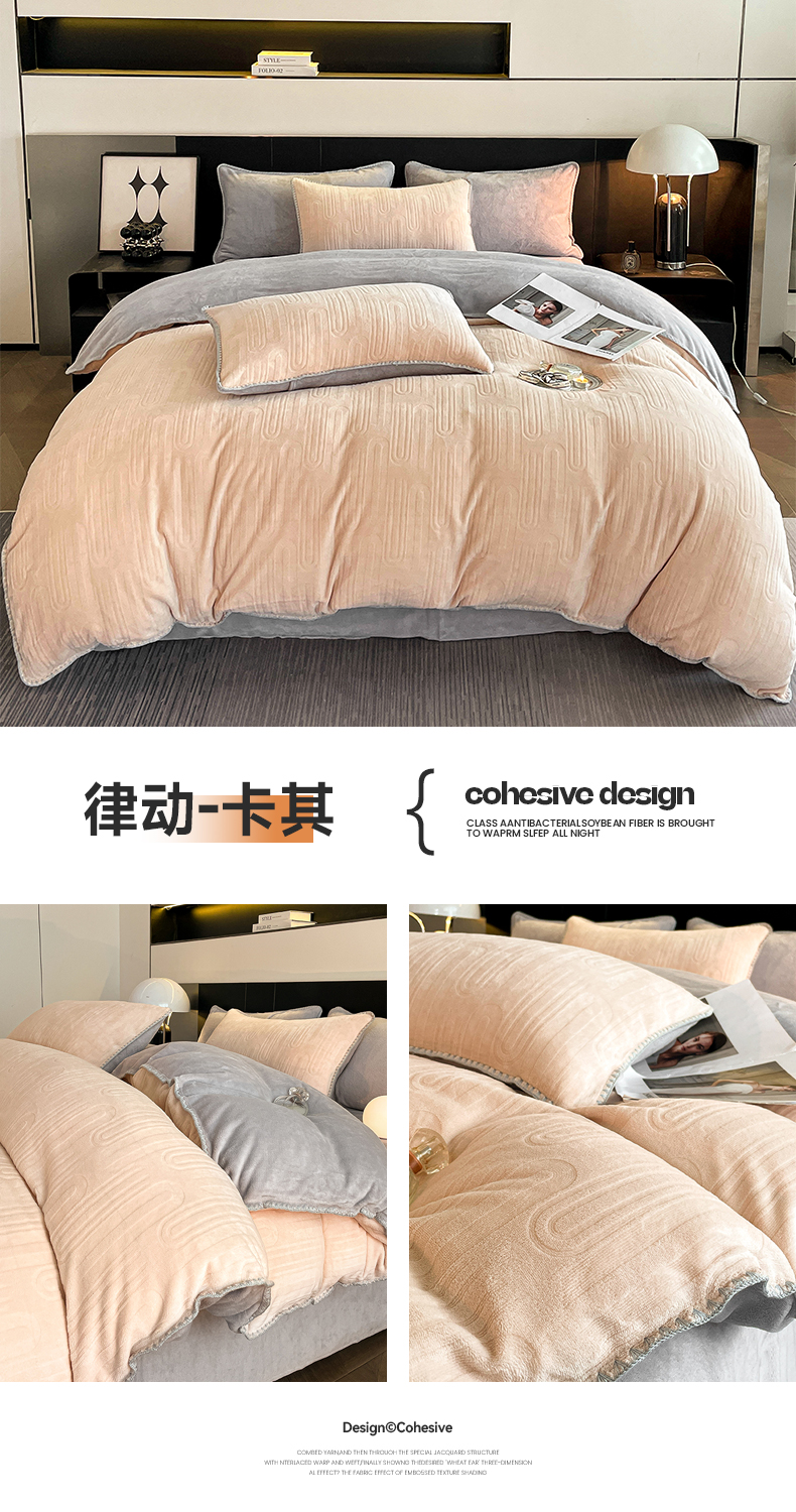 商品名称:澳梵 2023新款雕花牛奶绒贝壳边工艺四件套 律动-卡其