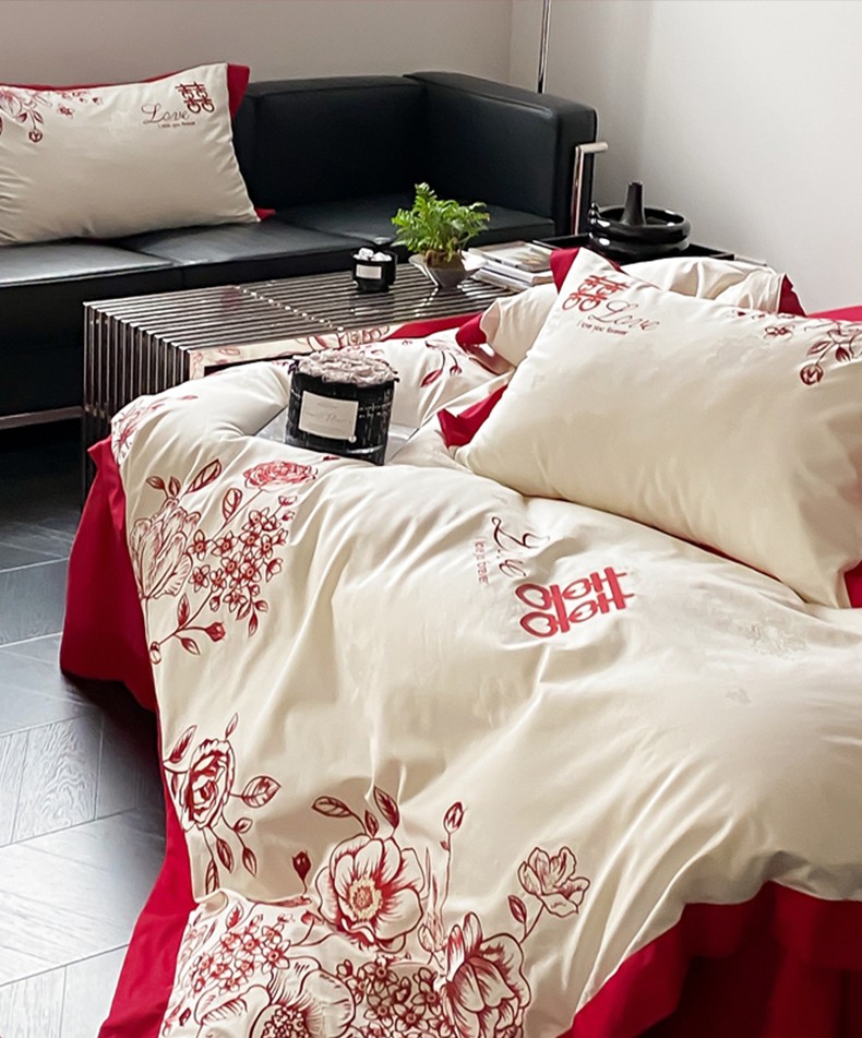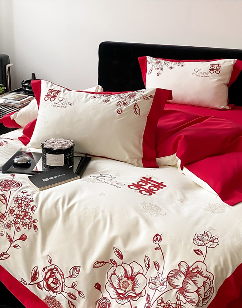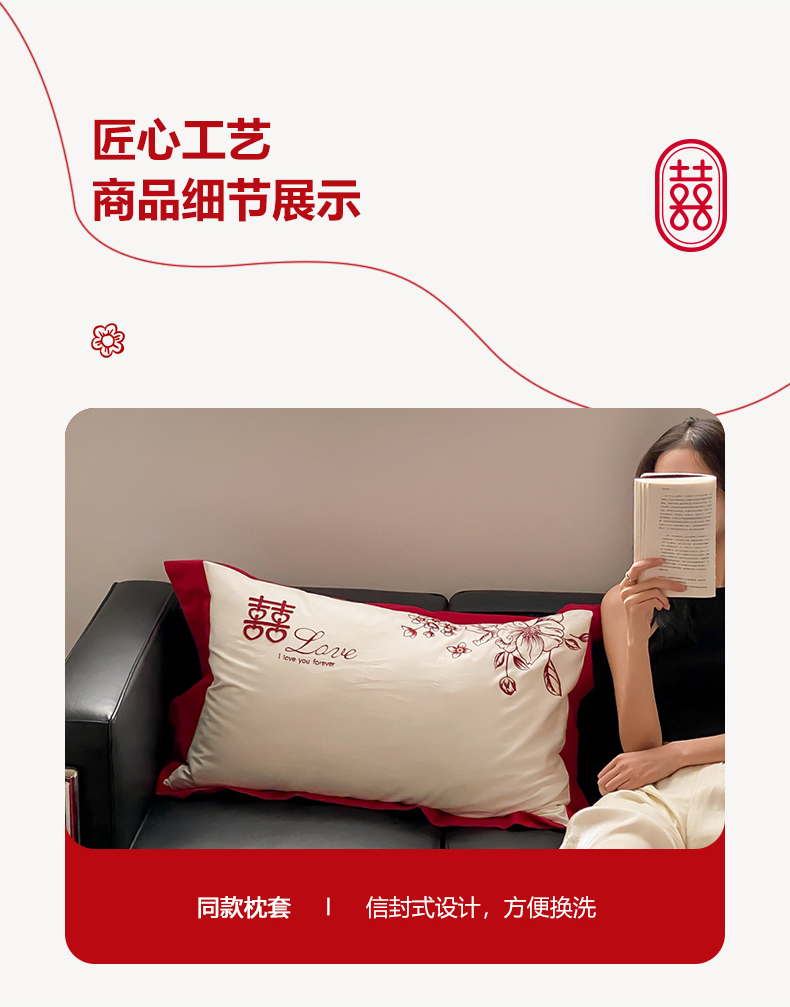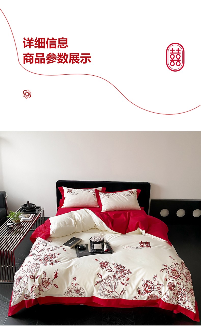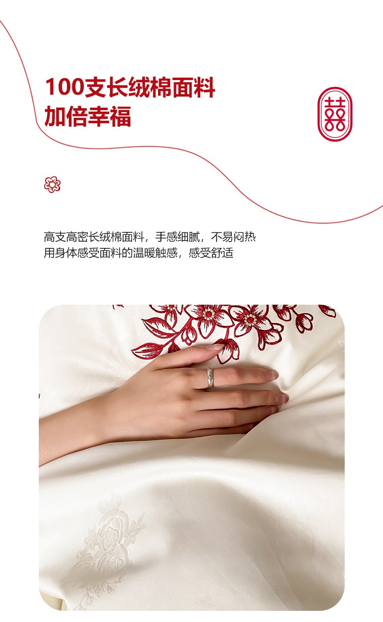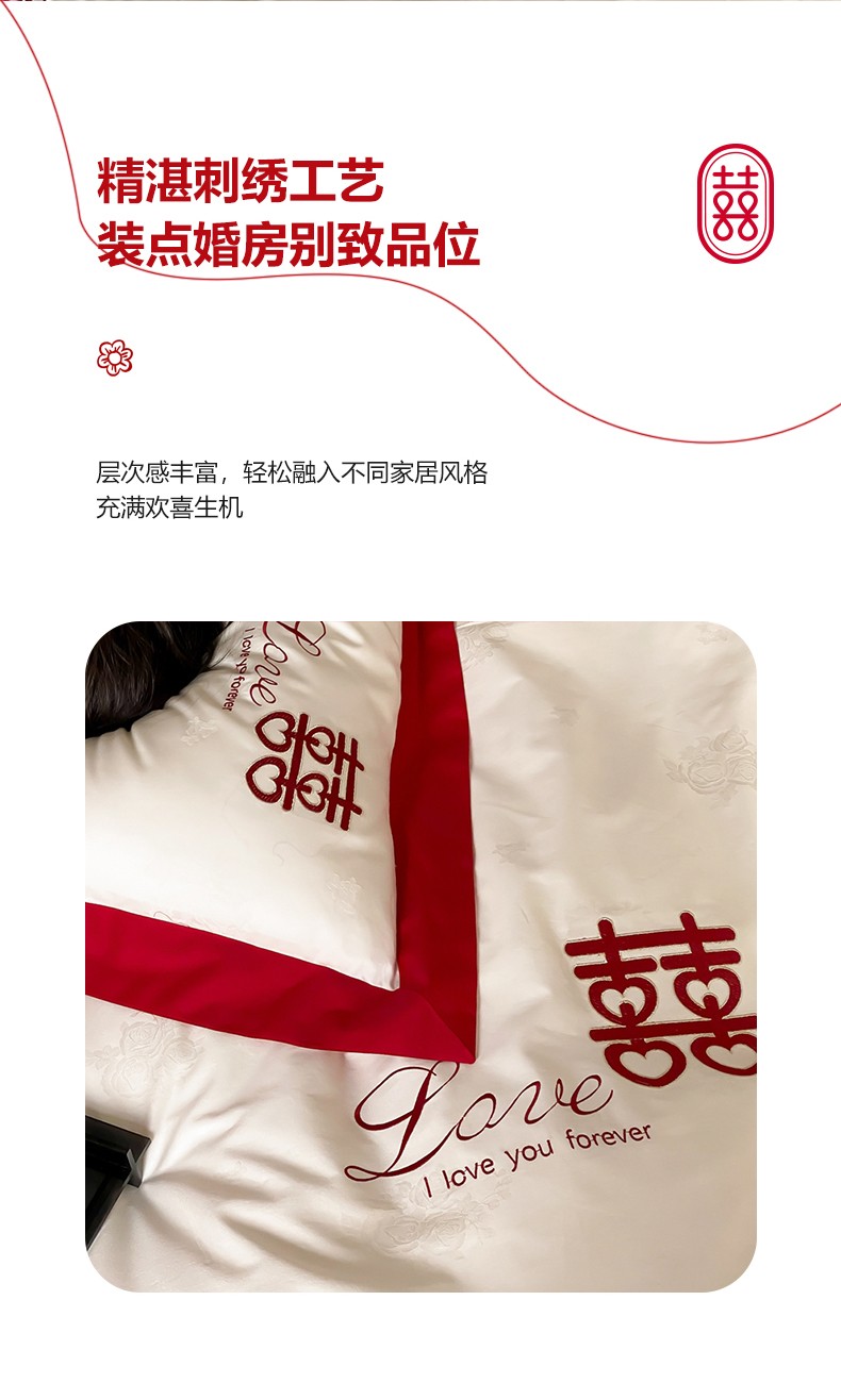 (总)用心 2026年新款双面长绒棉提花婚庆刺绣四件套,喜上喜,禧爱,吉祥