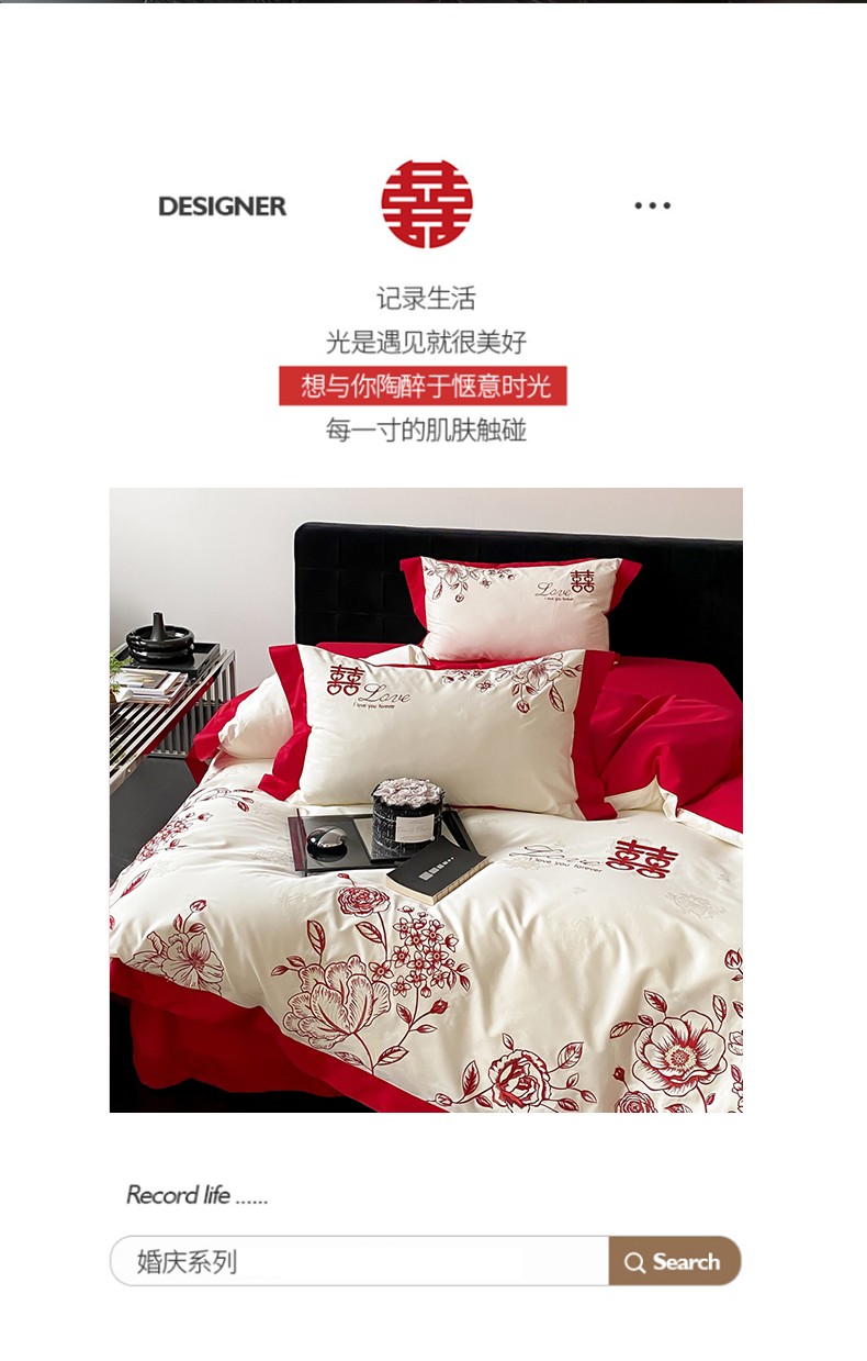 (总)用心 2022新款磨毛刺绣婚庆四件套,今生缘,甜蜜love,喜迎圆满