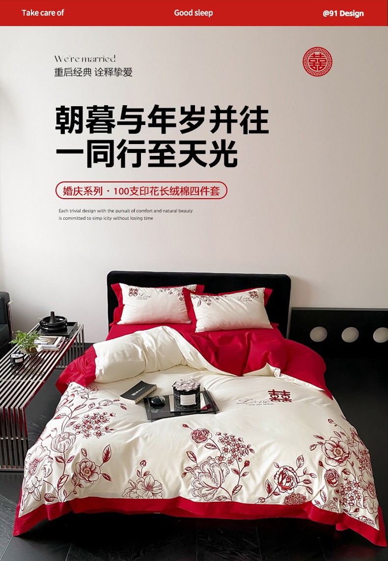 (总)用心 2022新款数码印花婚庆四件套-克里斯汀,克里斯汀
