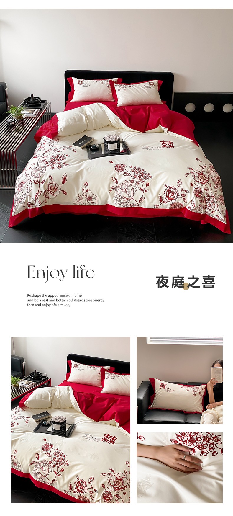 商品名称:用心 2023新款长绒棉提花高端刺绣家居婚庆四件套 夜庭之喜