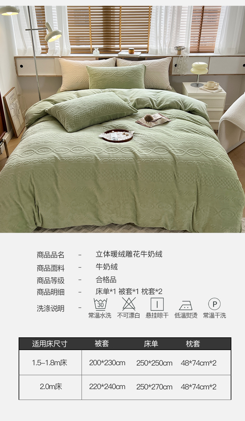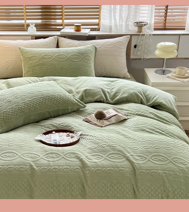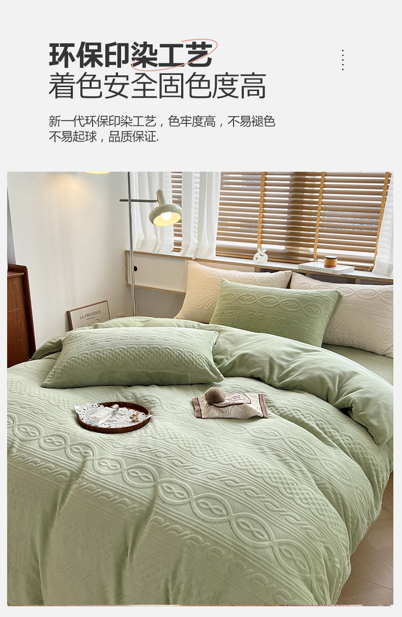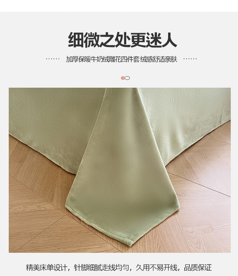 商品名称:N先生 2023新款高克重雕花绒牛奶绒四件套 丽莎-绿