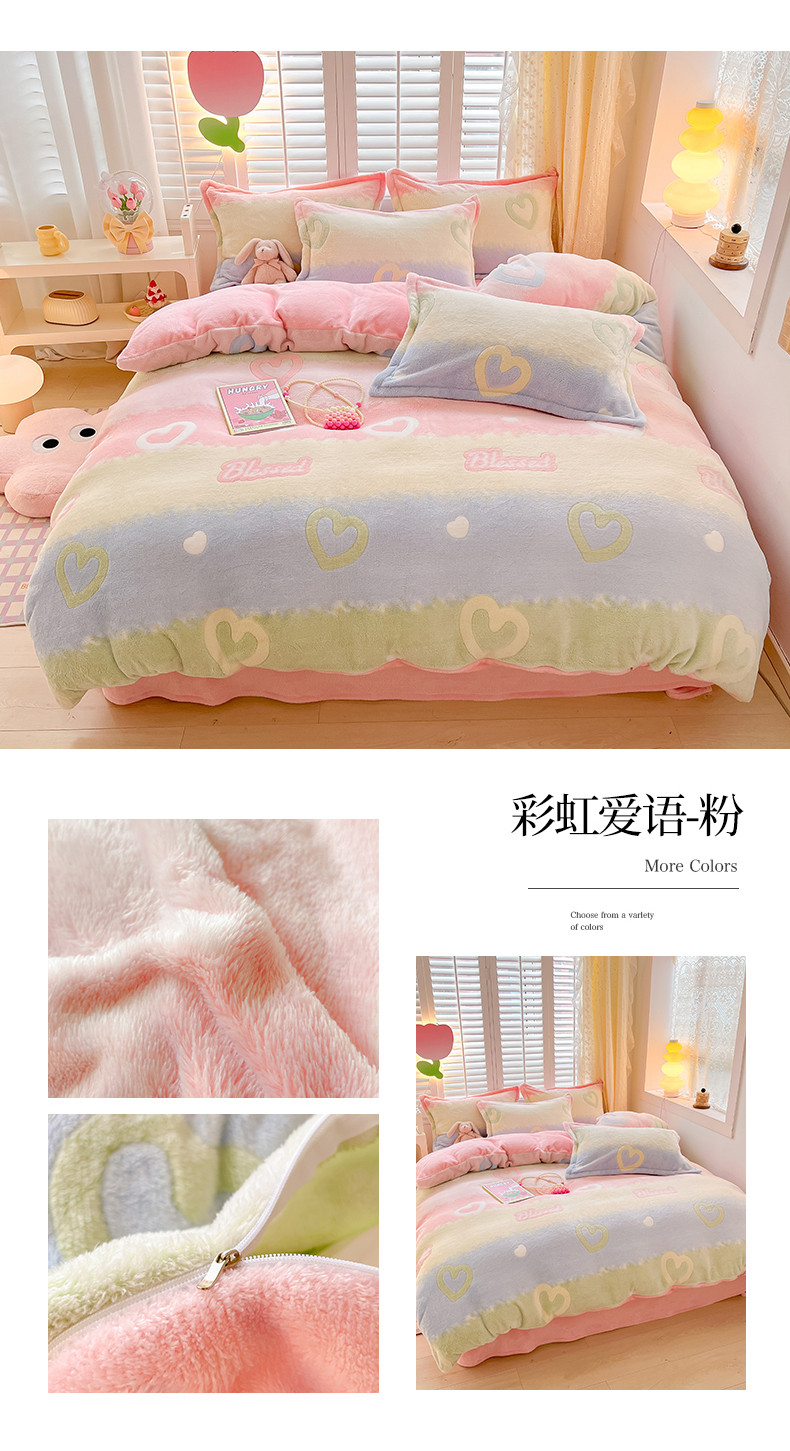 商品名称:川悦生活 2023新款立体雪花绒单被套 彩虹爱语-粉
