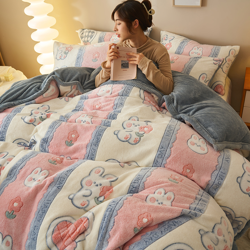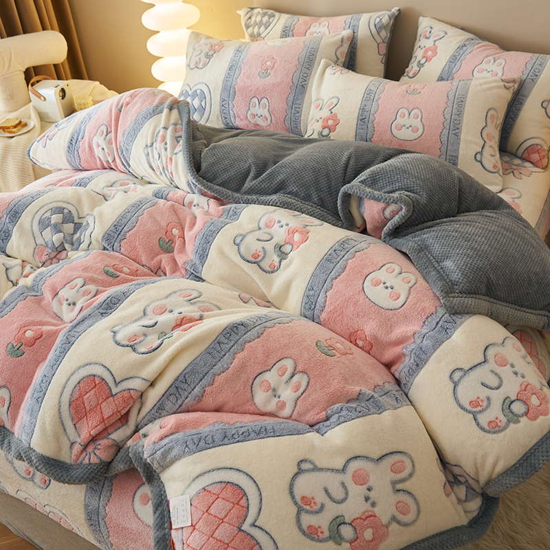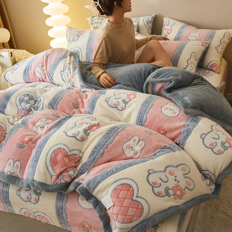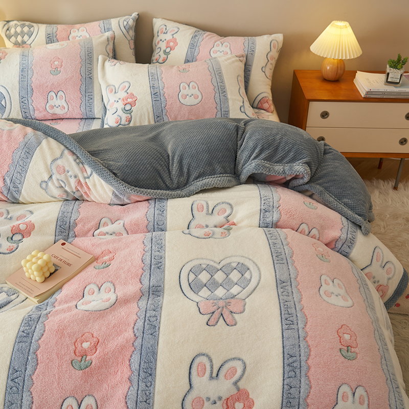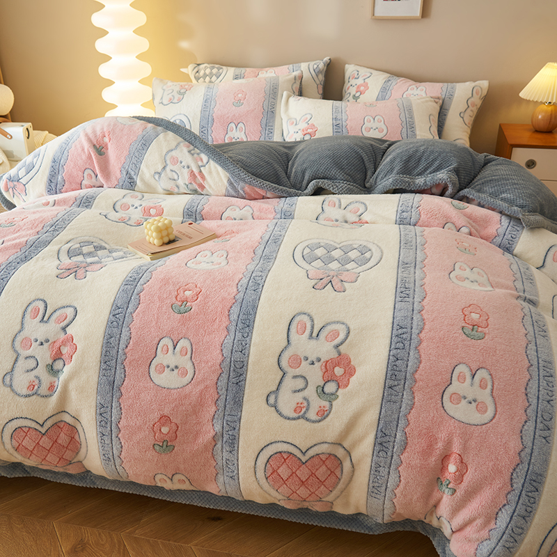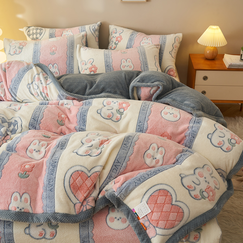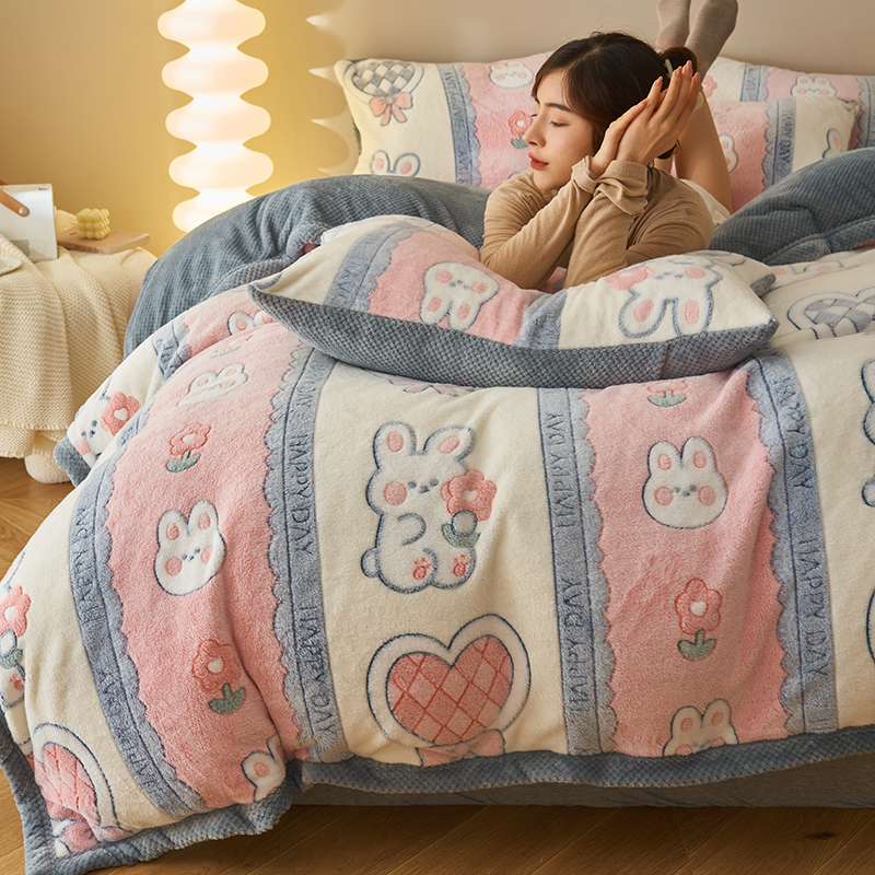 • 91家纺网 家纺一手货源 找家纺 21度C 2023新款雪花绒被套 萌兔心意