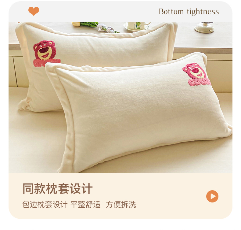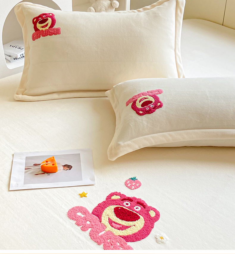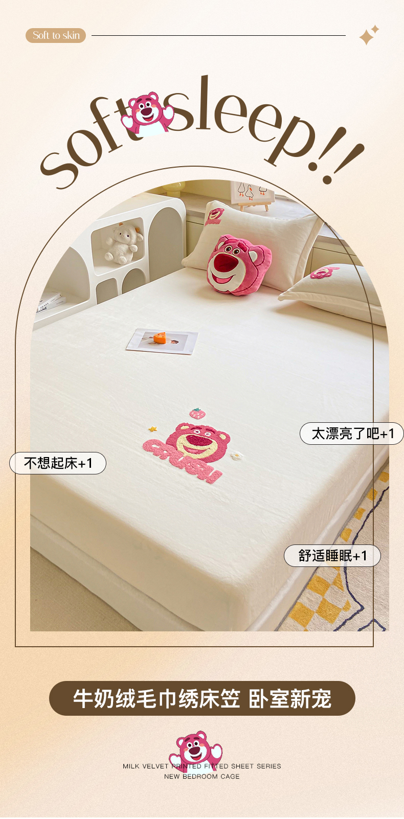 丽美人家纺 2023新款迪斯尼牛奶绒毛巾绣床笠系列 草莓熊