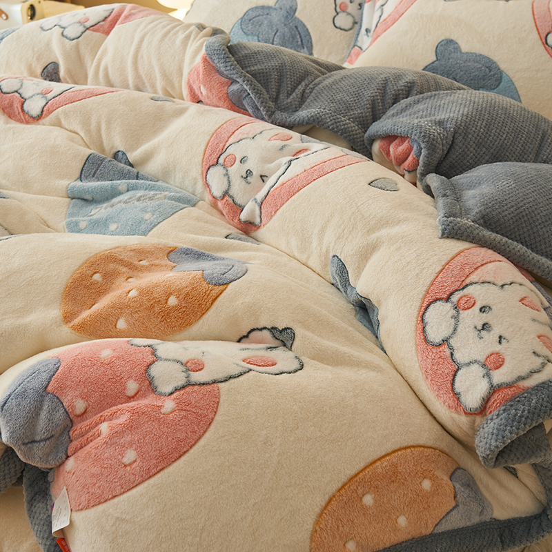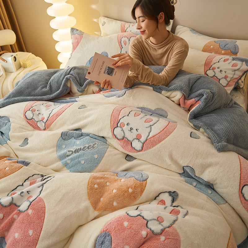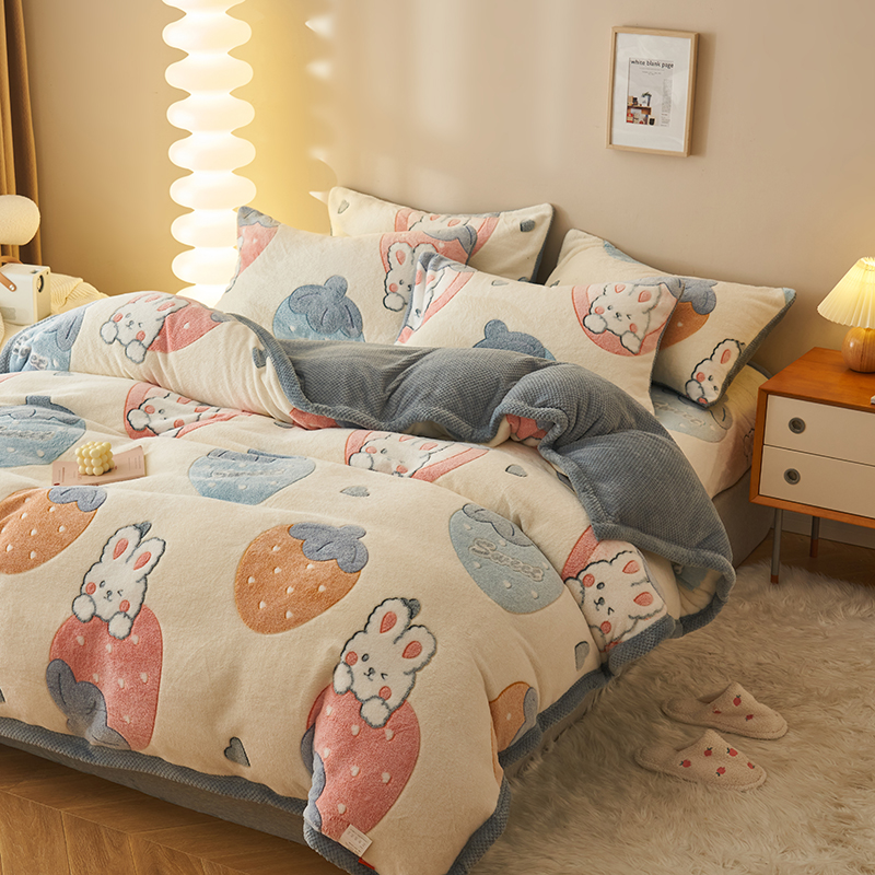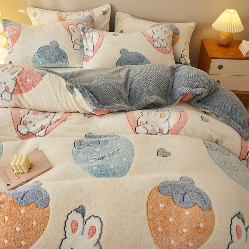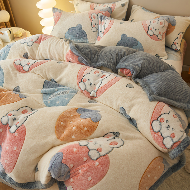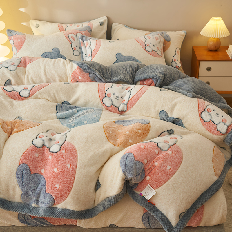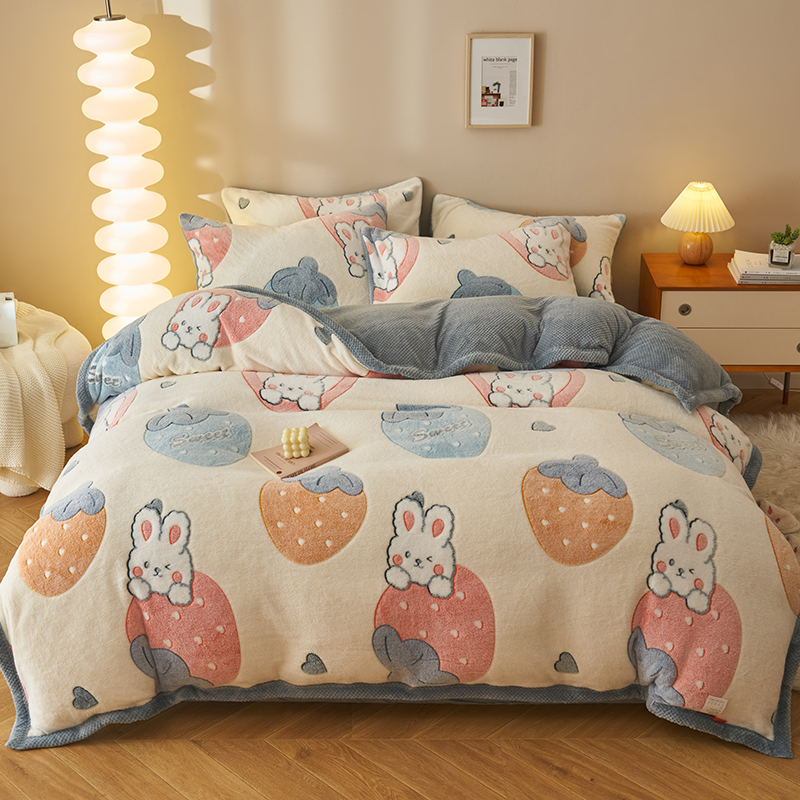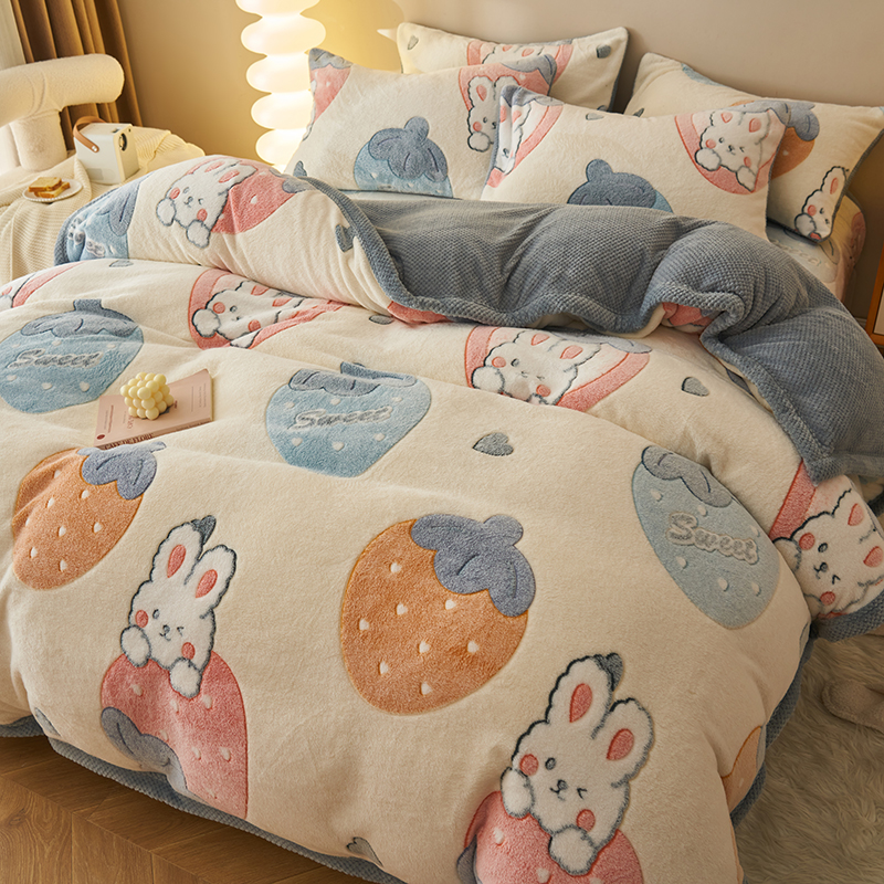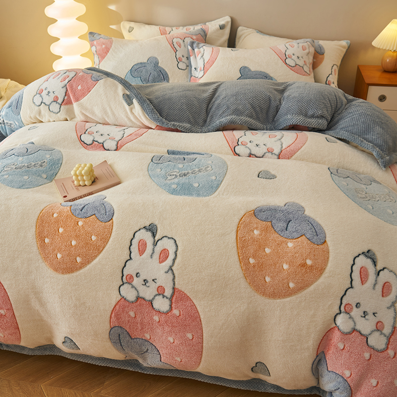 当前位置: 91家纺网 > 商品网购 > 床品套件 > 四件套 > 贝贝绒四件套 > 21度C 2023新款雪花绒贝贝绒四件套 草莓兔乖乖