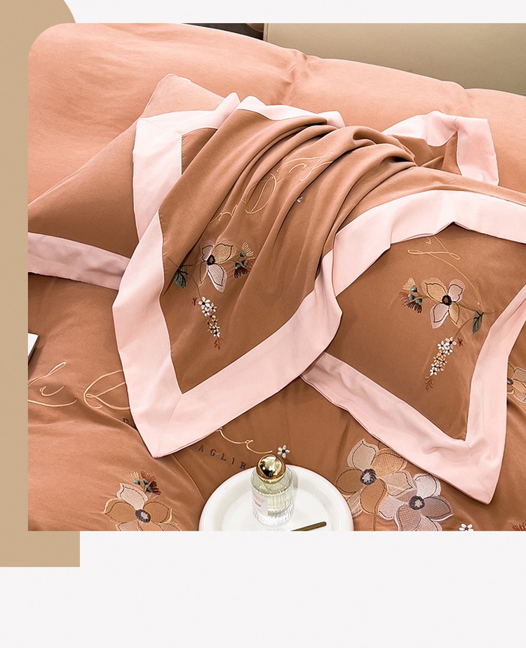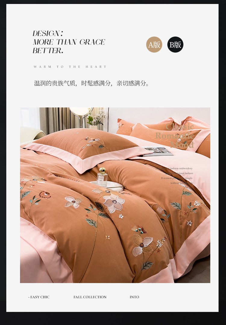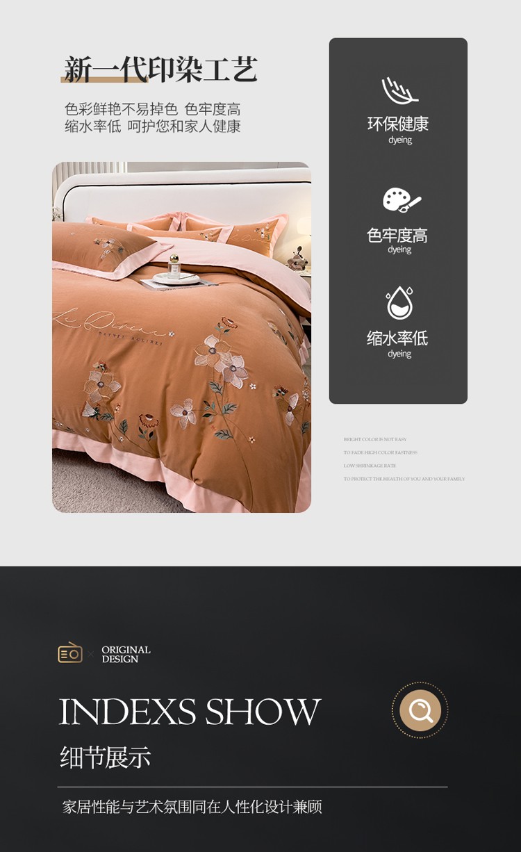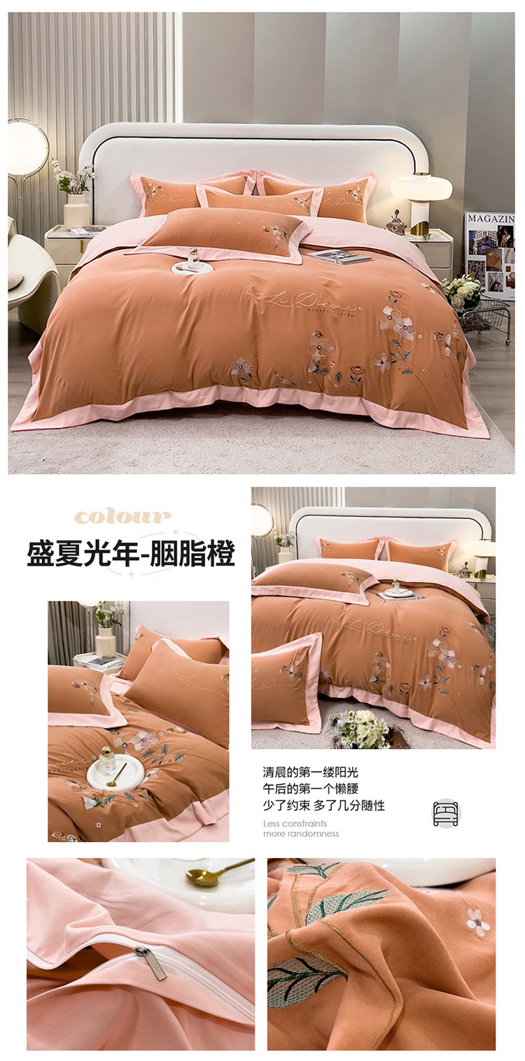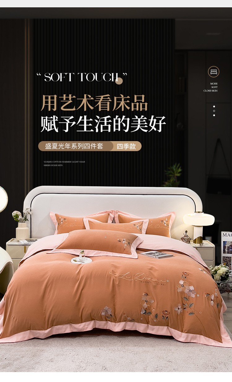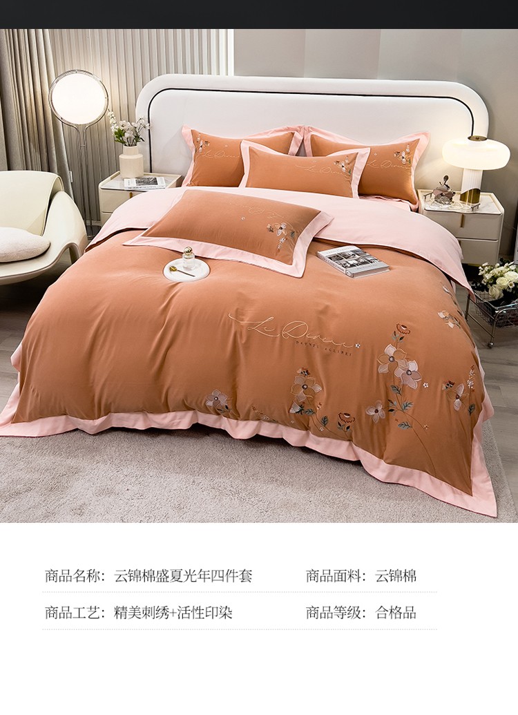 商品名称:欧冠 2023新款秋冬保暖云锦棉刺绣宽边盛夏光年系列四件套 盛夏光年-胭脂橙