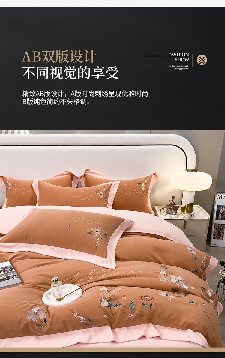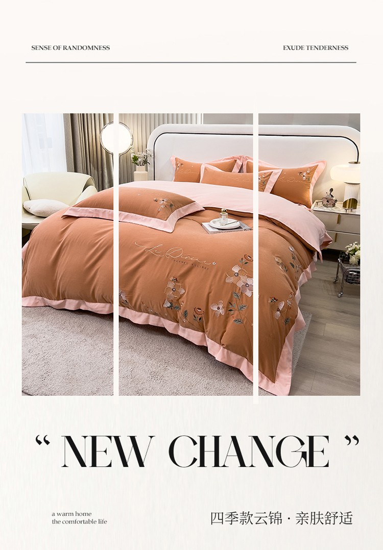 欧冠 2023新款秋冬保暖云锦棉刺绣宽边盛夏光年系列四件套 盛夏光年-胭脂橙