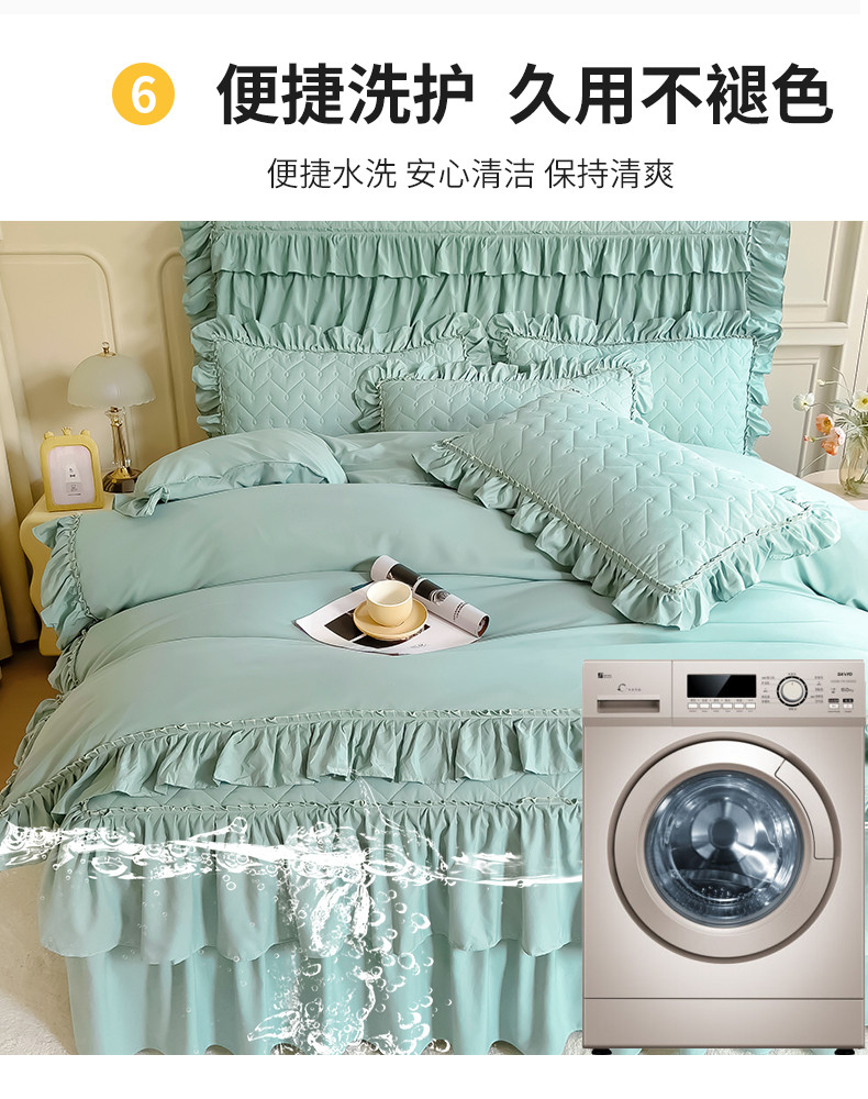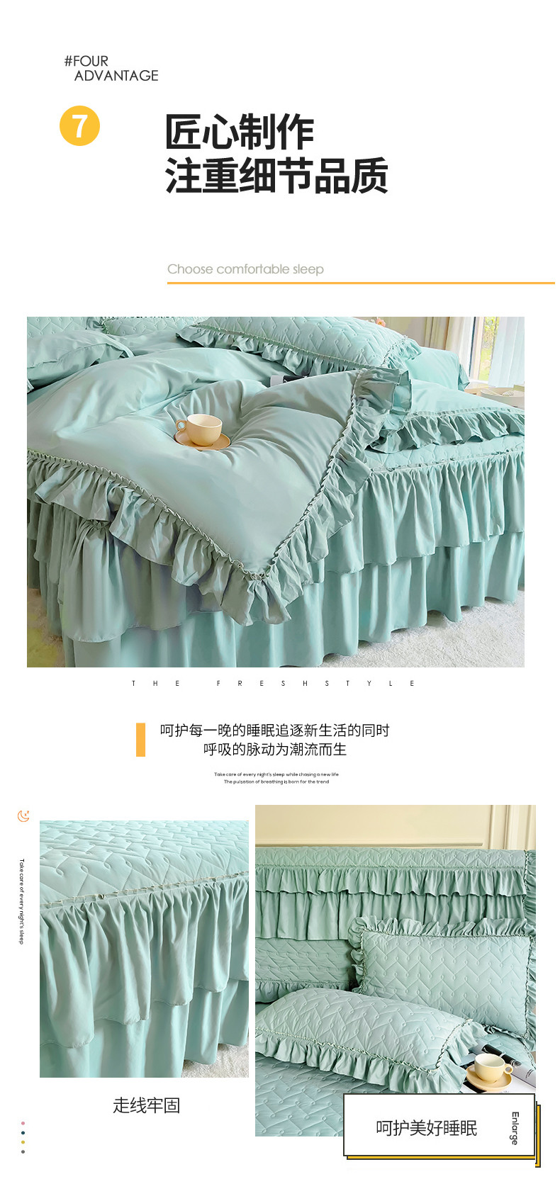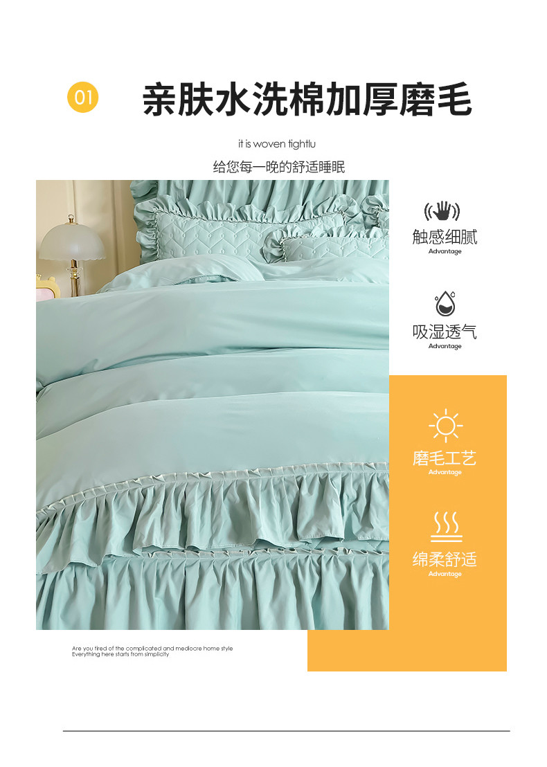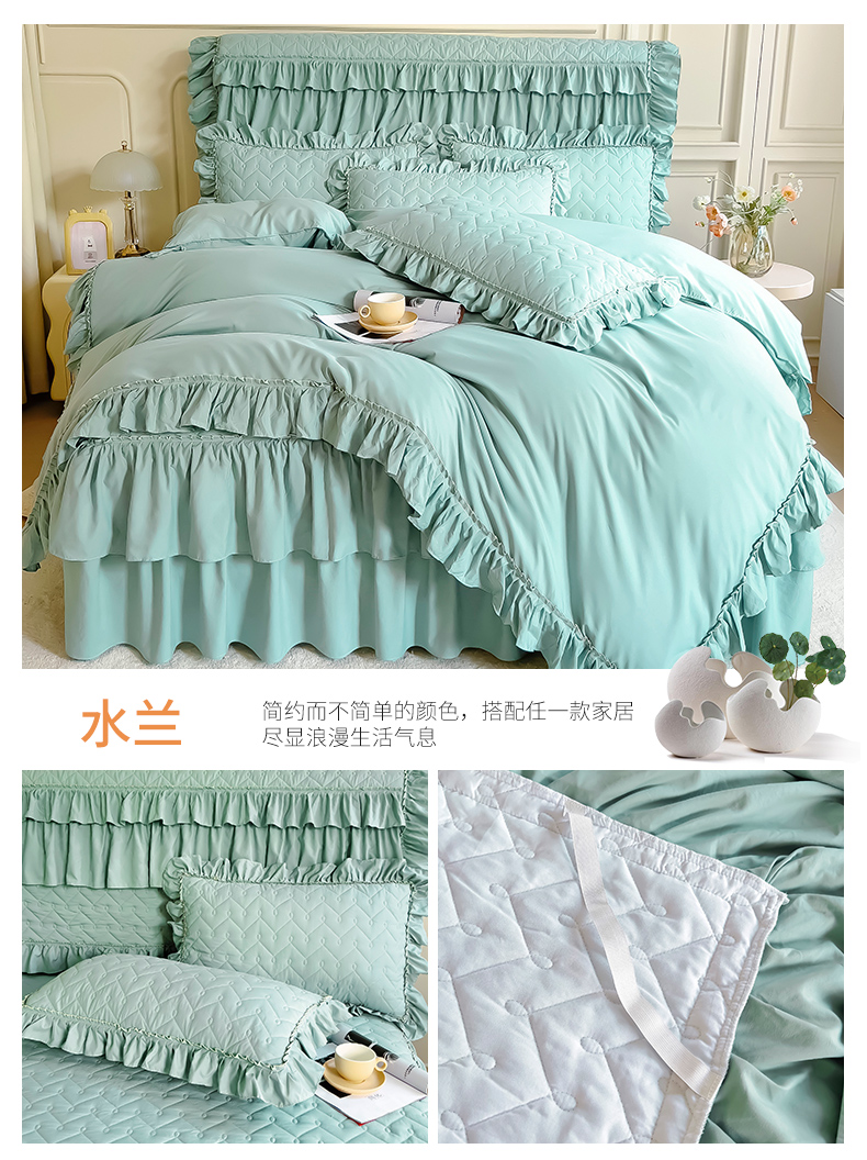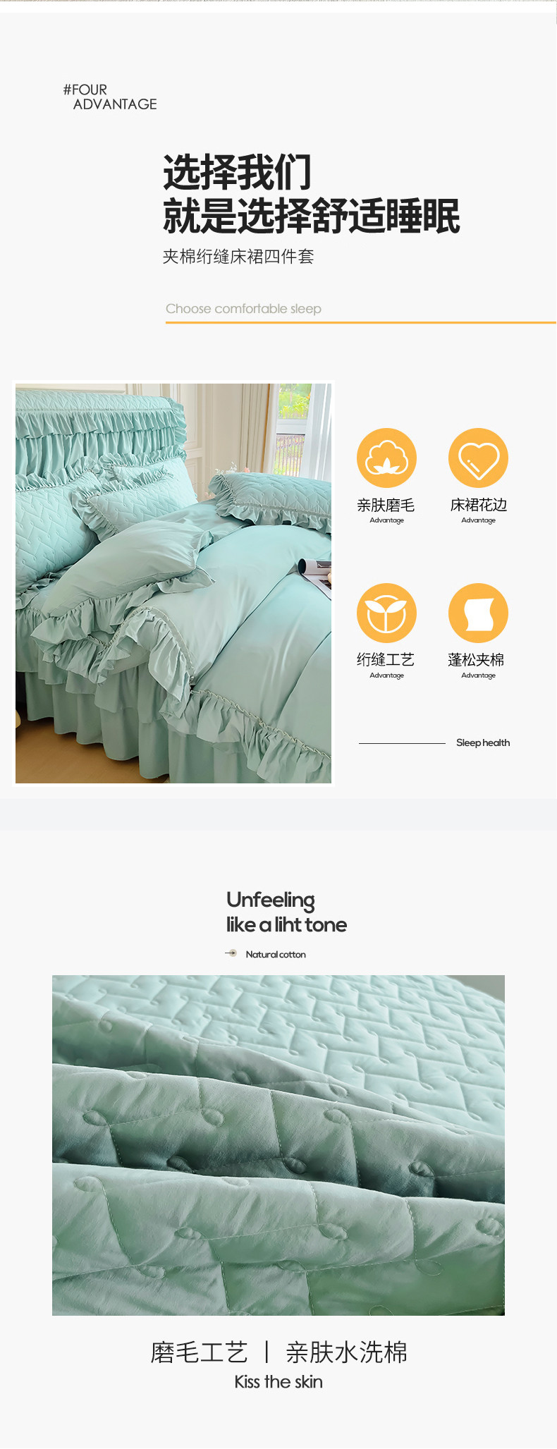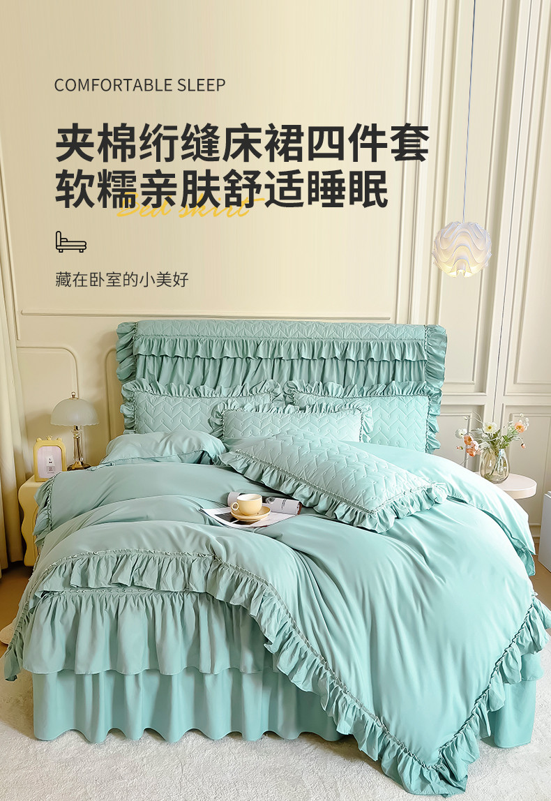 当前位置: 91家纺网 > 商品网购 > 床品套件 > 四件套 > 全棉普通四件套 > 十个点 2024新款水洗棉磨毛夹棉纤缝床裙套件星辰系列-四件套 水兰