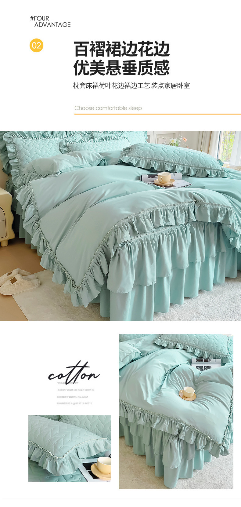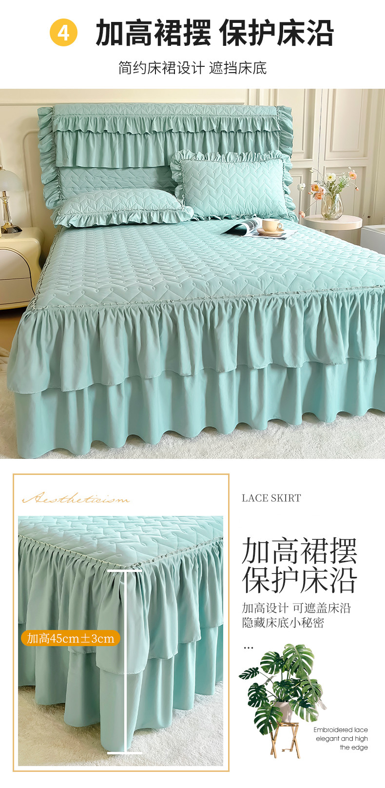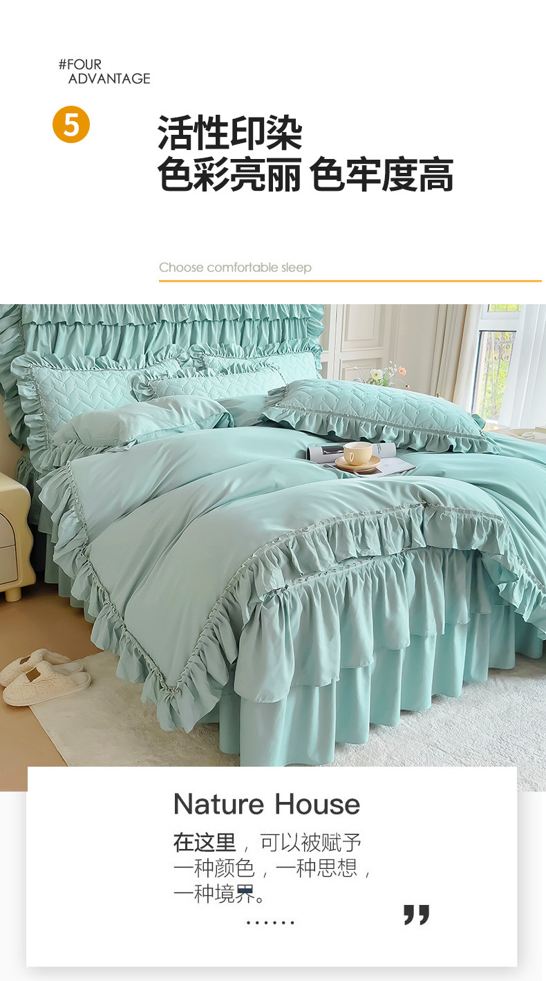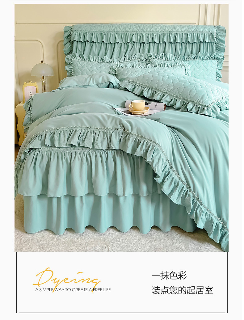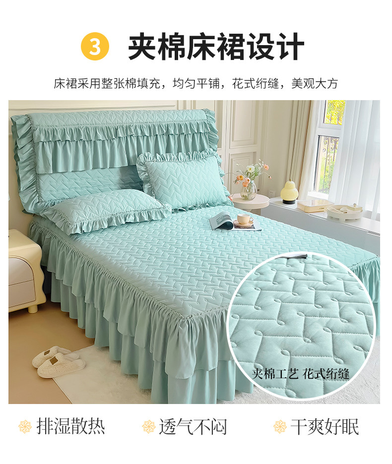 当前位置: 91家纺网 > 商品网购 > 床品套件 > 四件套 > 全棉普通四件套 > 十个点 2024新款水洗棉磨毛夹棉纤缝床裙套件星辰系列-四件套 水兰