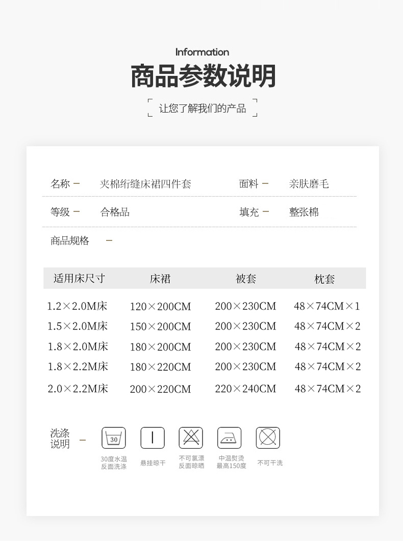 150*200cm床裙款四件套-被套200*230cm | ¥125.00 |