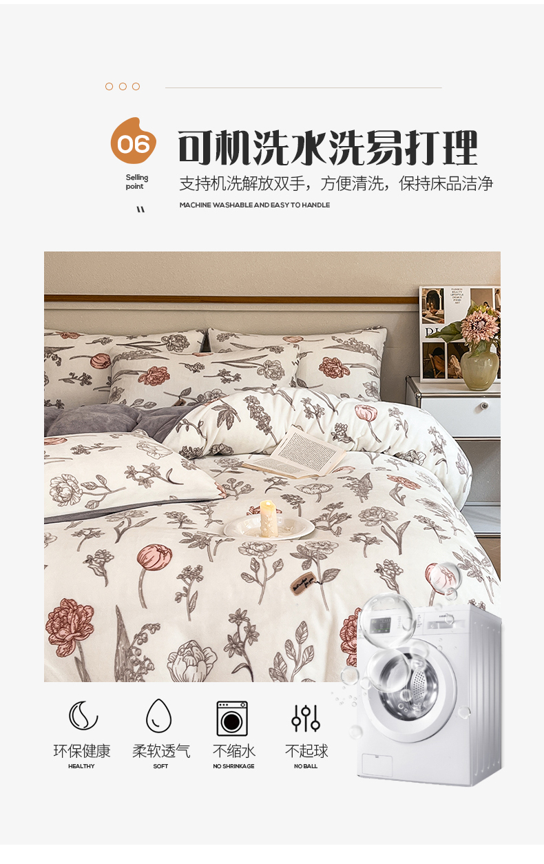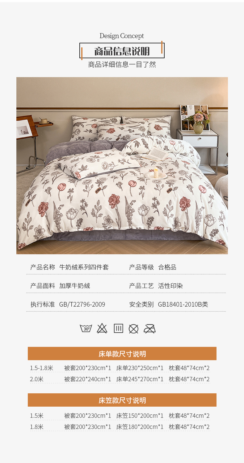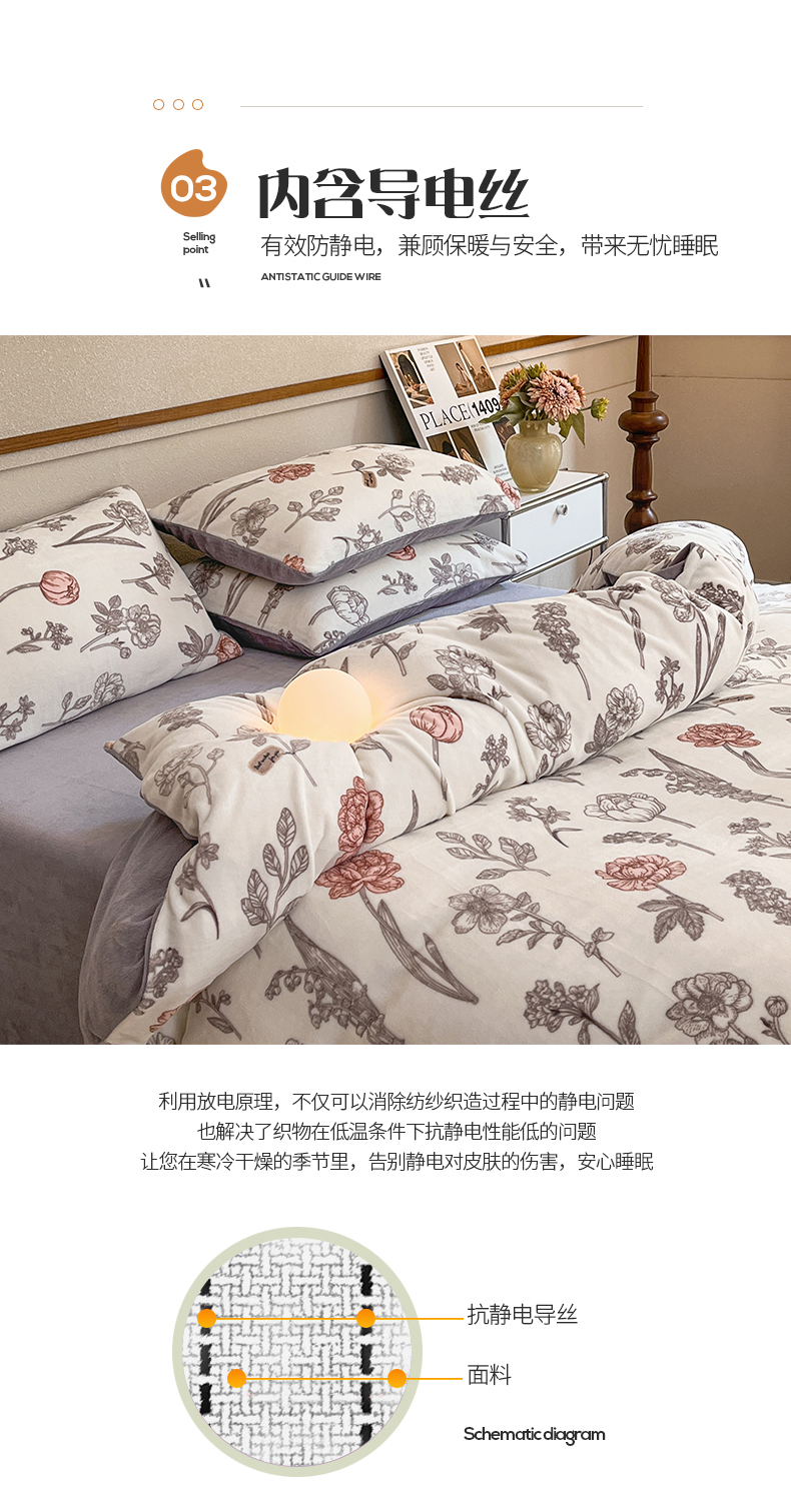 商品名称:桃子家居 2023新款ins法式复古赫本碎花山茶花卉加厚牛奶绒系列四件套 绒-粉诺