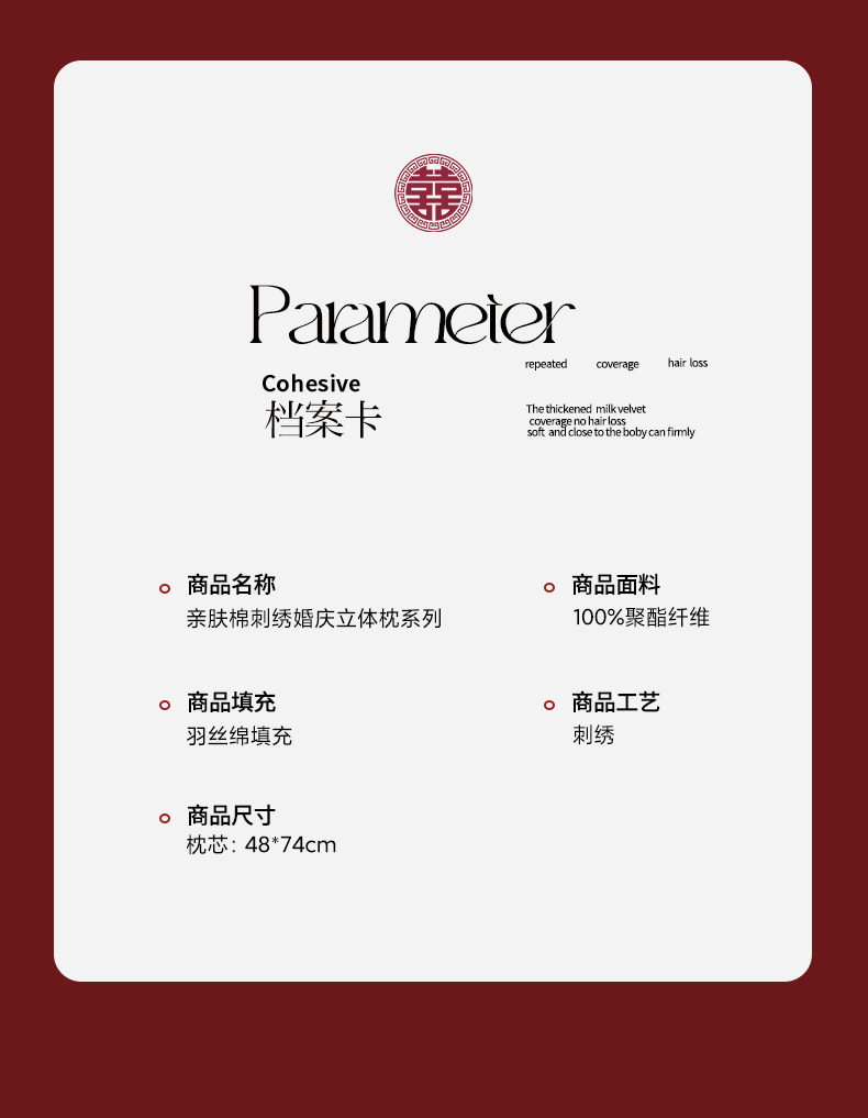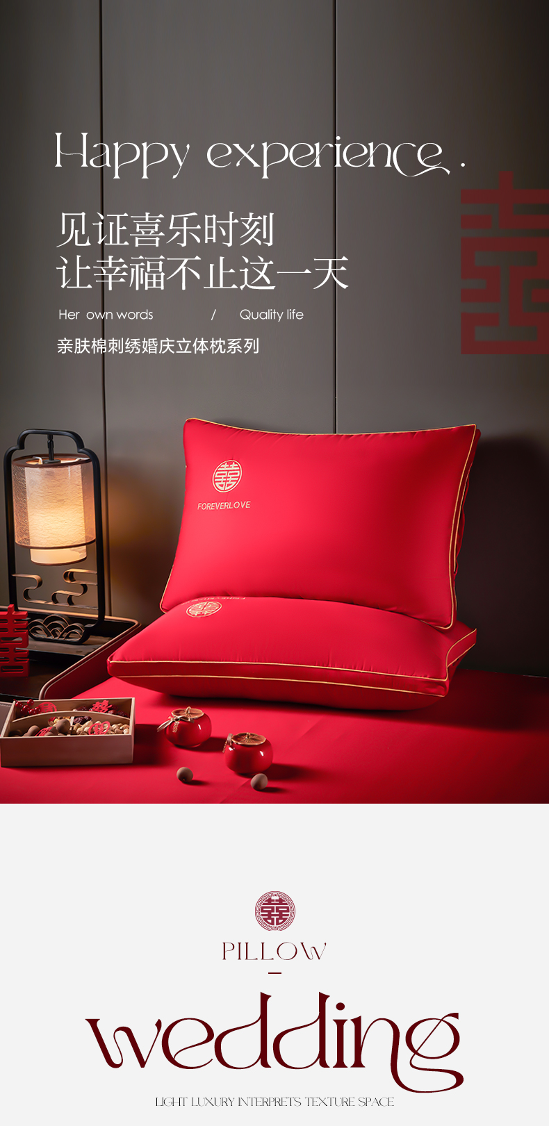 当前位置: 91家纺网 > 商品网购 > 枕头/枕芯/保健枕/颈椎枕 > 普通枕芯 > 花愿 2025新款亲肤棉刺绣婚庆立体枕 红色枕芯