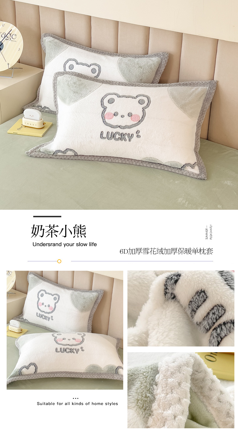 2023新款立体6D雪花绒加厚保暖系列单枕套 48x74cm一对 奶茶小熊