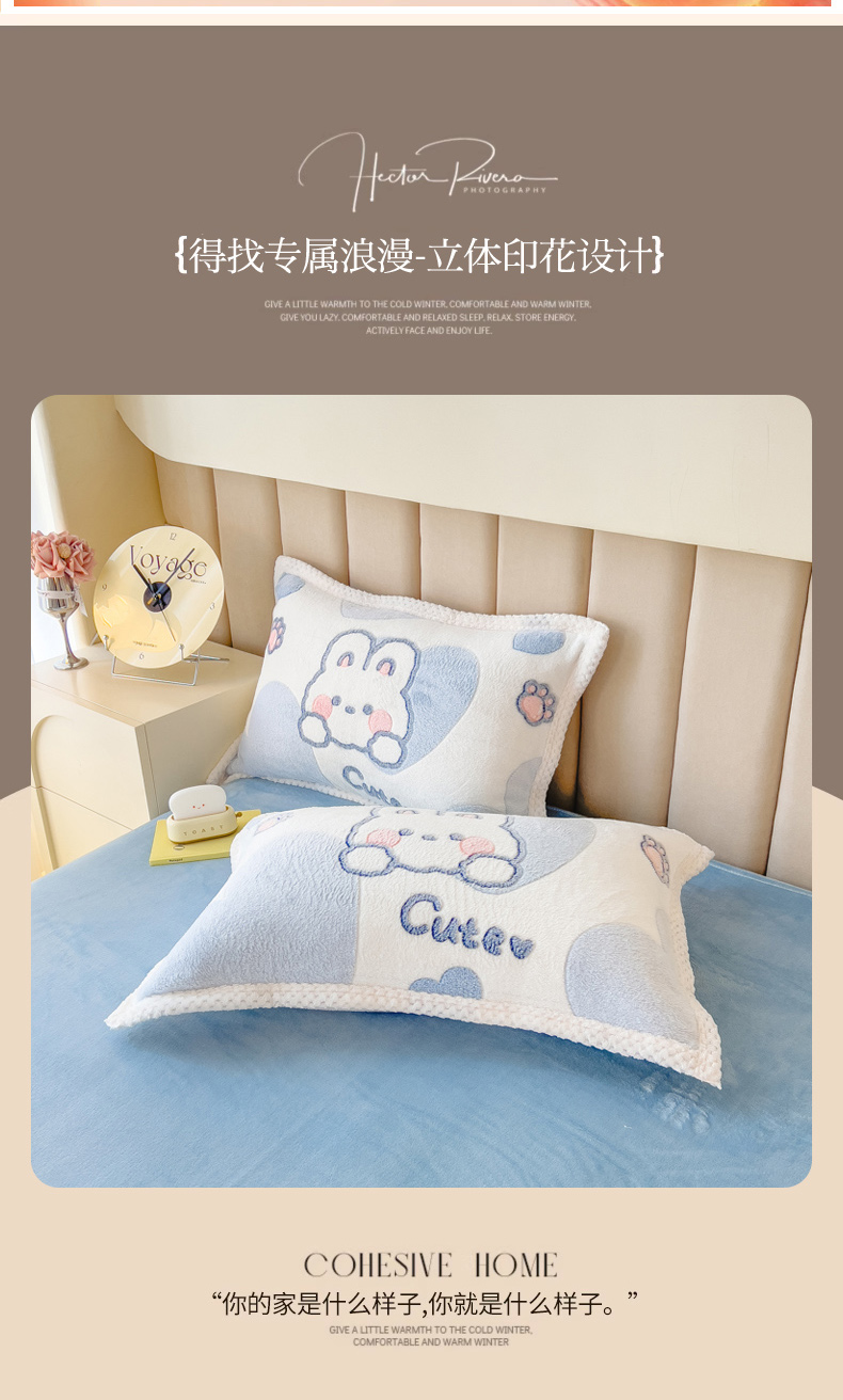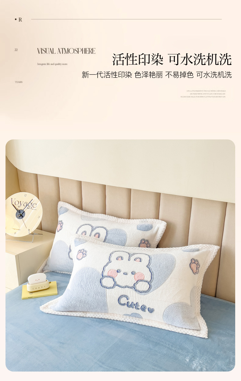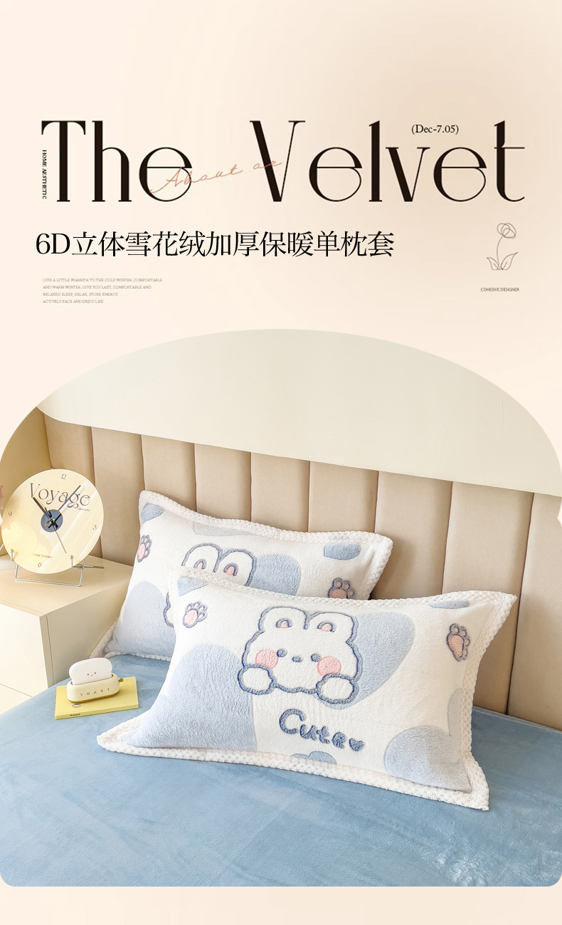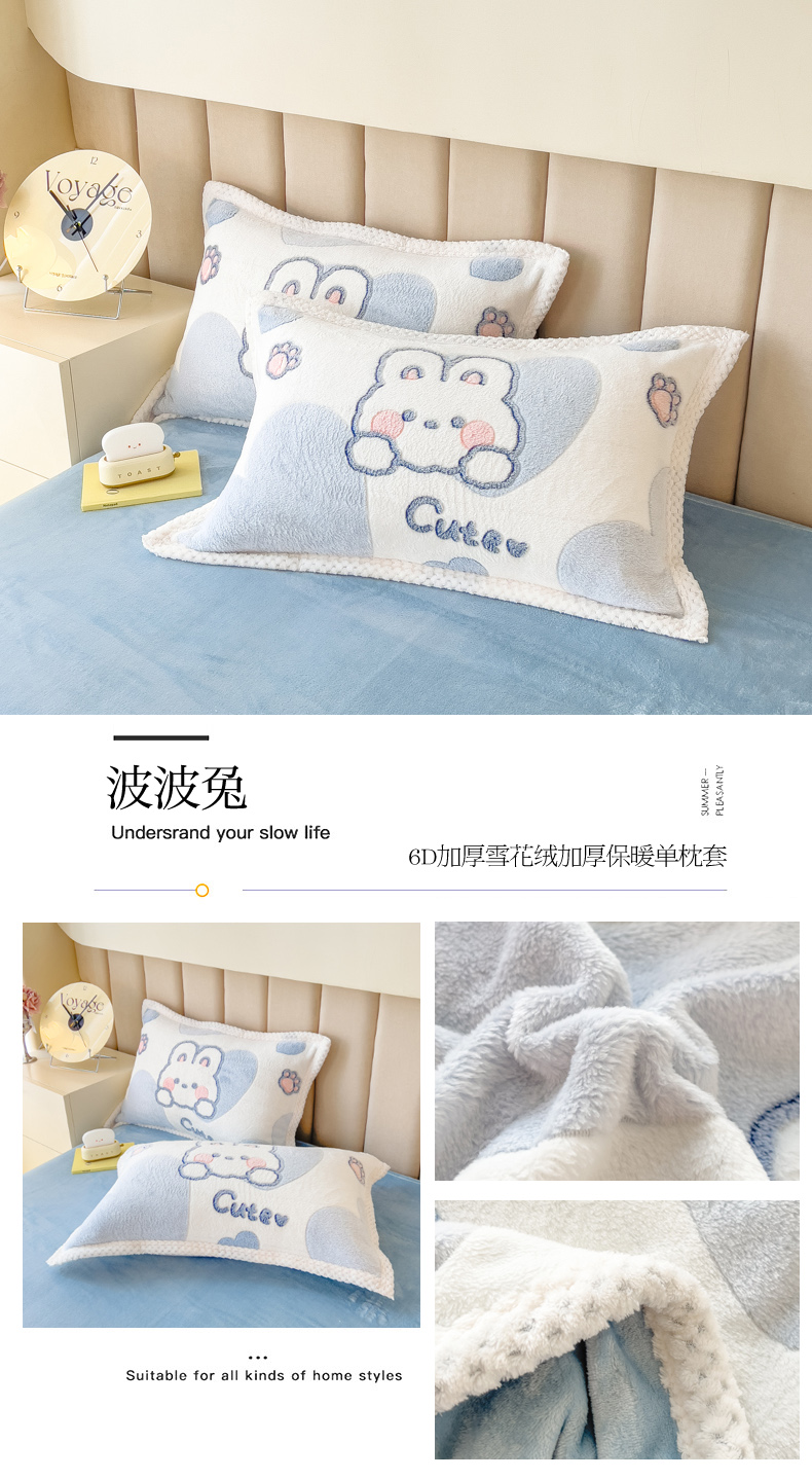 商品名称:2023新款立体6D雪花绒加厚保暖系列单枕套 48x74cm一对 波波兔