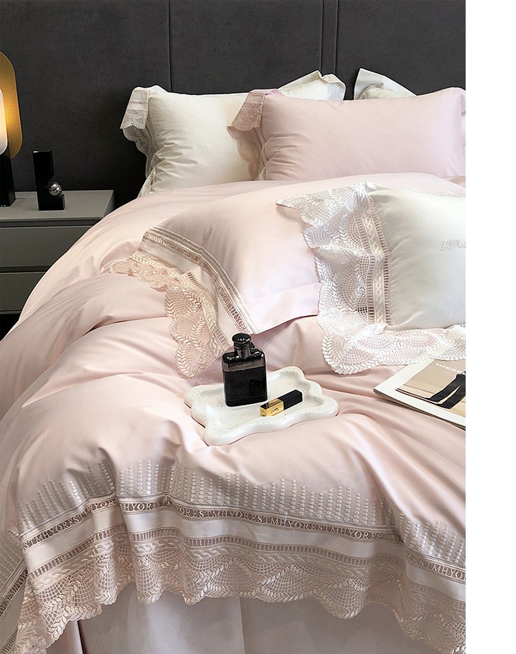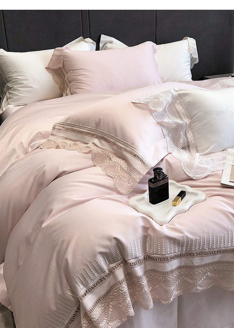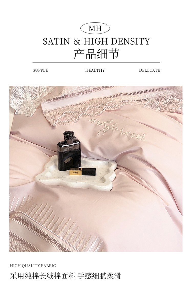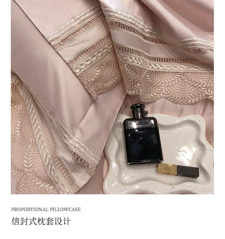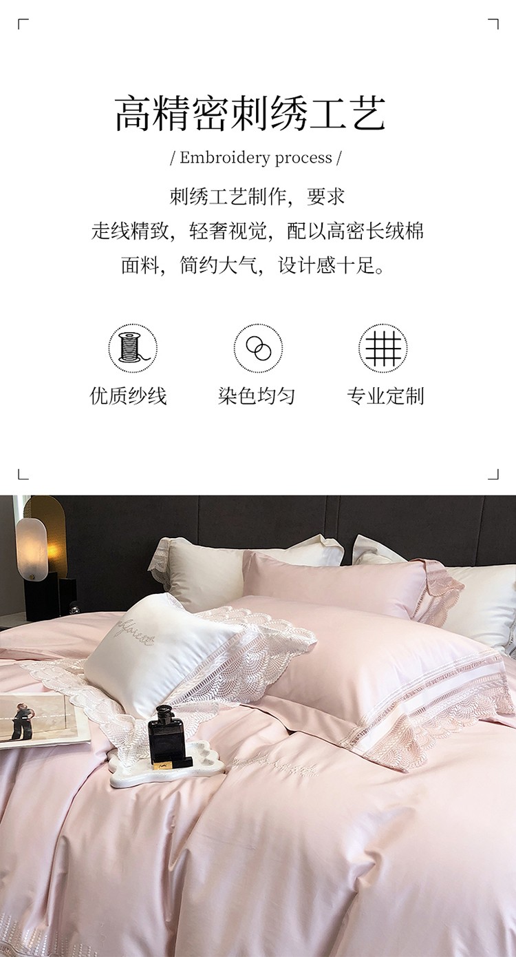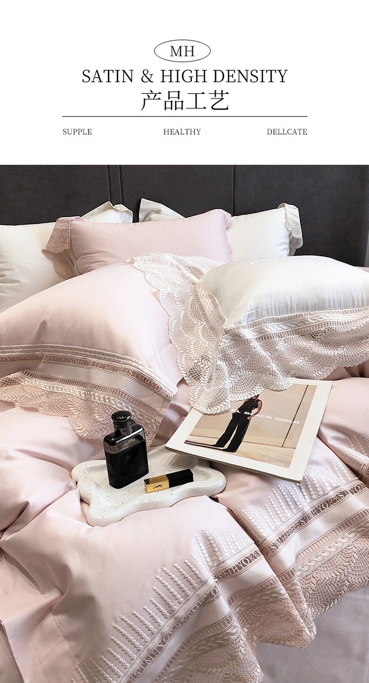 (总)黑白森林2024款 80X80S高支天丝棉四件套镂空蕾丝花边天丝全棉,尚美-晨夕粉,尚美-古象白,尚美-青砂绿,尚美-银雪灰