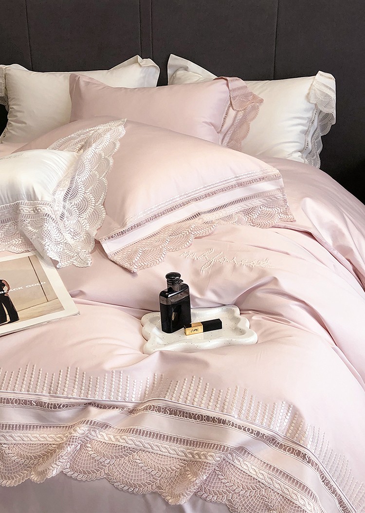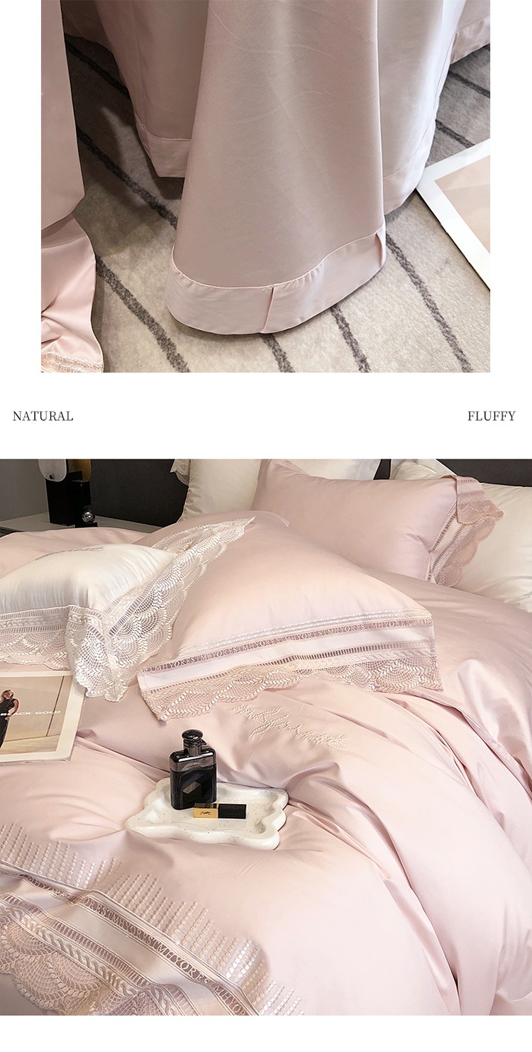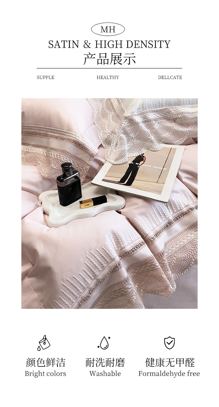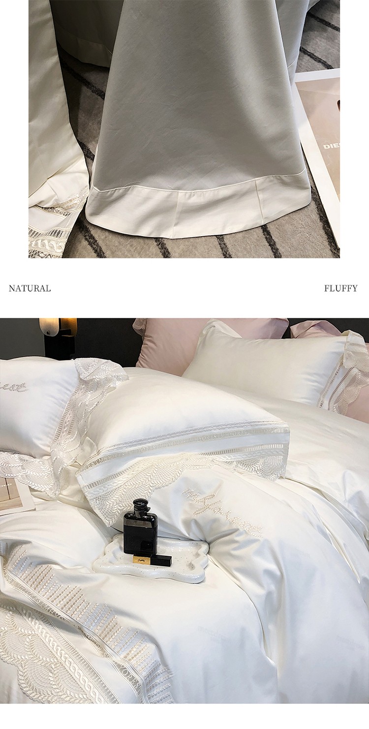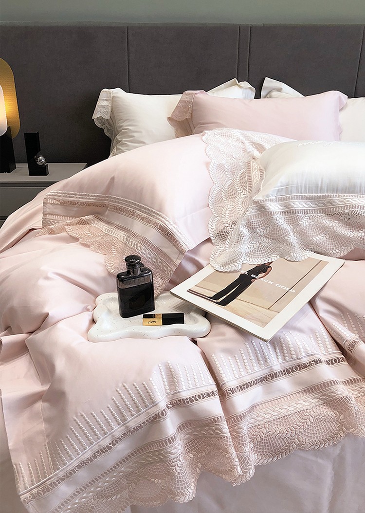 (总)黑白森林2024款 80X80S高支天丝棉四件套镂空蕾丝花边天丝全棉,尚美-晨夕粉,尚美-古象白,尚美-青砂绿,尚美-银雪灰