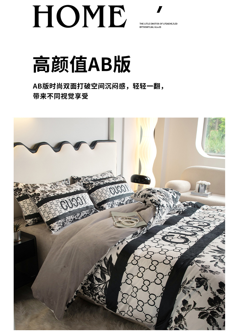 (总)摩卡(乐趣) 2024新款亲肤全棉网红轻奢四件套,H马,大H,粉红兔,黑白迪,黑白V,黑双C,咖古,咖色熊,蓝咖熊,毛绒熊,趴趴熊,七彩迪,小楂花,萌兔