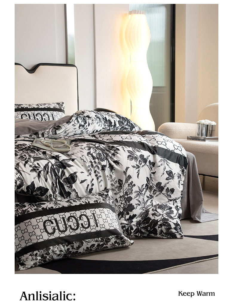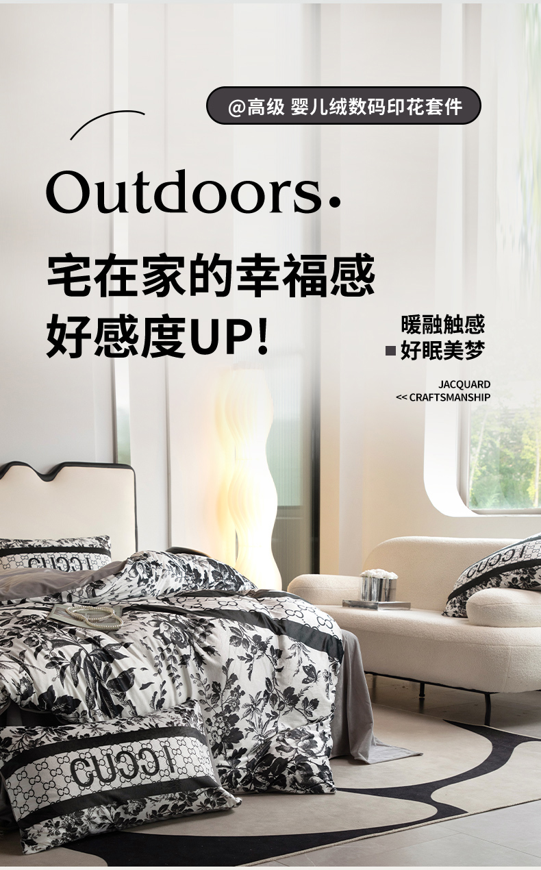 商品名称:摩卡 2024新款秋冬新品网红款婴儿绒毛四件套 绮丽复古