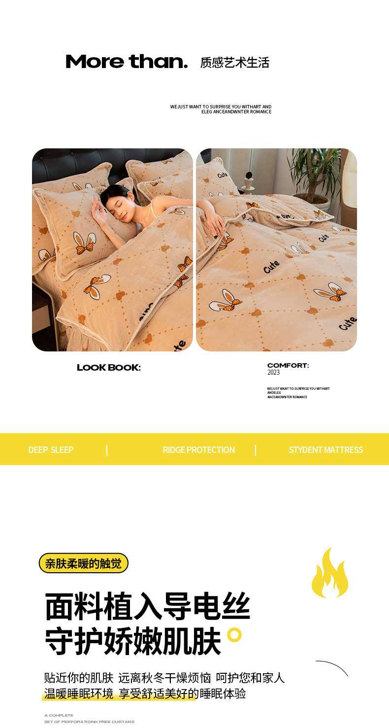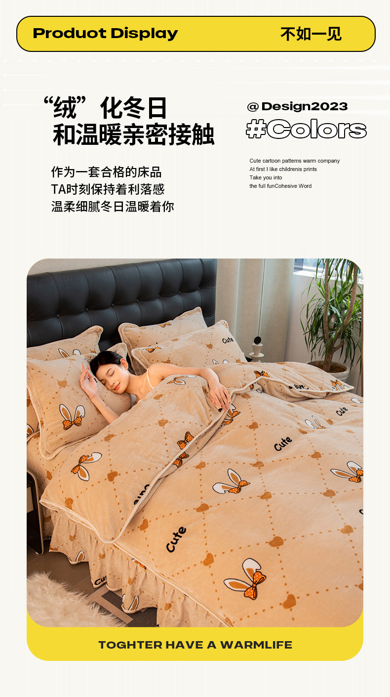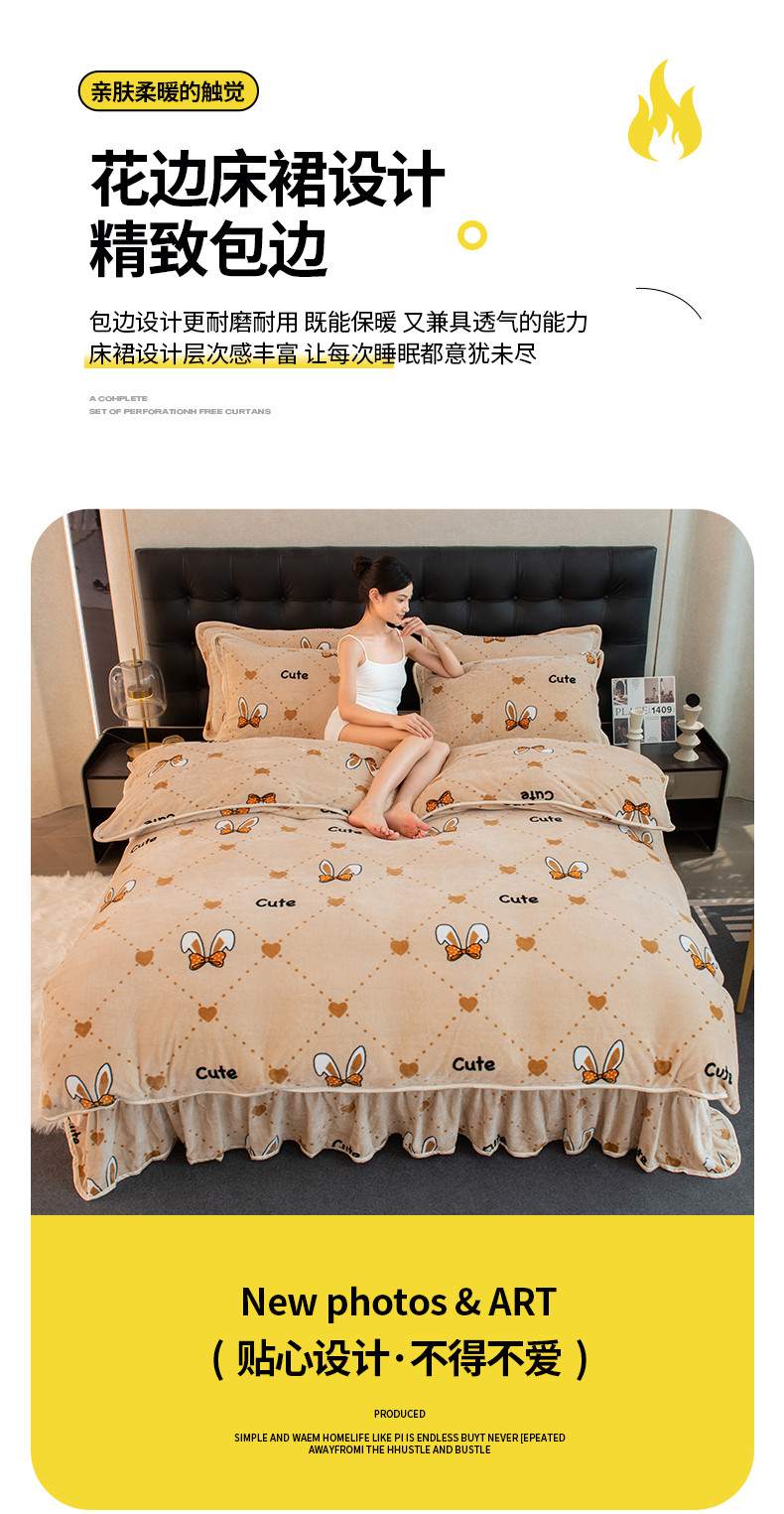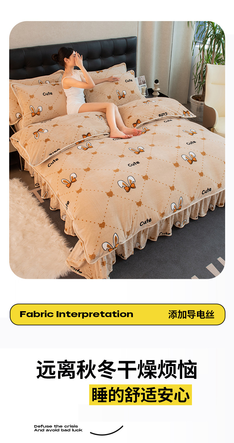 商品名称:2024印花8.5斤牛奶绒金貂水晶法莱珊瑚绒四件套床裙款 可爱兔兔