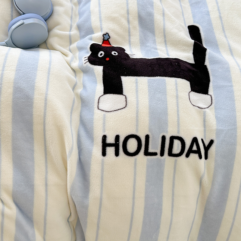 商品名称:昔可家纺 2023新款大版数码印花保暖牛奶绒四件套 绿苹果小黑猫